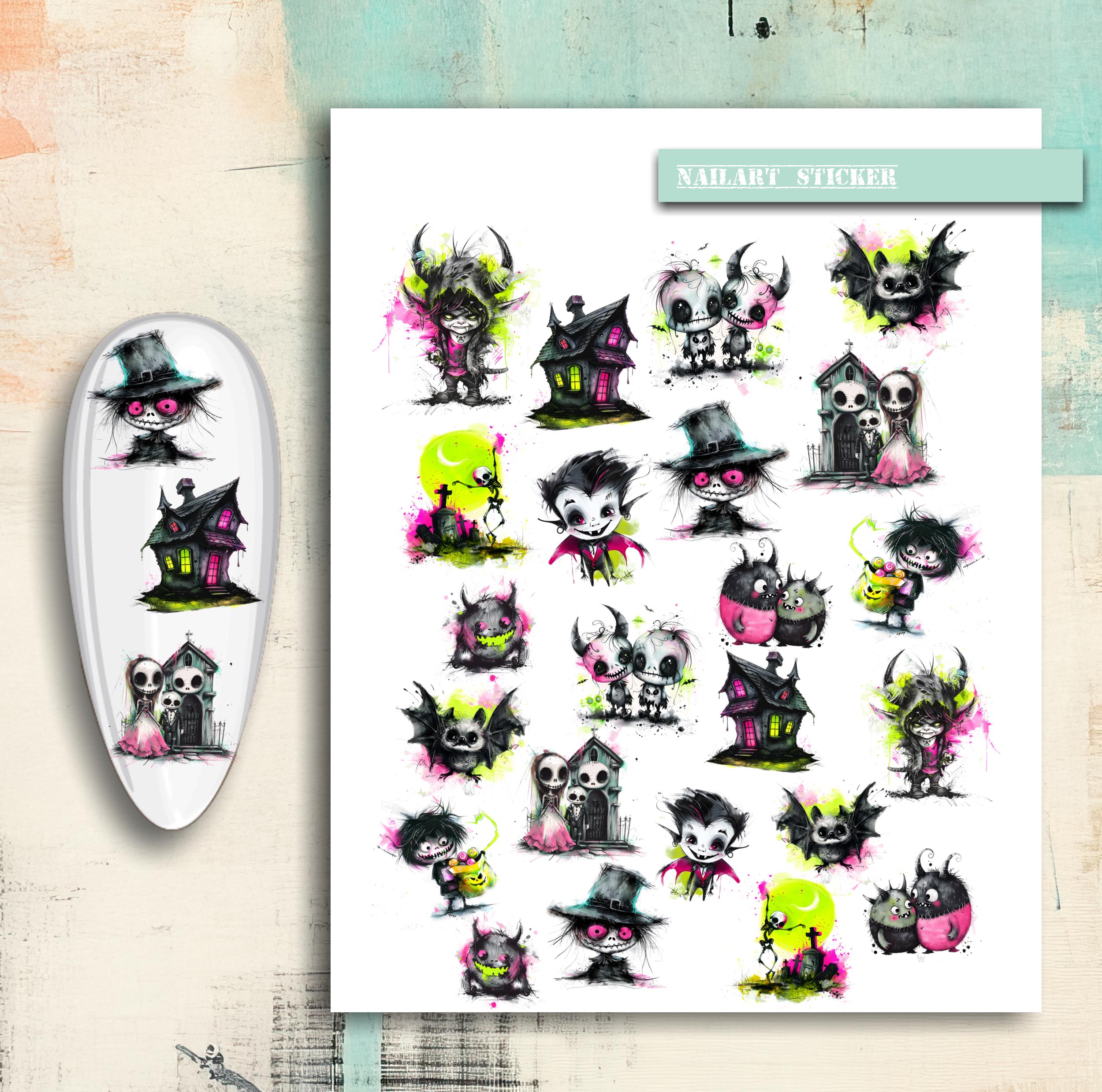 Nail Stickers / Halloween / Neon Halloween / Water Nail Decals / Spooky / Nail Art