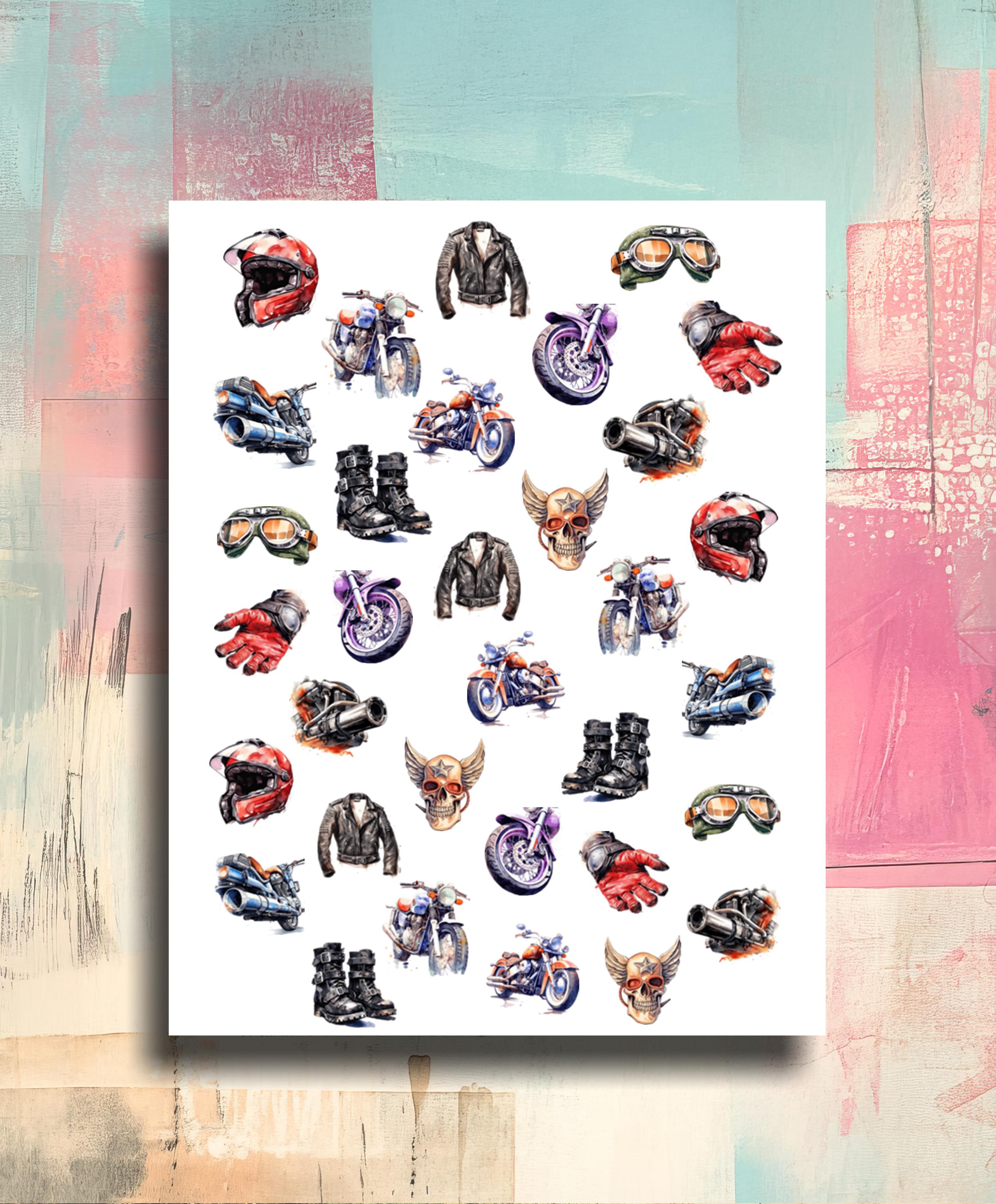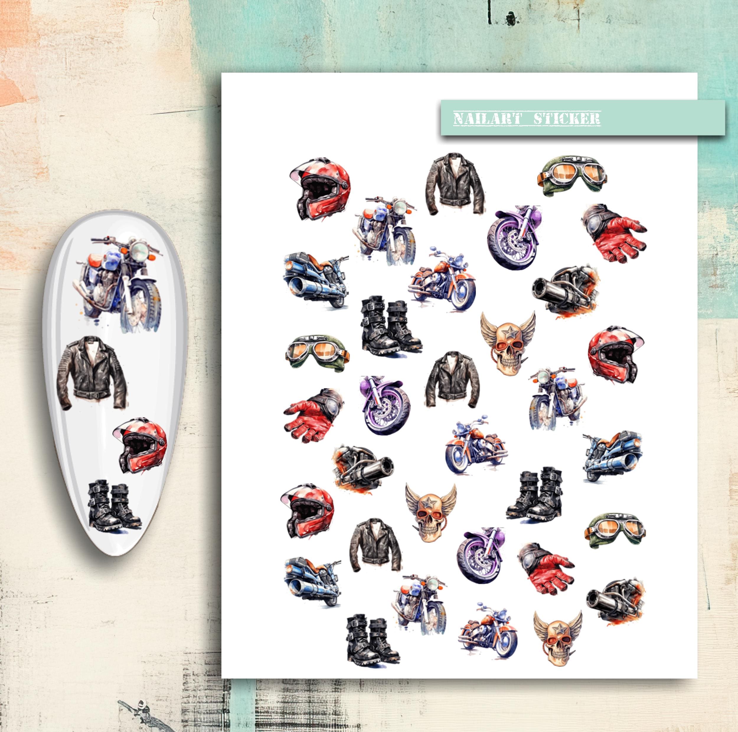 Nail Stickers / Motorcycle / Motorcycle Helmet, Motorcycle Boots, Biker Boots / Nail Art