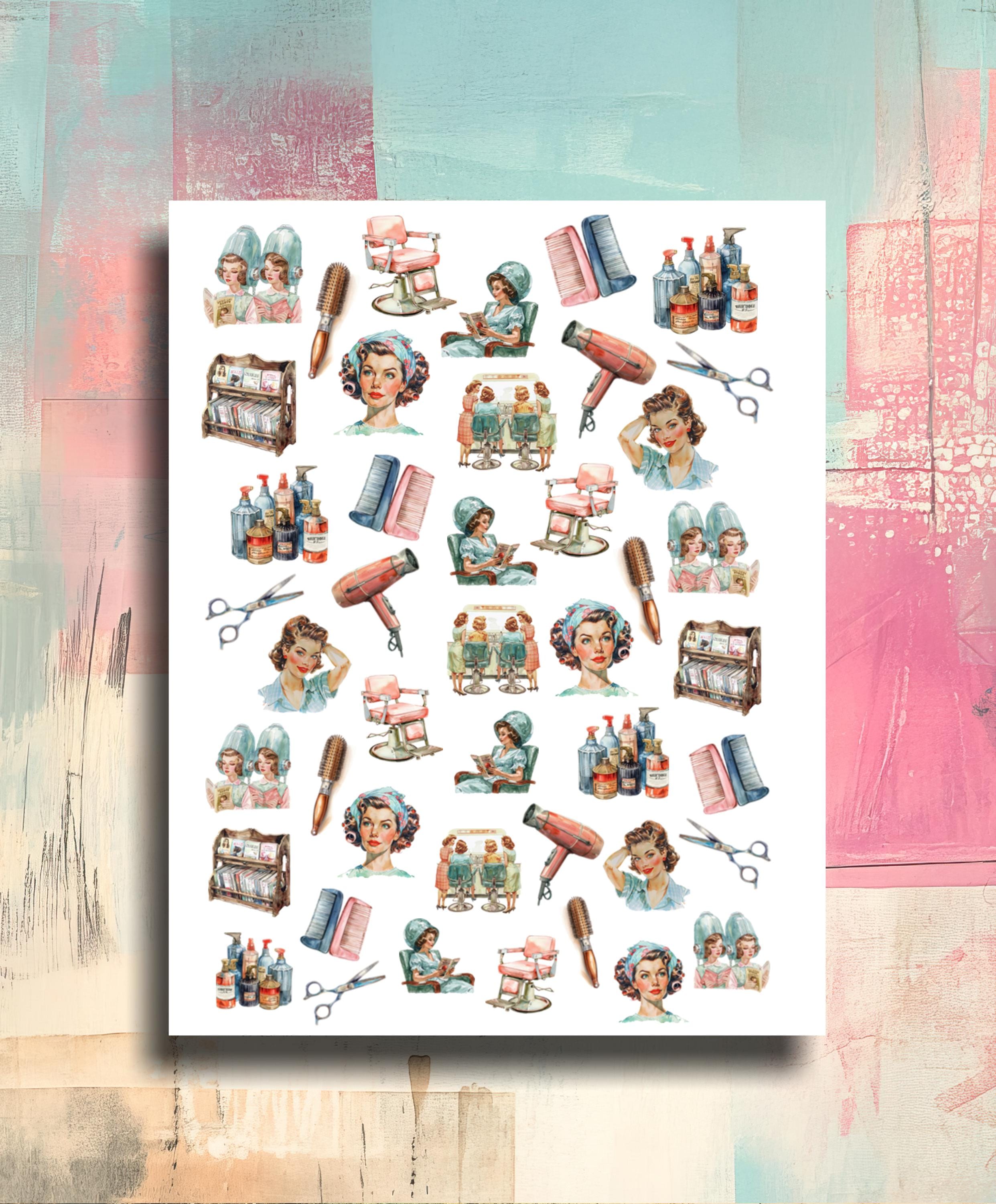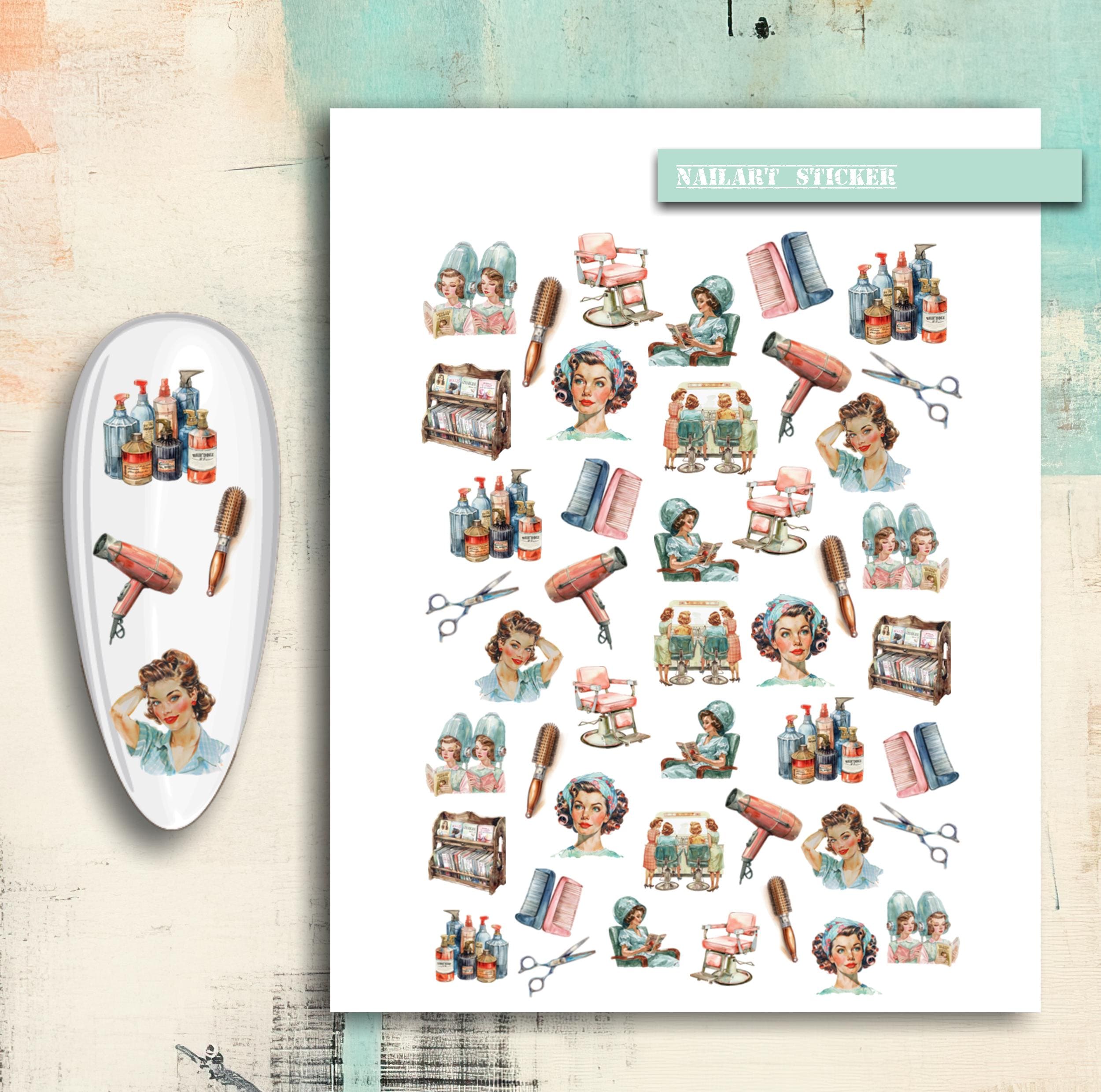 Nail Stickers / Hairdresser Supplies / Retro Hair Dryer, Round Brush, Scissors / Nail Art