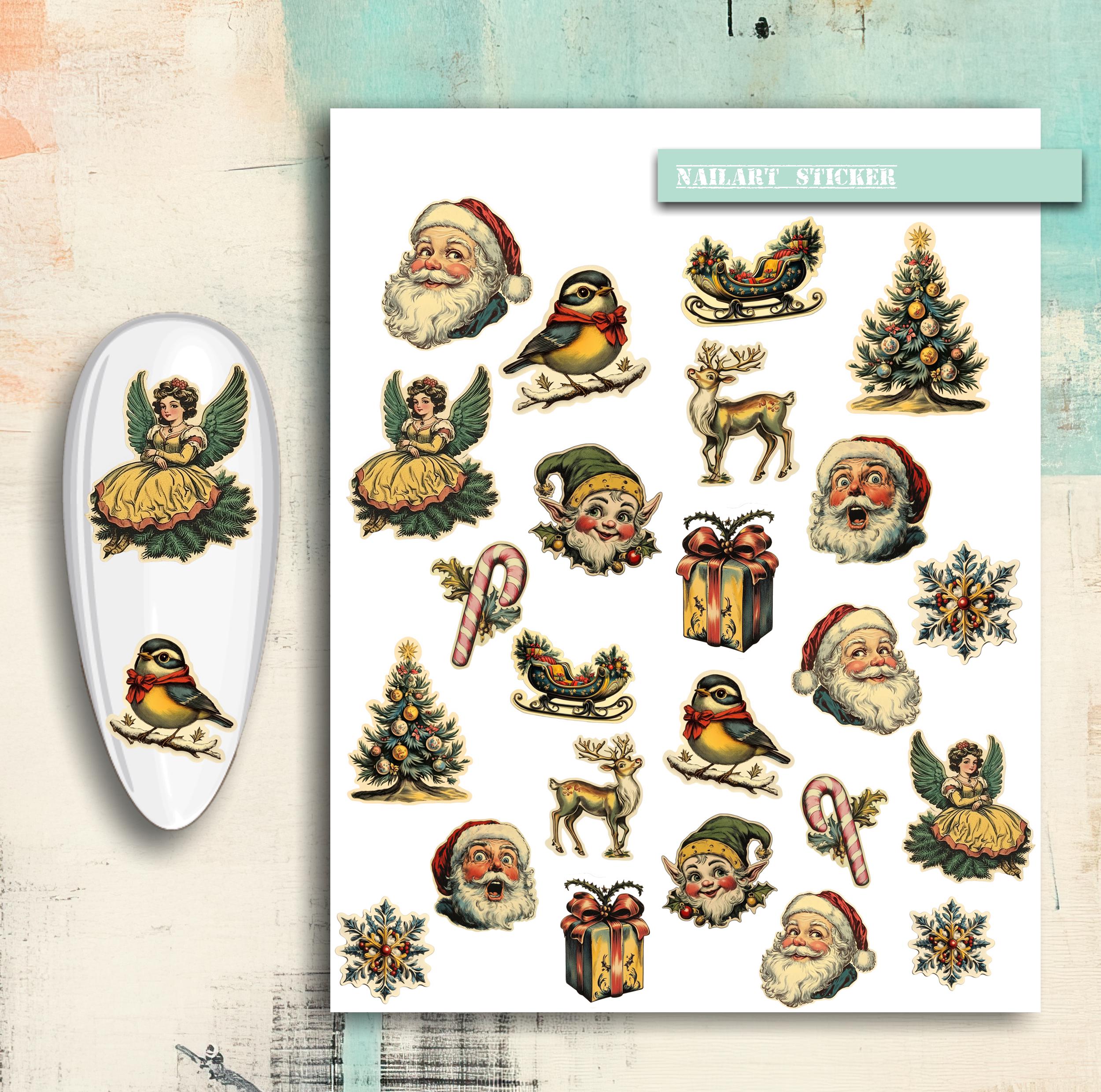 Nail art stickers Christmas, antique Christmas, snowflake, angel, Christmas tree, poinsettia, winter, nail stickers, nail tattoo