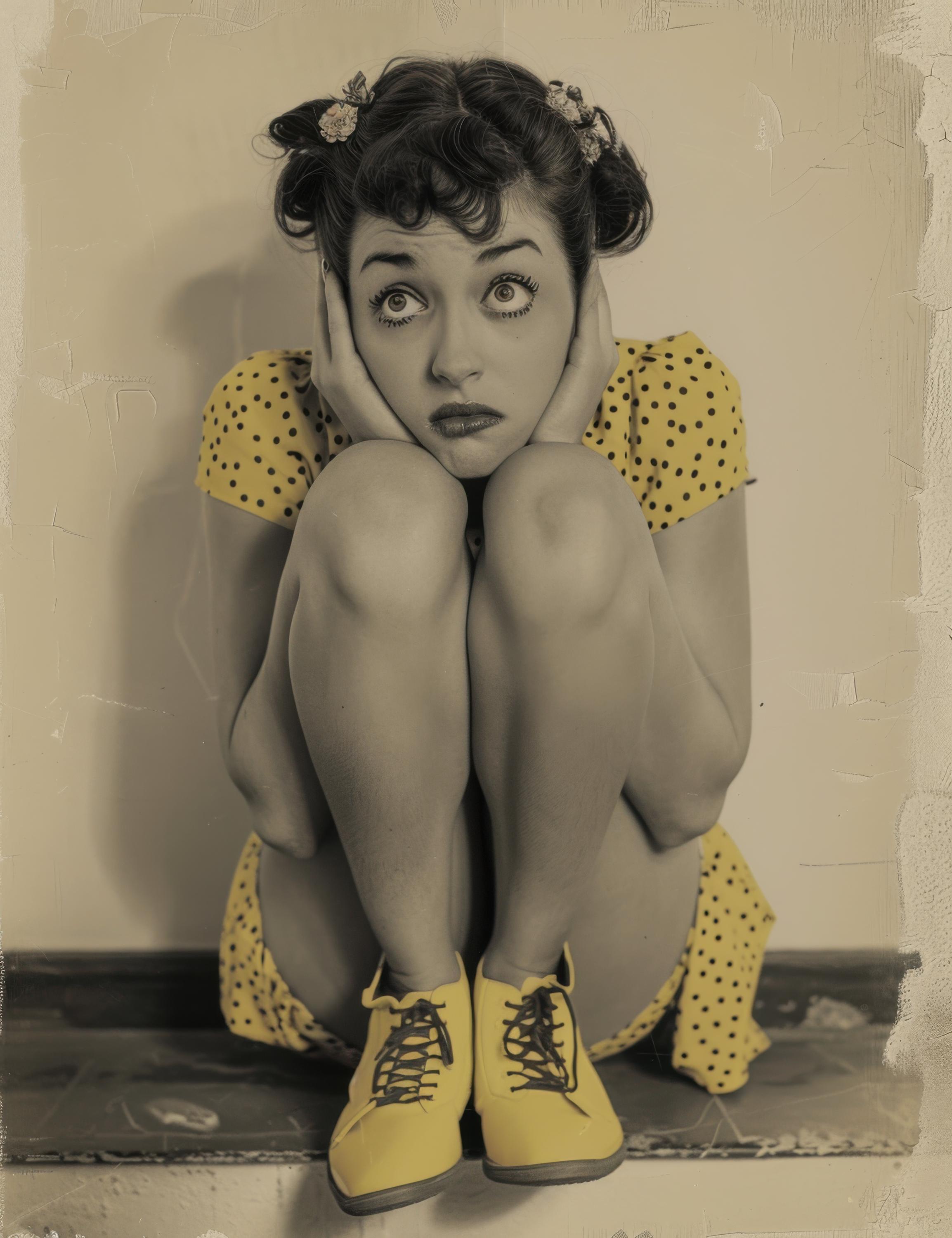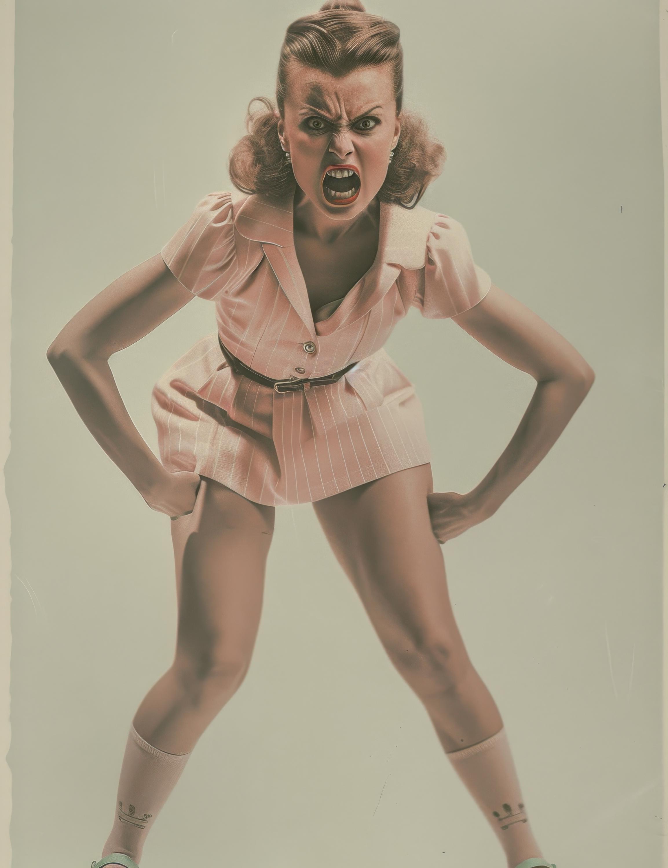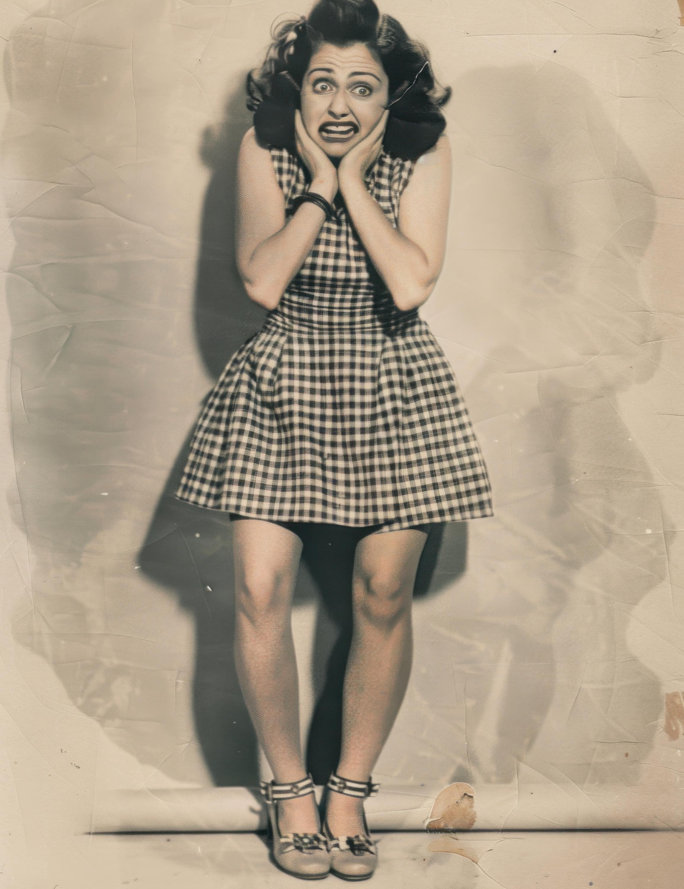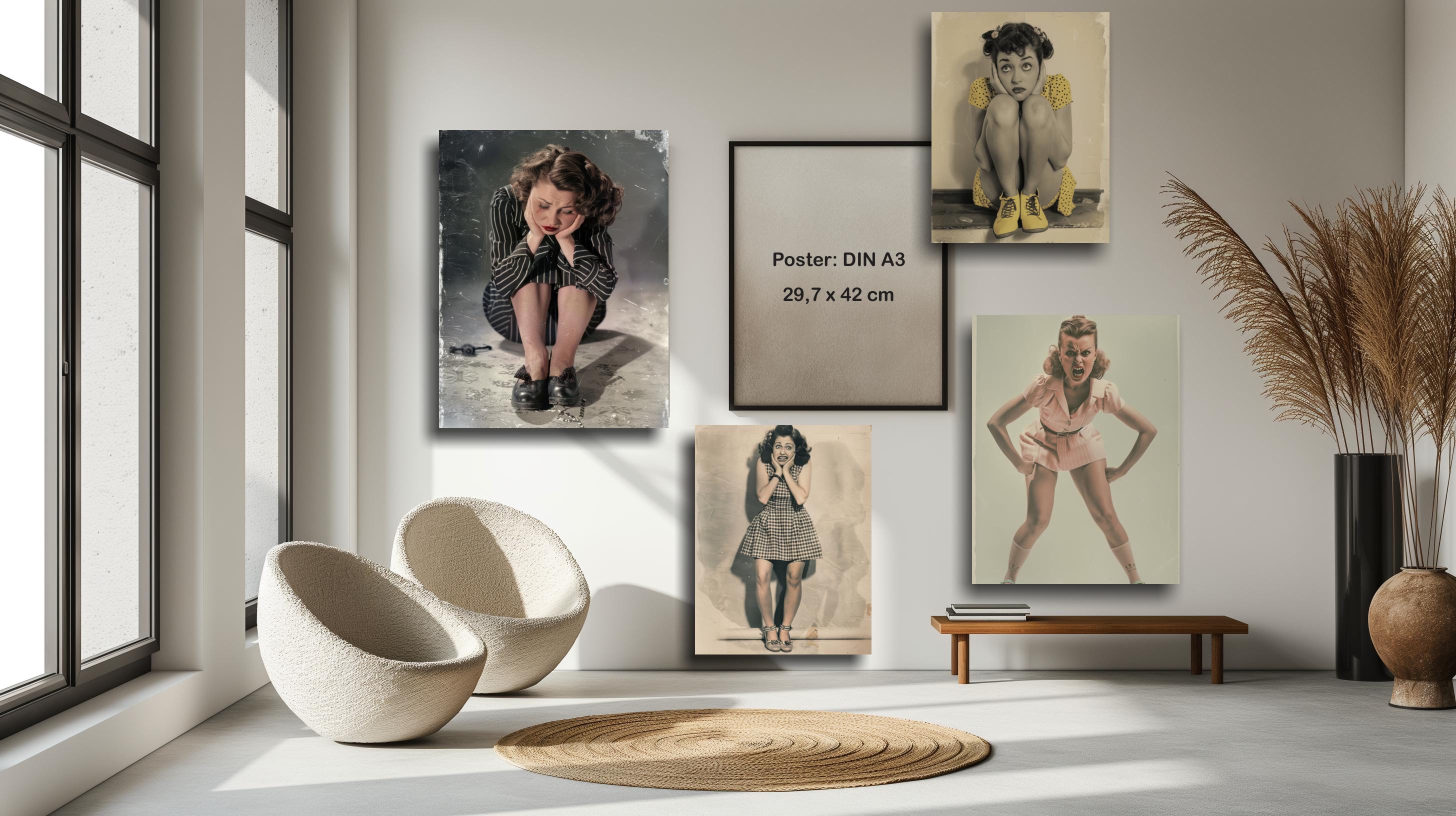Posters - Funny Vintage Female Portraits, Female Expressions, Expressive Women, Vintage Girls on Canvas
