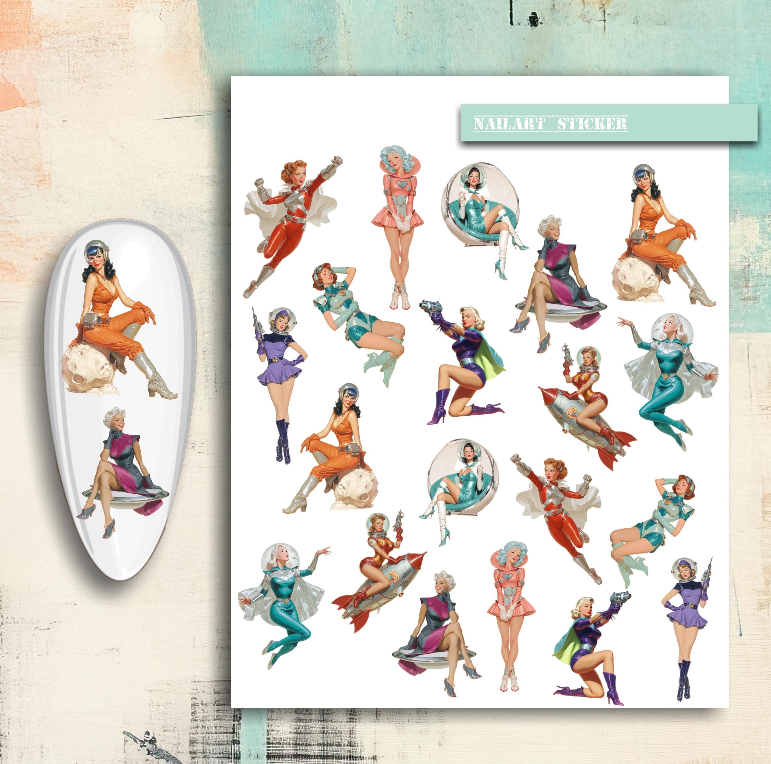 Nail Stickers / Retro Space Girl / Water Nail Decals / Nail Art / 1950s Atomic Pin-Up