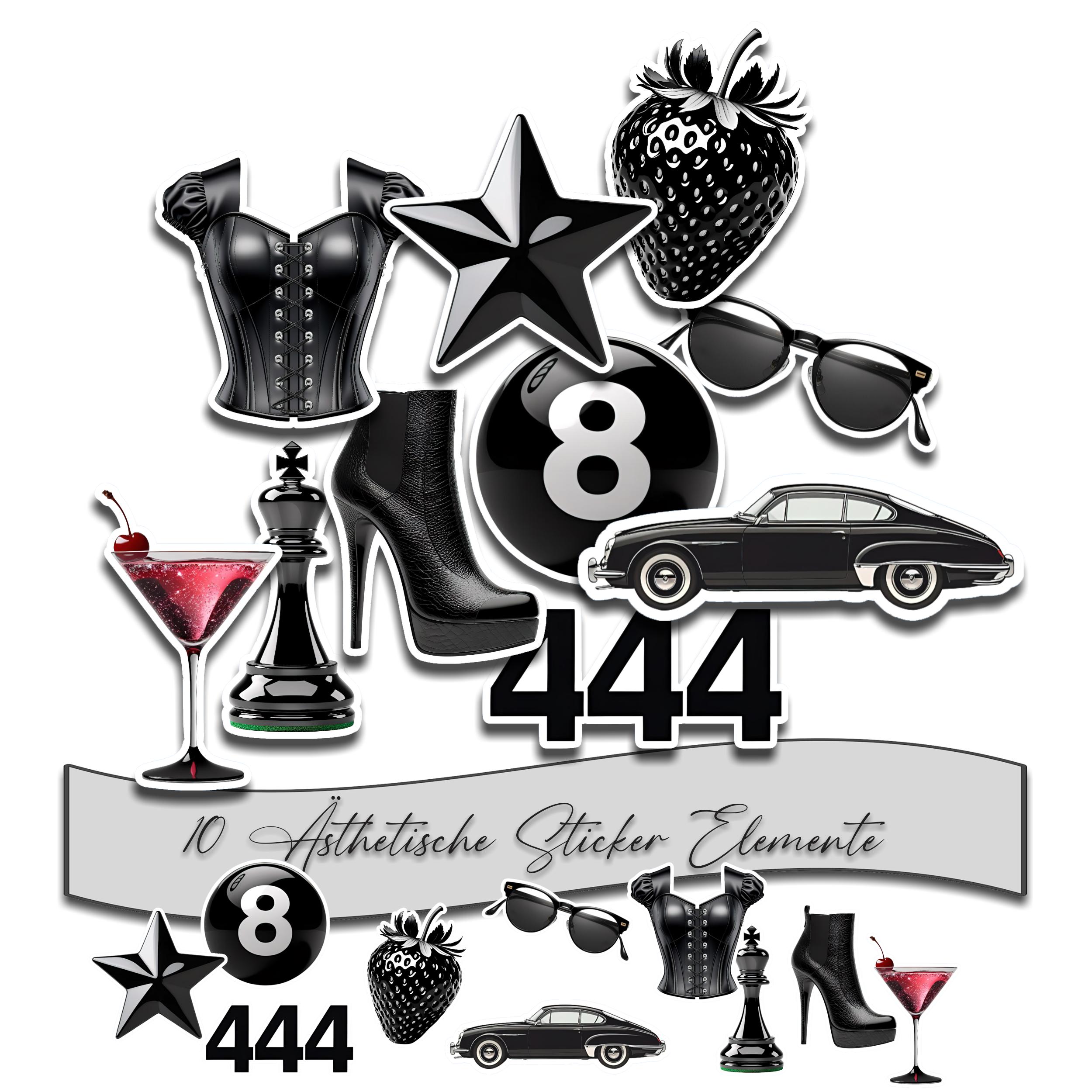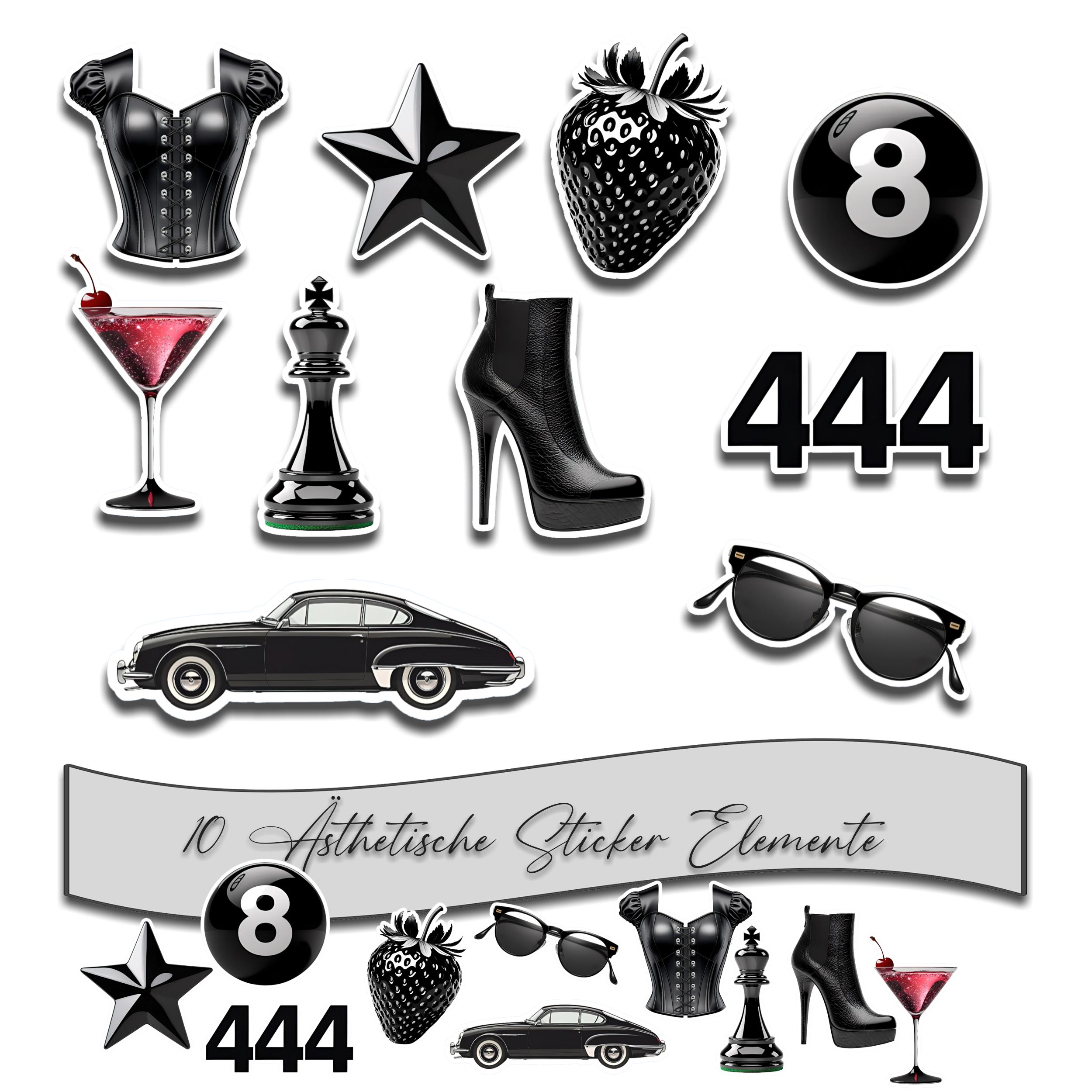 ( Star, Bustier, Strawberry, Billiard Ball, Ankle Boot, Cocktail, Chess Piece, Car, Sunglasses, Angel Number, Black )