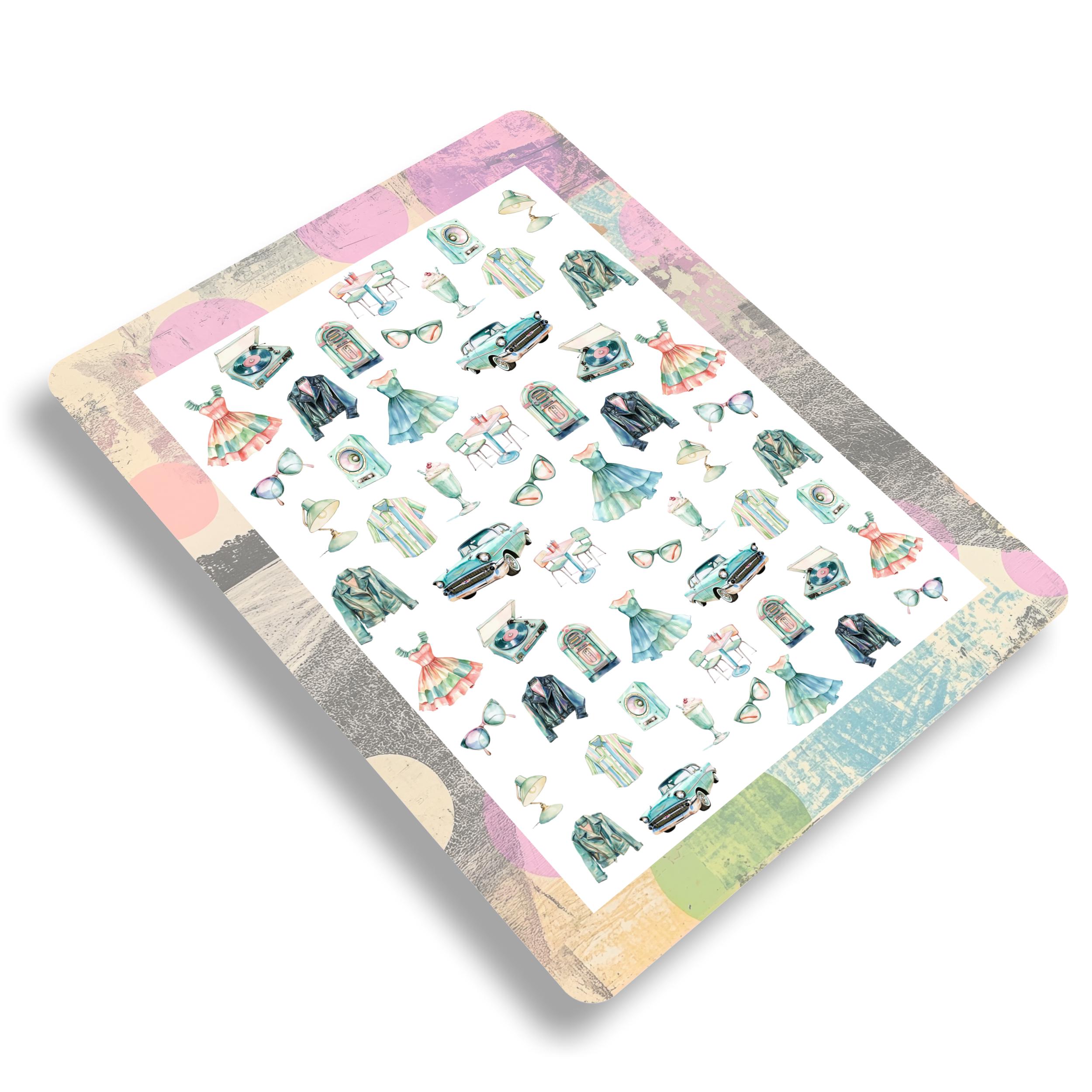 Nail Stickers / 50s Nail Stickers / 50s Retro / Water Nail Decals / Sock Hop Nail Art / Jukebox