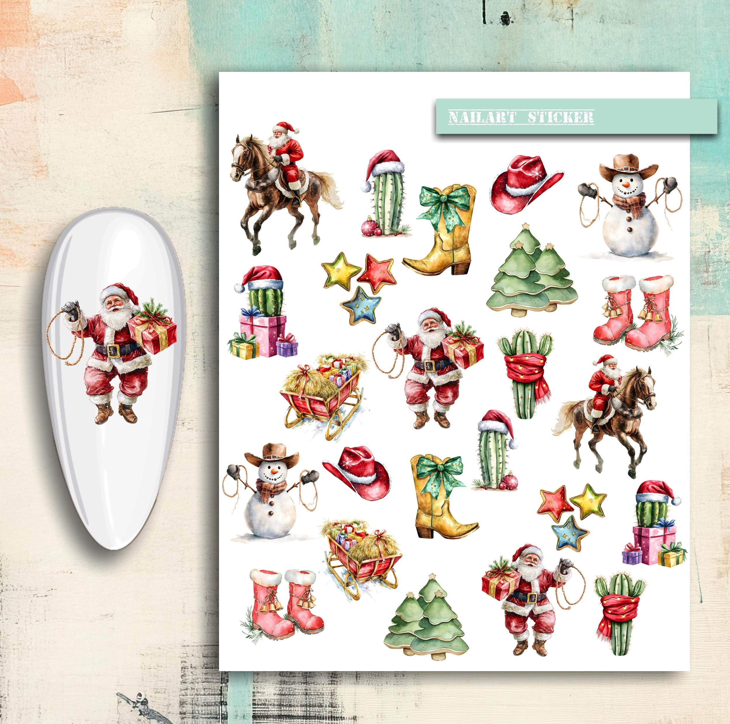 Cowboy Christmas Nail Stickers / Water Nail Decals / Rancher Nail Art / Cowboy Boots, Snowman, Western