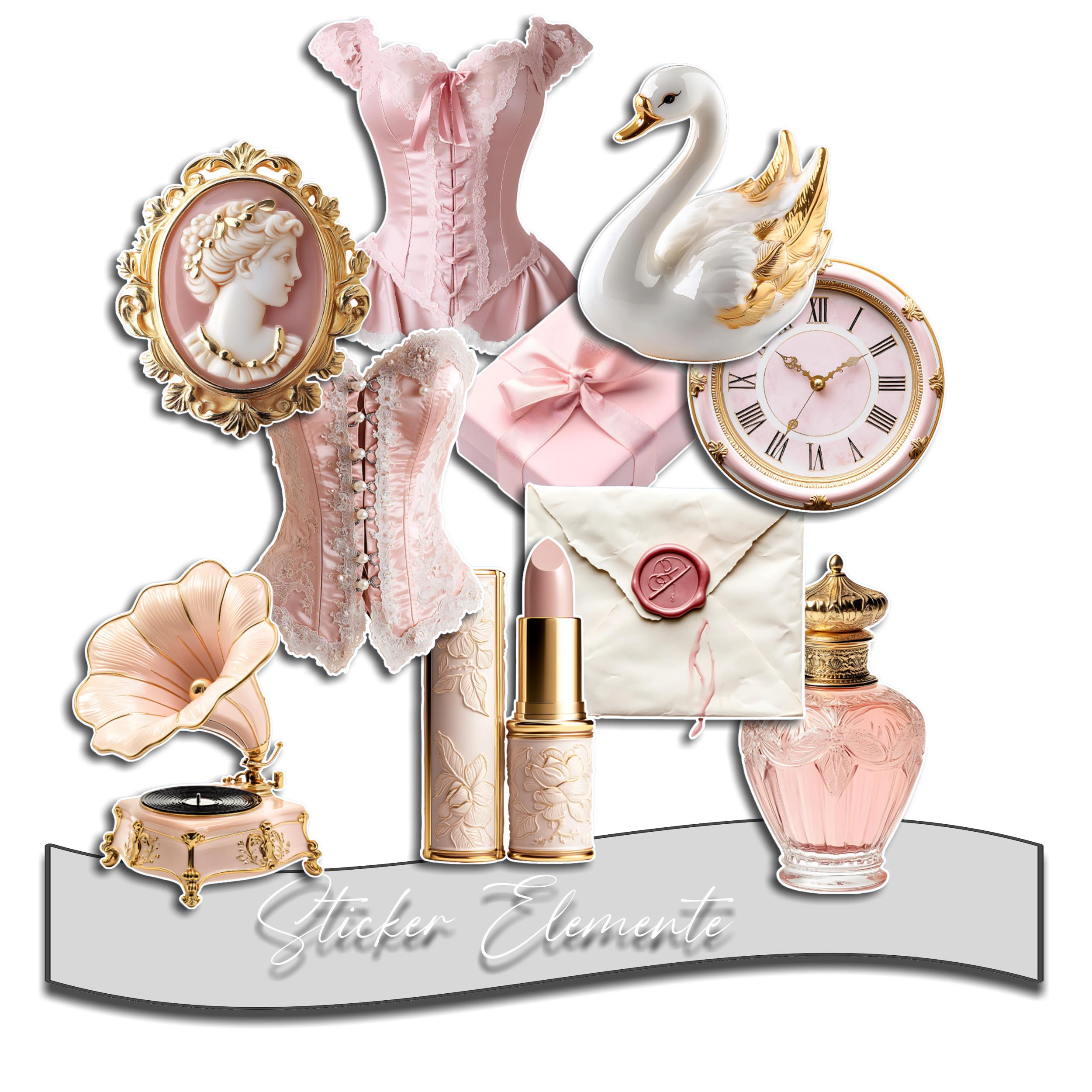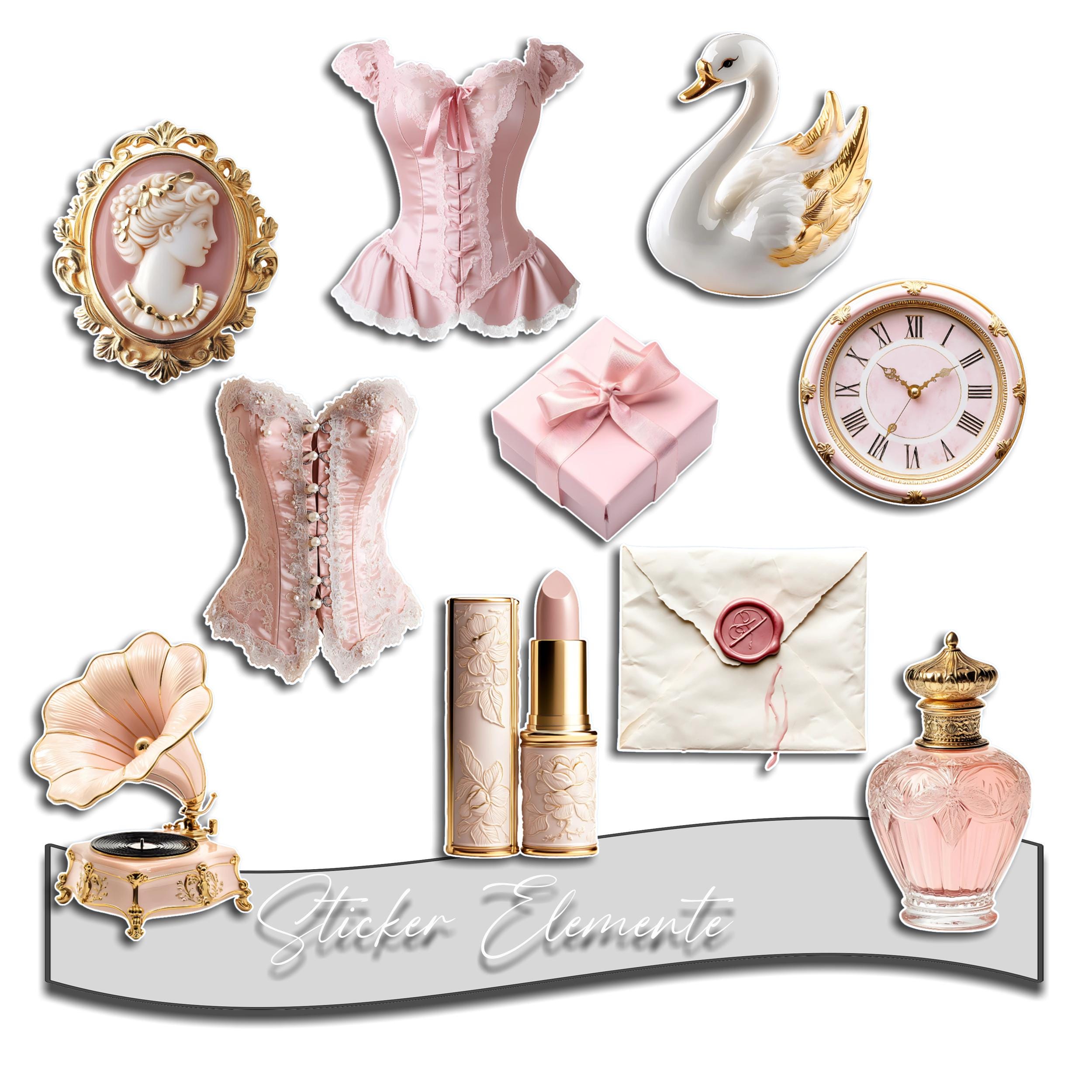 Sticker Set | Decals | Flirty, Girly, Girly Era, Feminine Vintage Stickers, Aesthetic, Pink