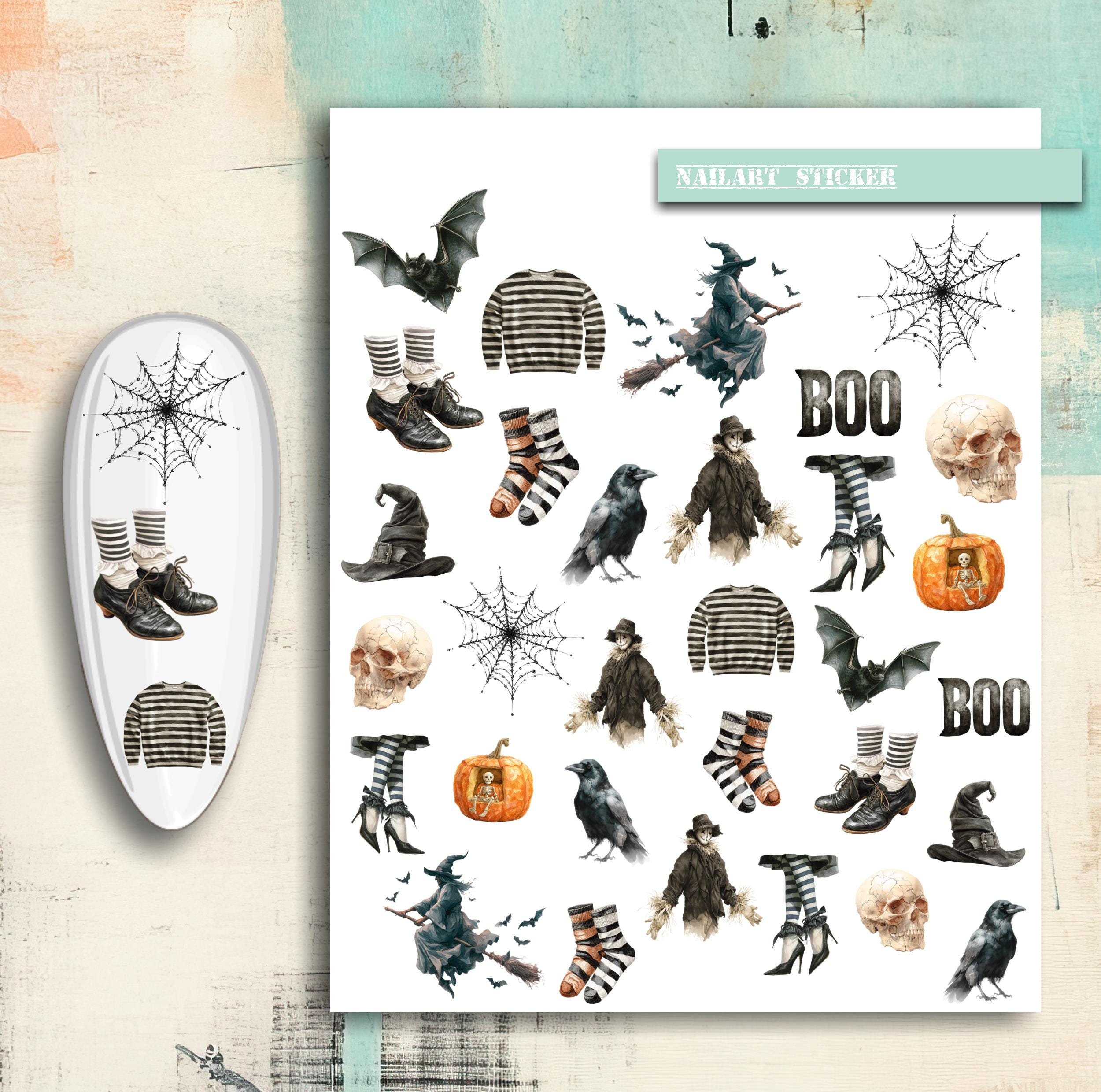 Halloween Gothic Nail Stickers, Water-Based Nail Decals, Black Nail Art