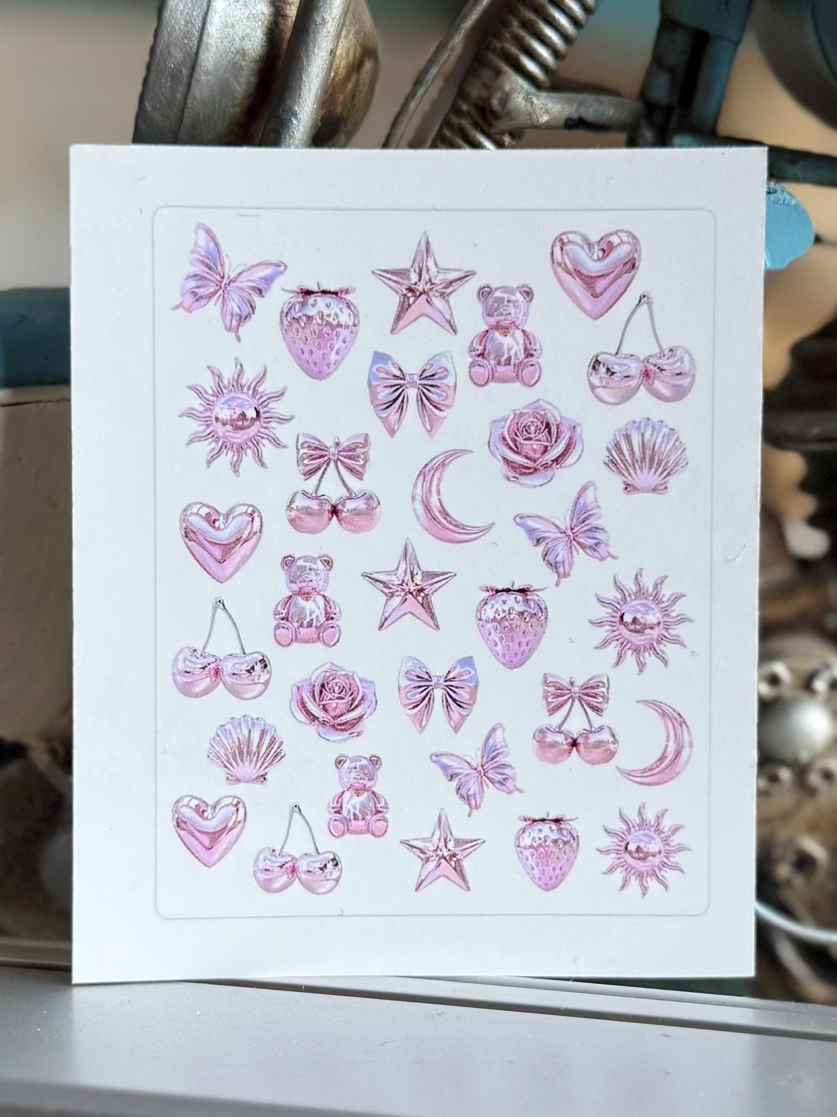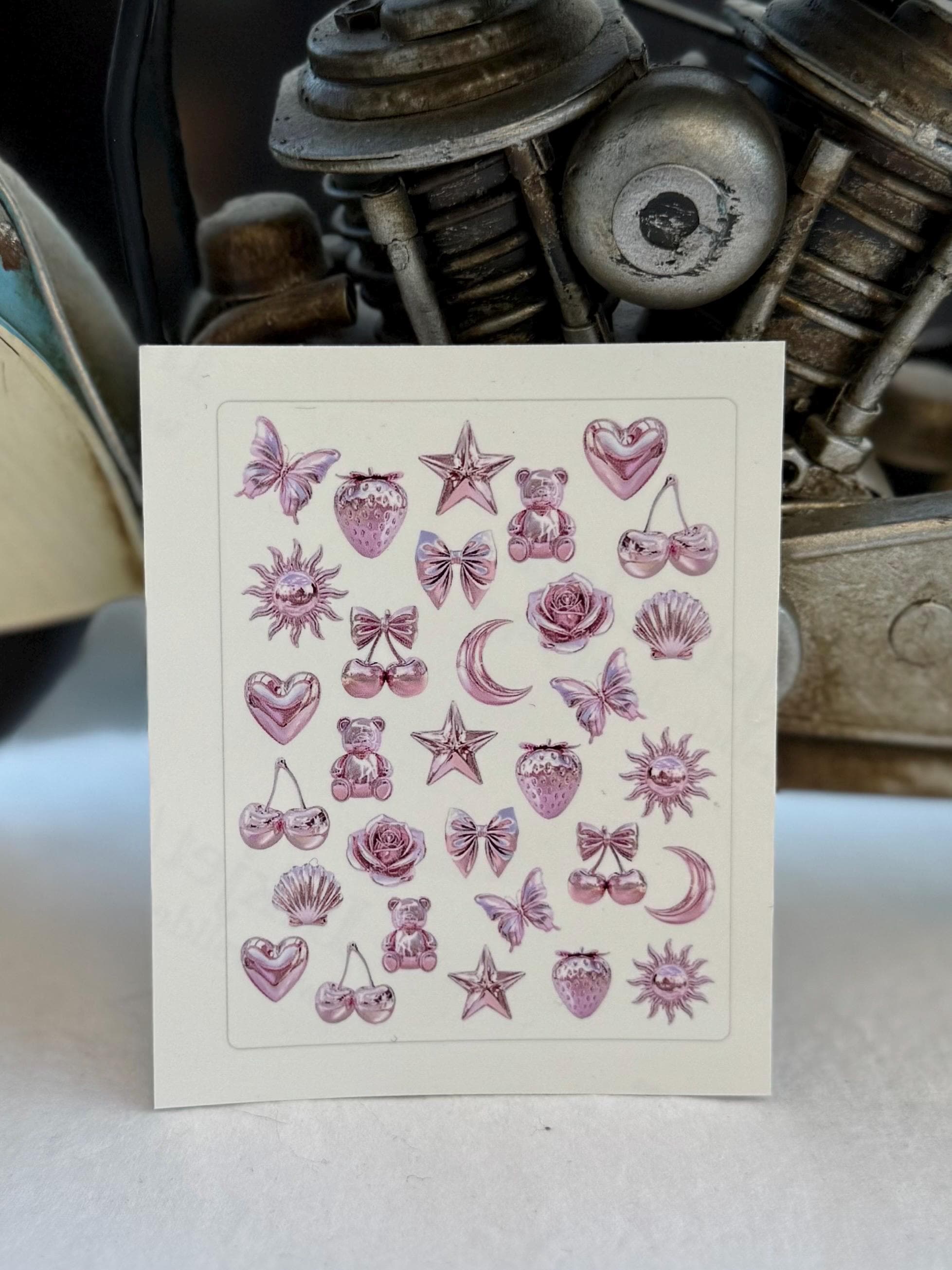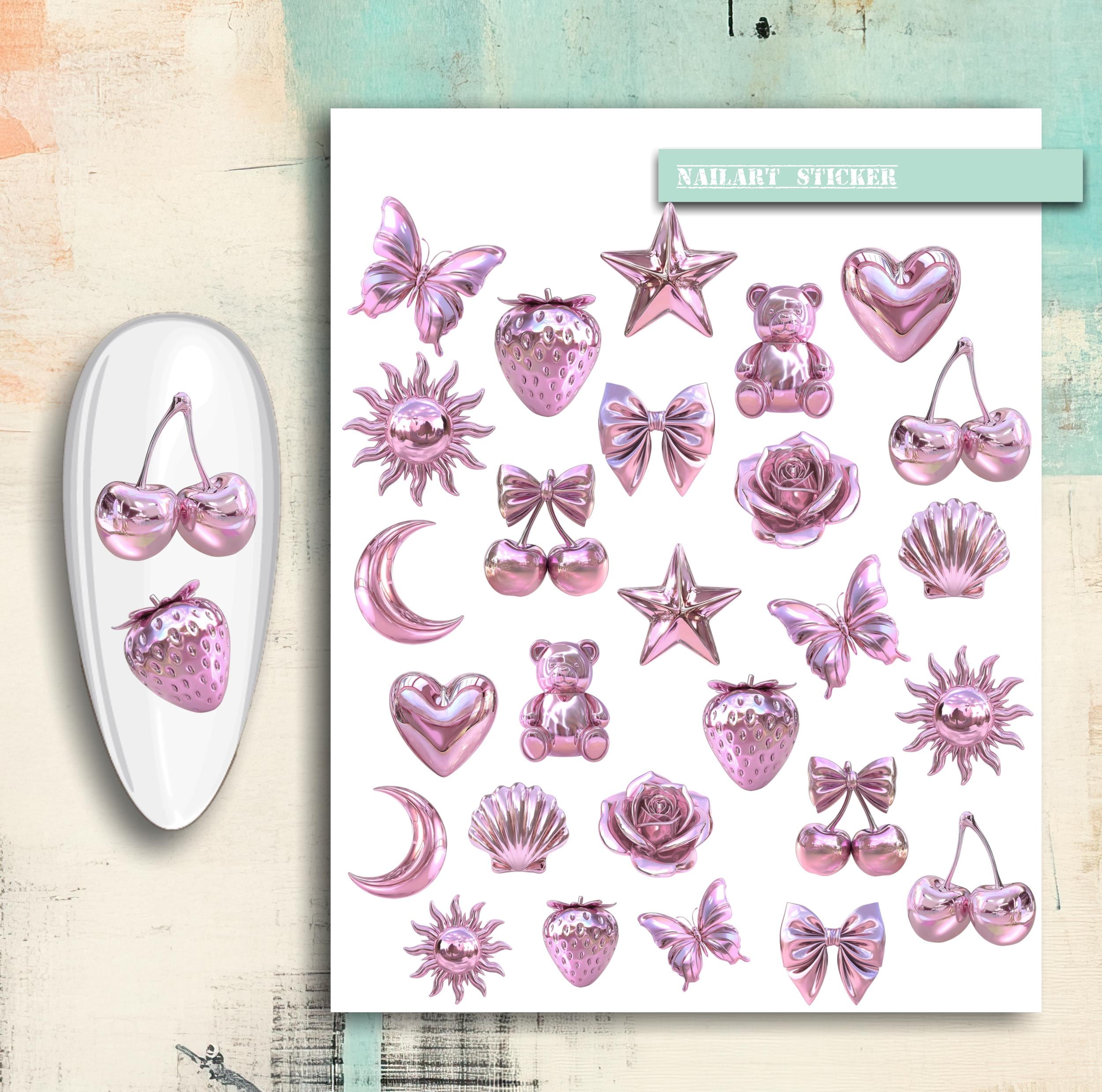 3D Nail Stickers Pink Water Nail Decals Nail Art Chrome, Holographic, Metallic Y2k Girly Stickers