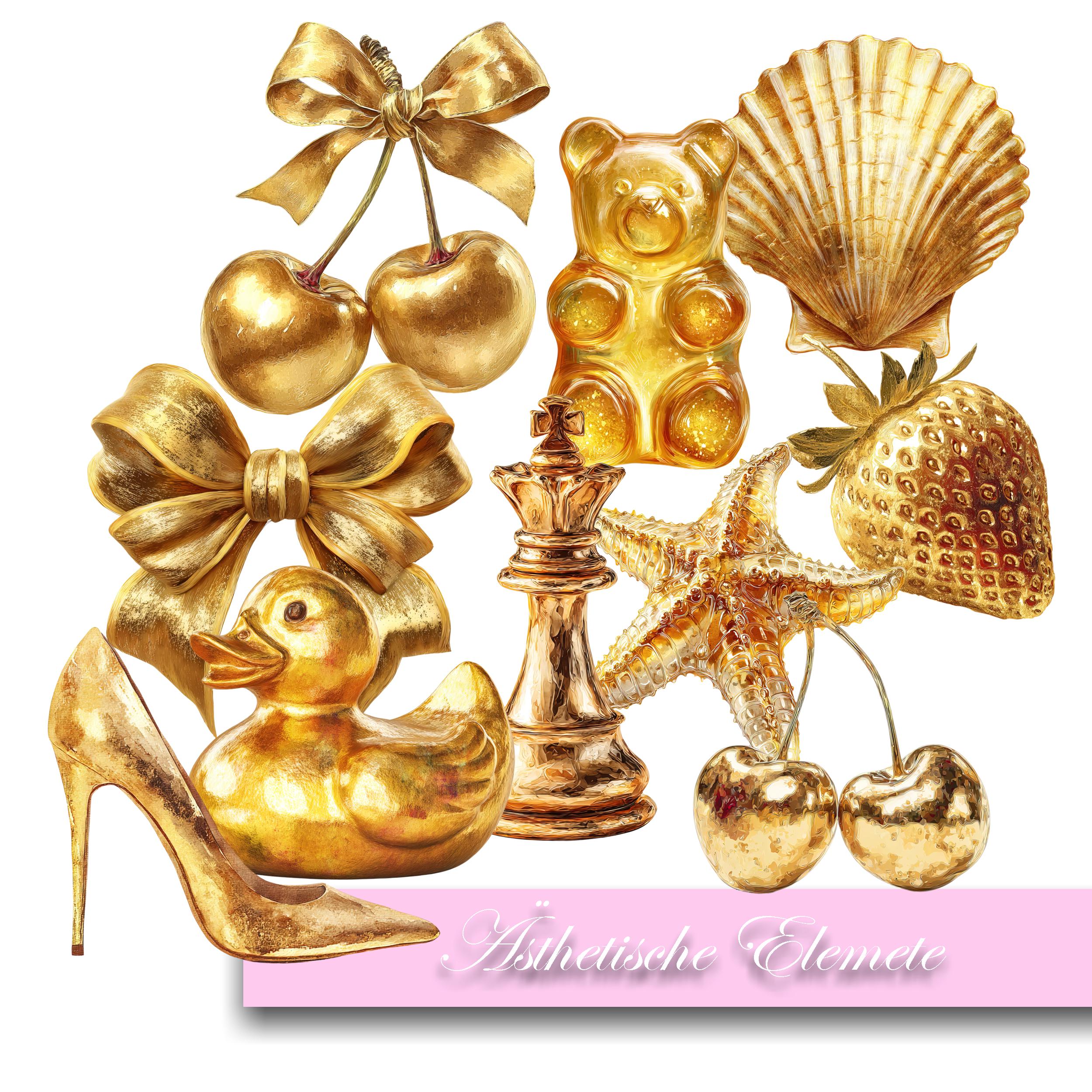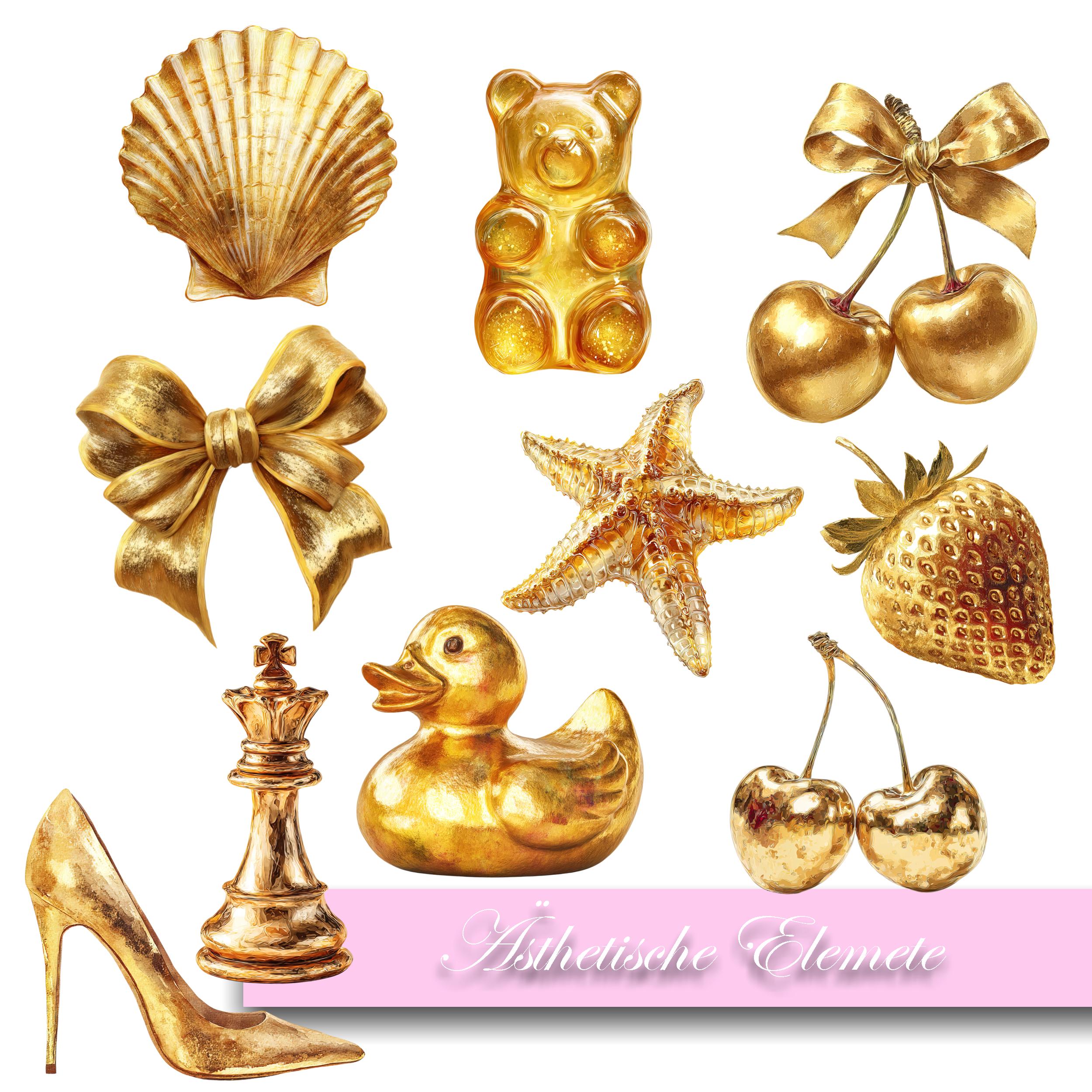 Stickers Gold, Holographic, Metallic Stickers Shell, Bow, Gummy Bear, Starfish, Duck, Cherry, Strawberry