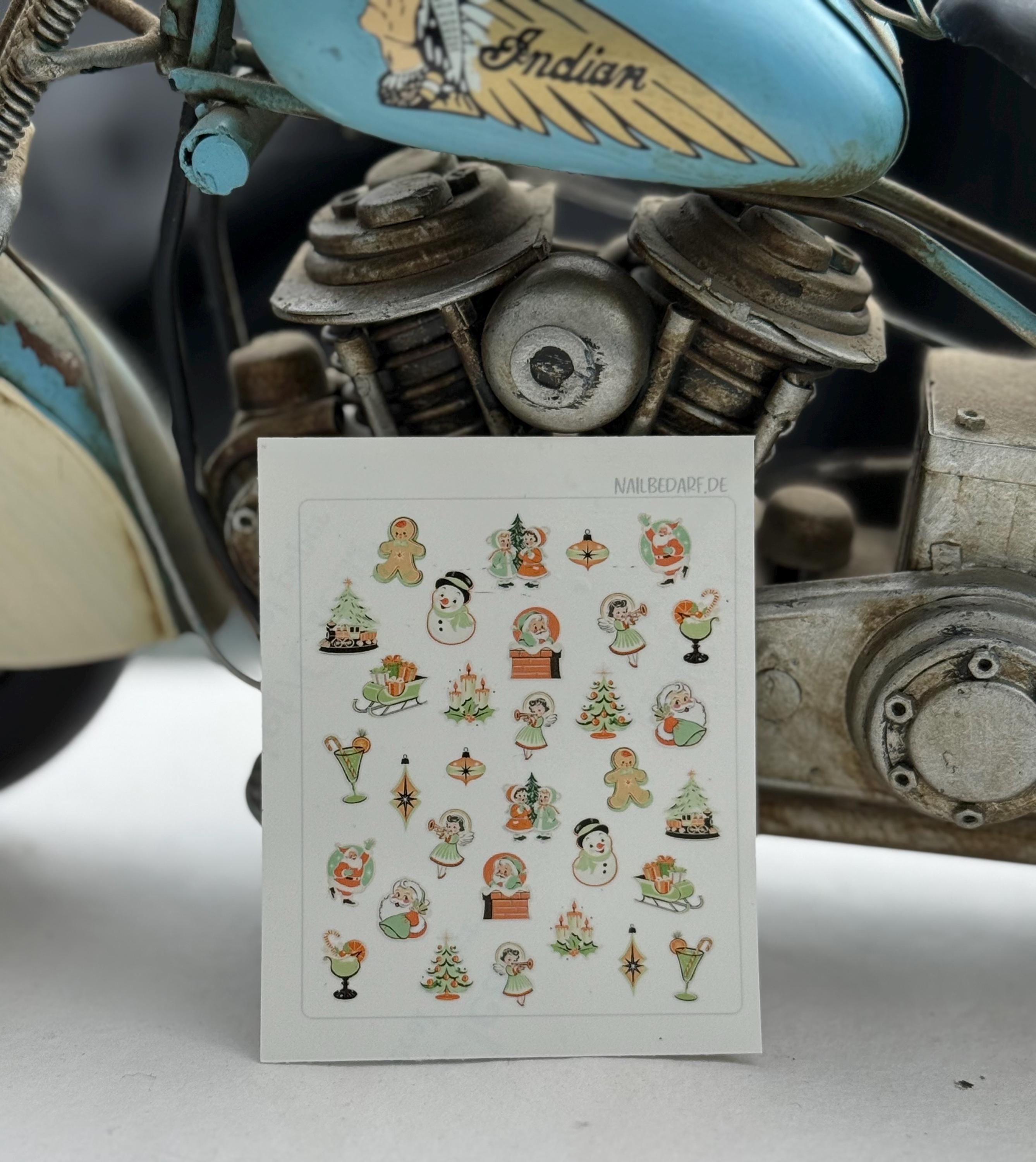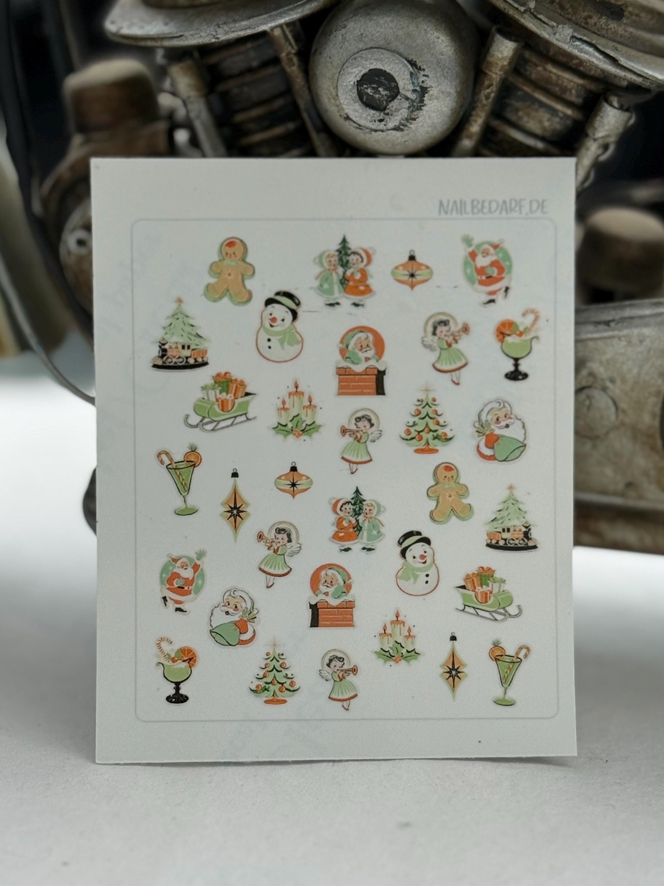 Nail Decals, Vintage Midcentury Modern Christmas, Waterslide Decals, Nail Stickers, Retro Christmas 1950s - 1960s