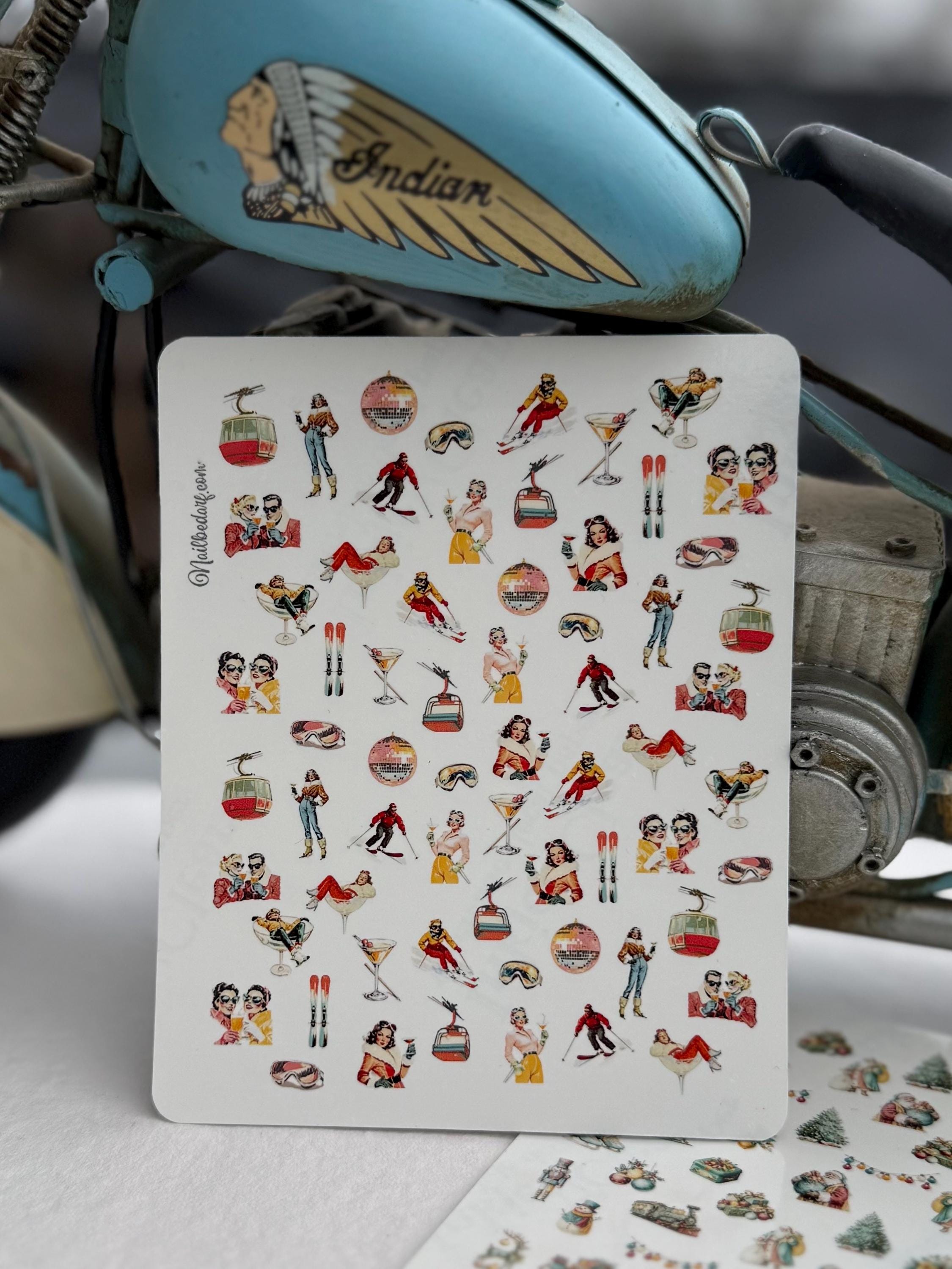 Nail stickers, vintage retro Christmas, waterslide decals, nail stickers, winter holidays, Christmas nails, nail tattoos