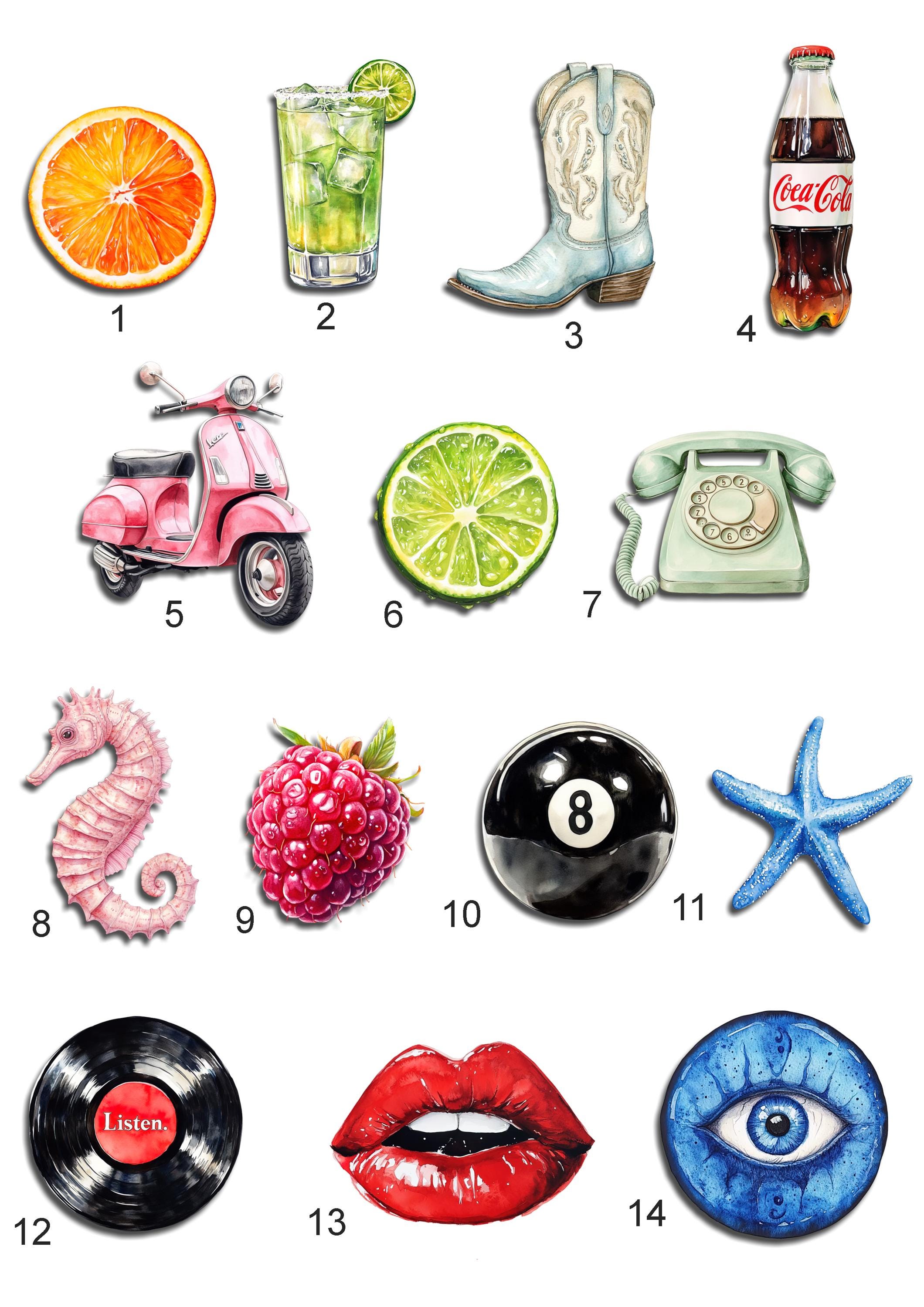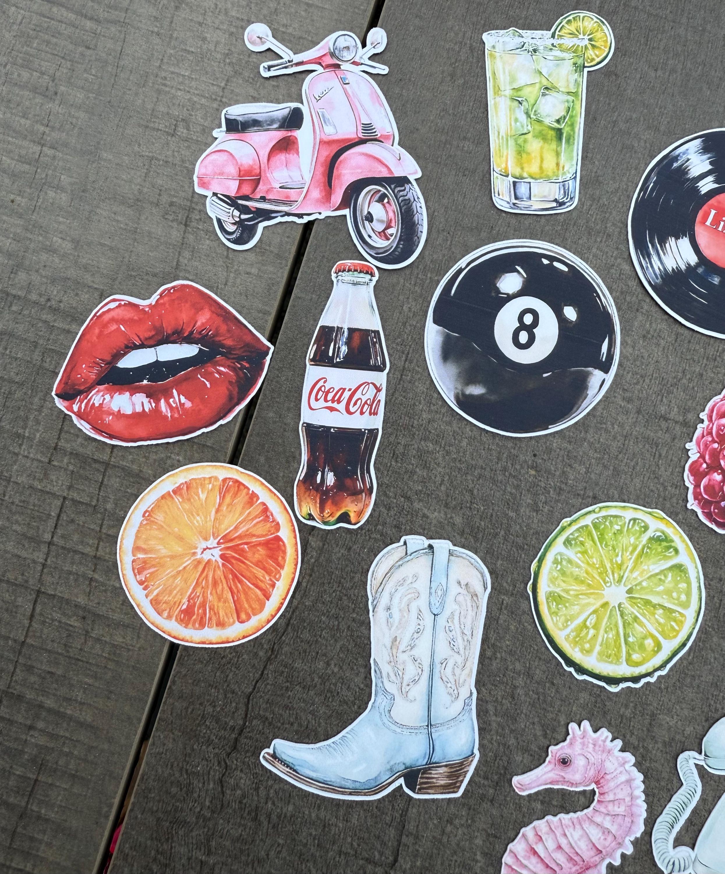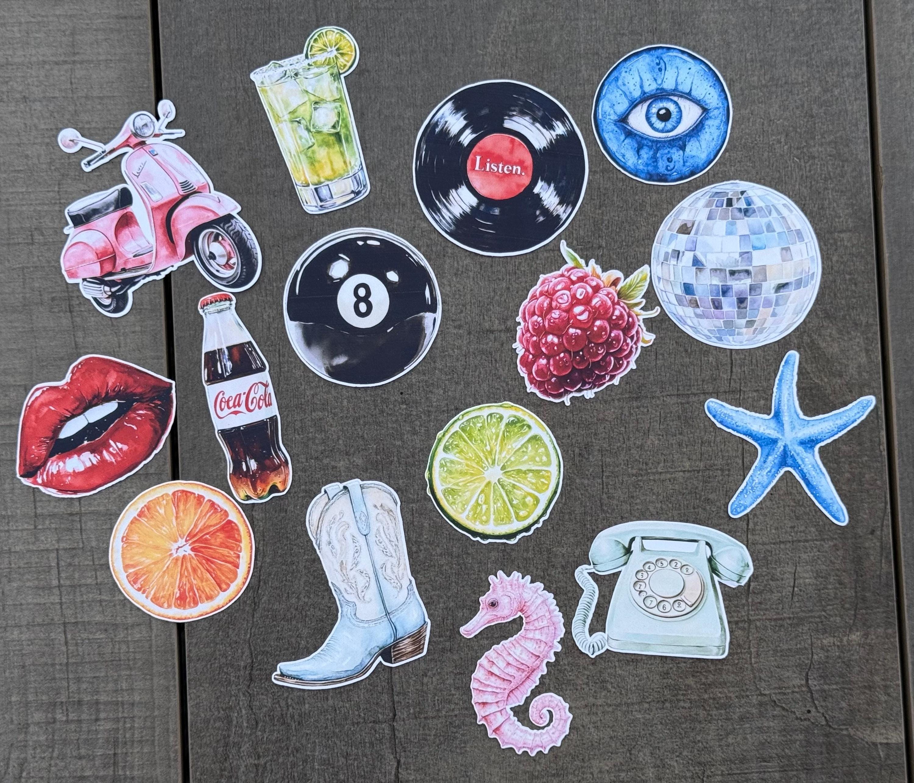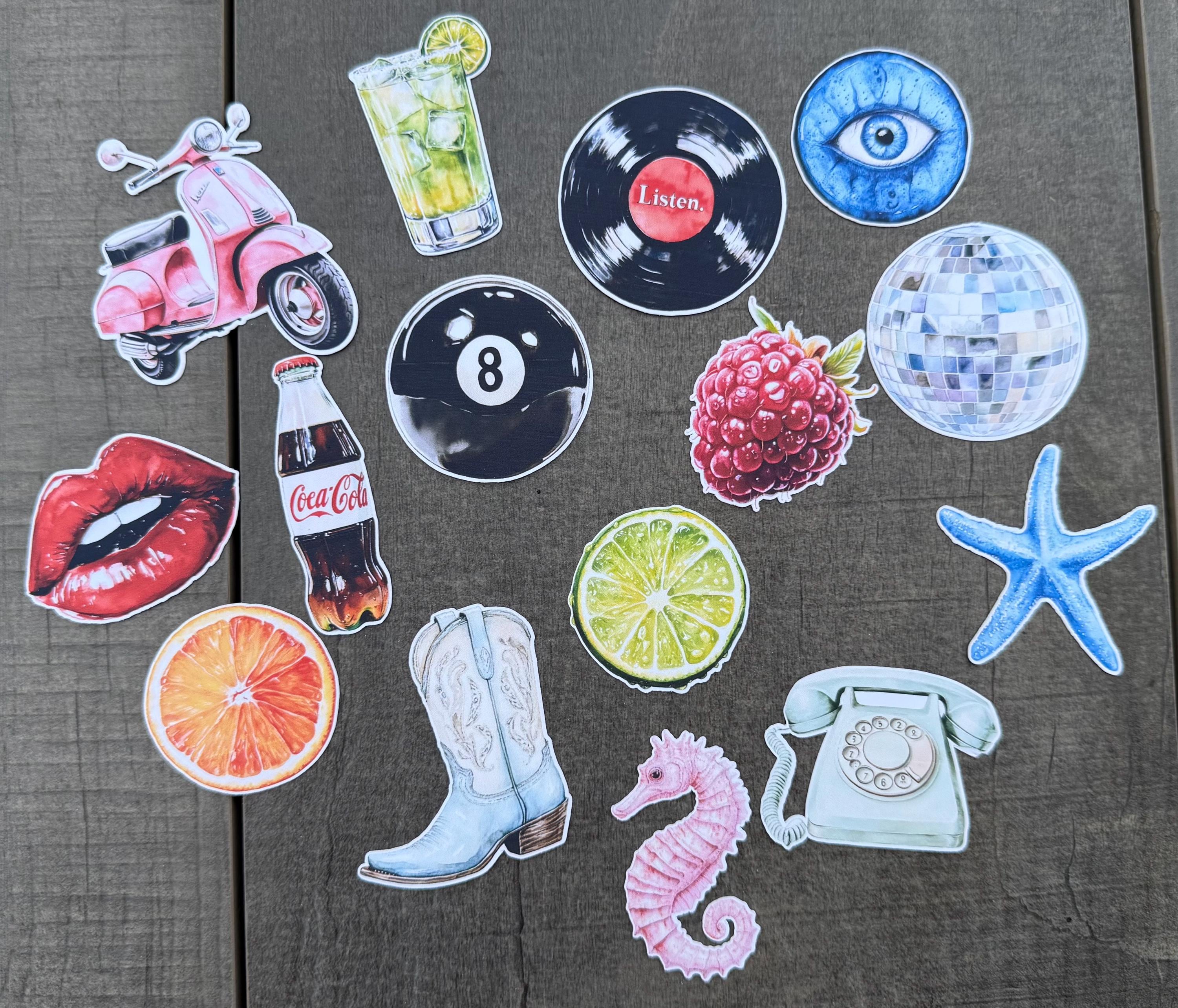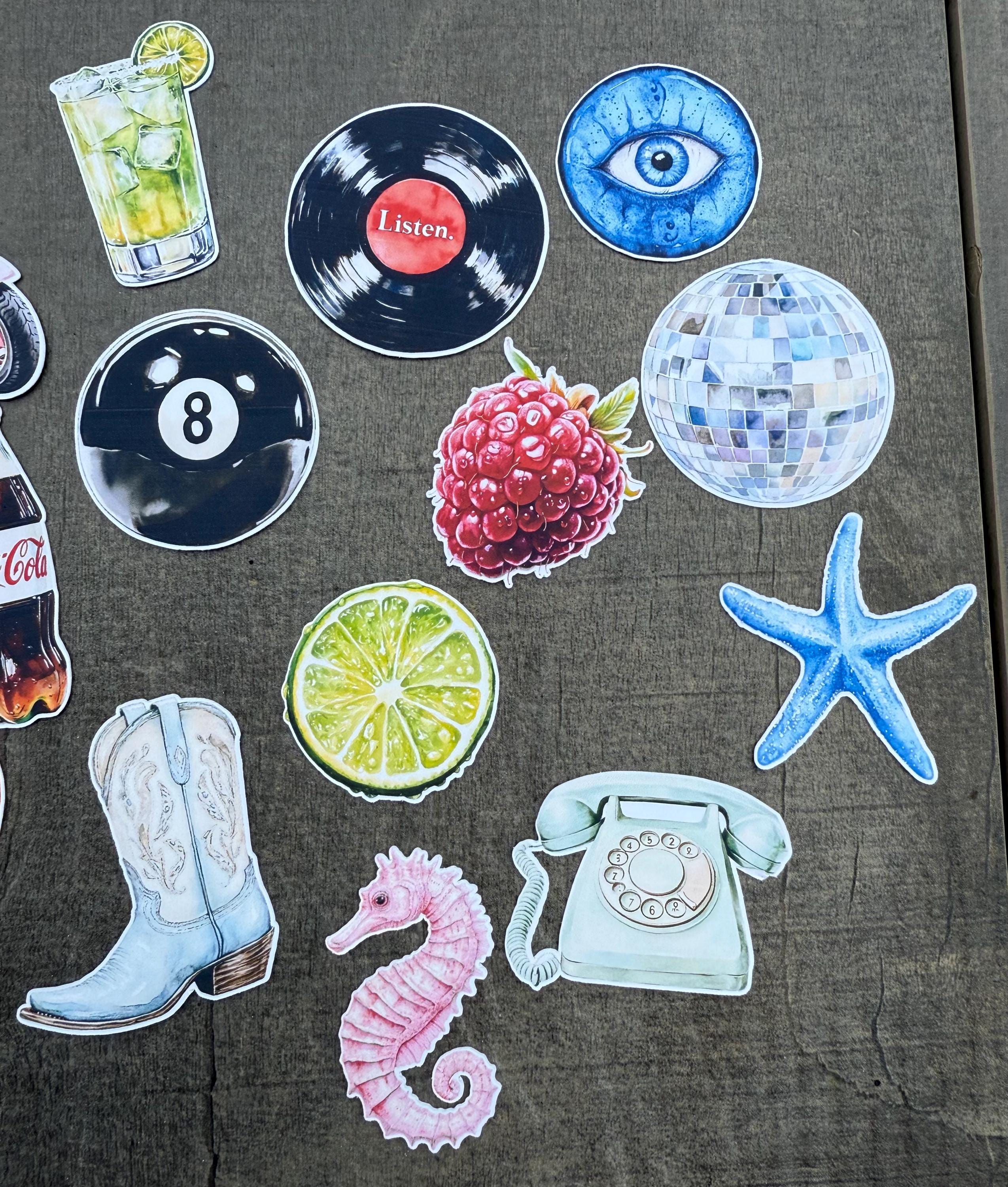 Lifestyle Sticker Set: 6 stickers of your choice starfish, seahorse, cocktail, vinyl record, telephone, billiard ball, disco ball