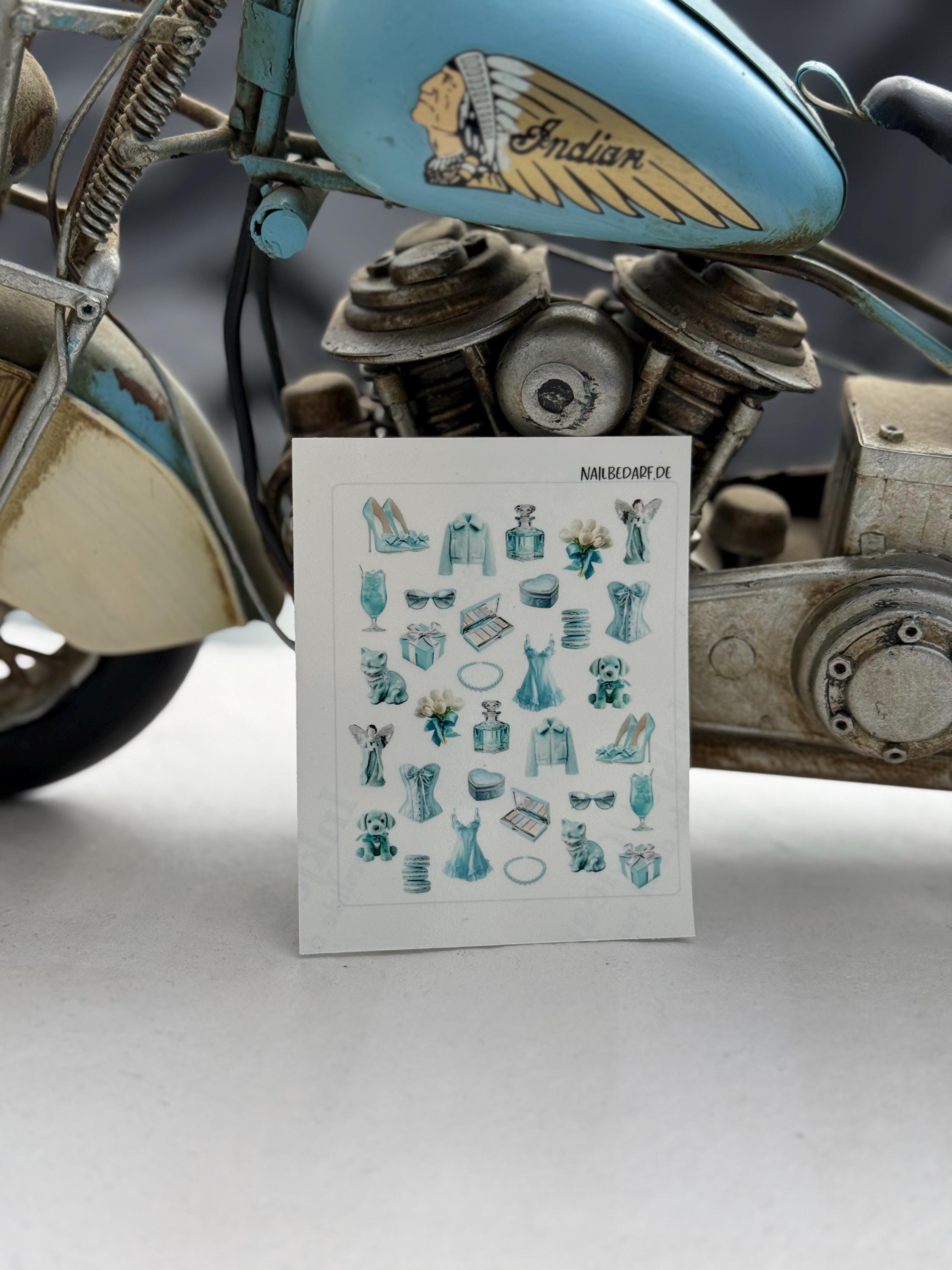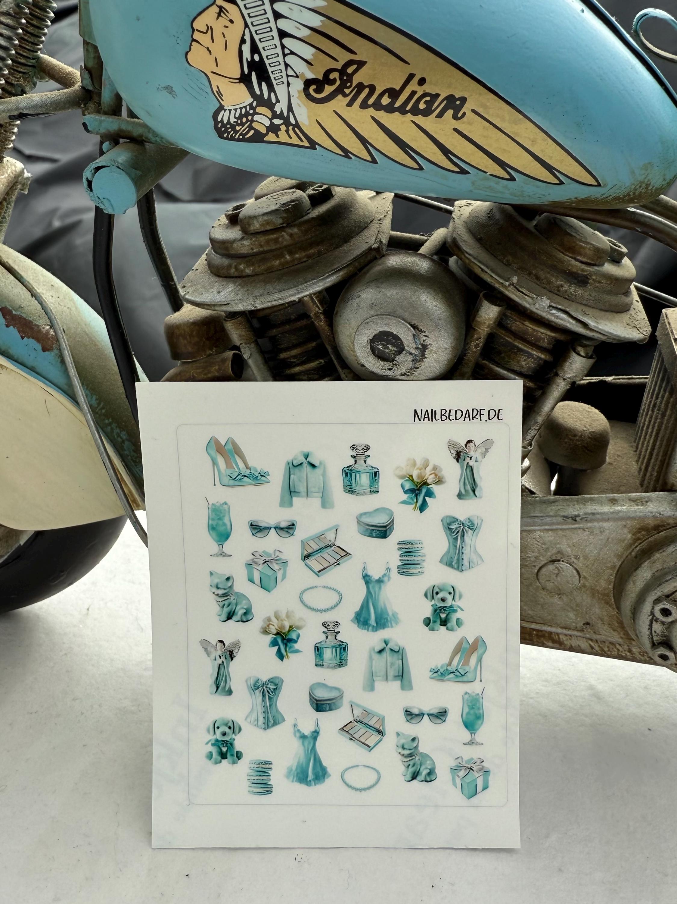 Luxury Tiffany Nail Stickers, Water Nail Decals, Aesthetic Blue Nail Art, Flirty Feminine Nail Tattoo