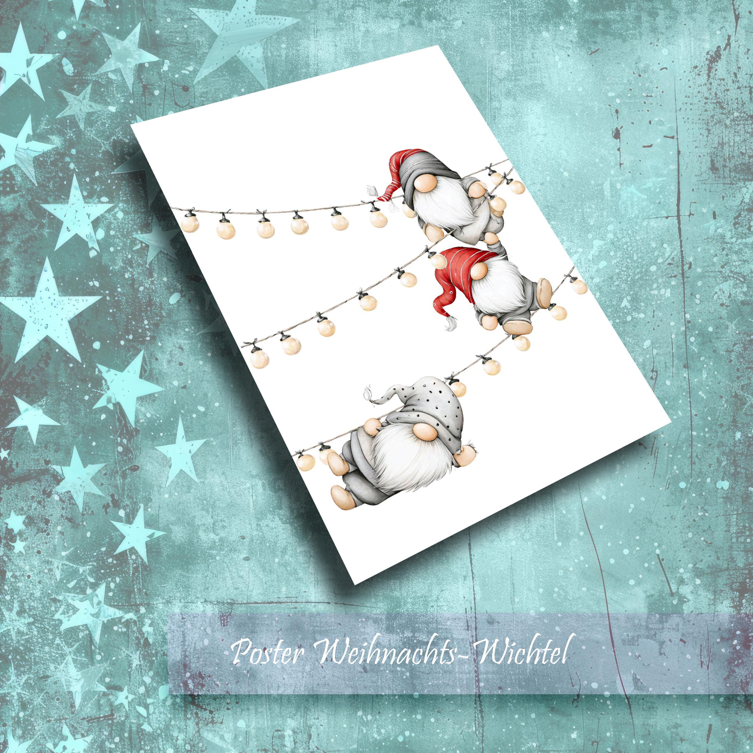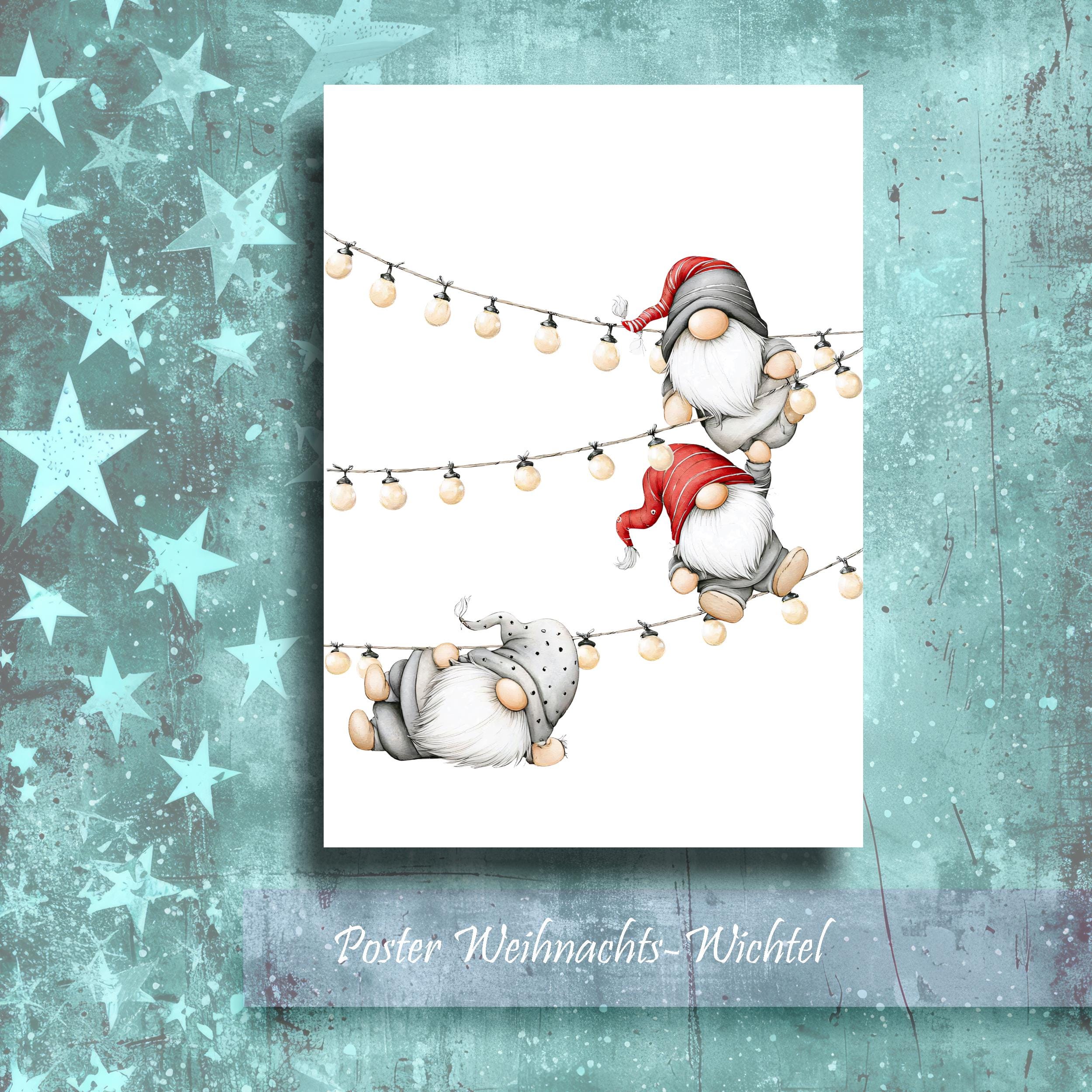 Poster Little Elves, Gnomes, Christmas Elves, Color Poster, Mural, Art Print, Wall Poster