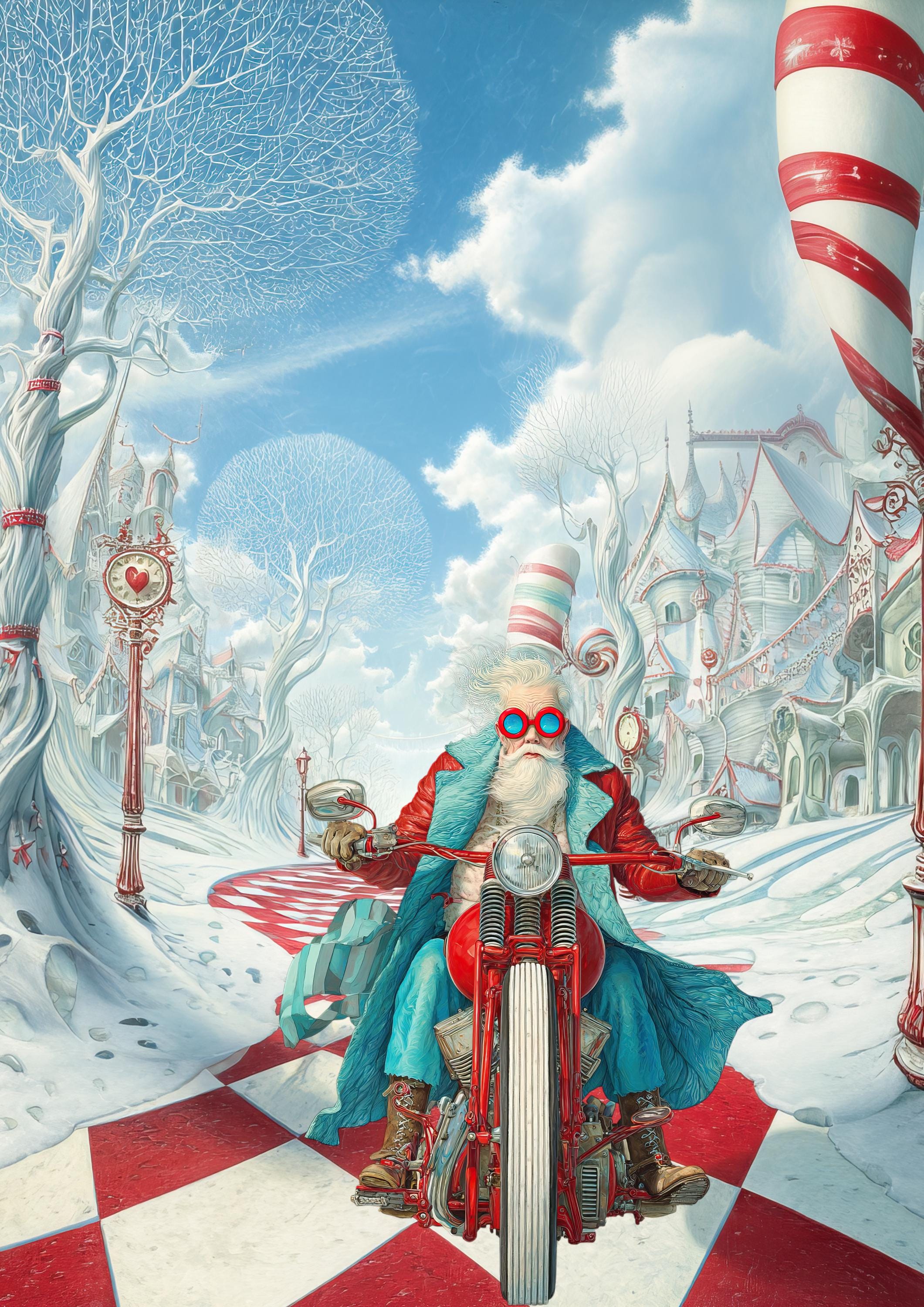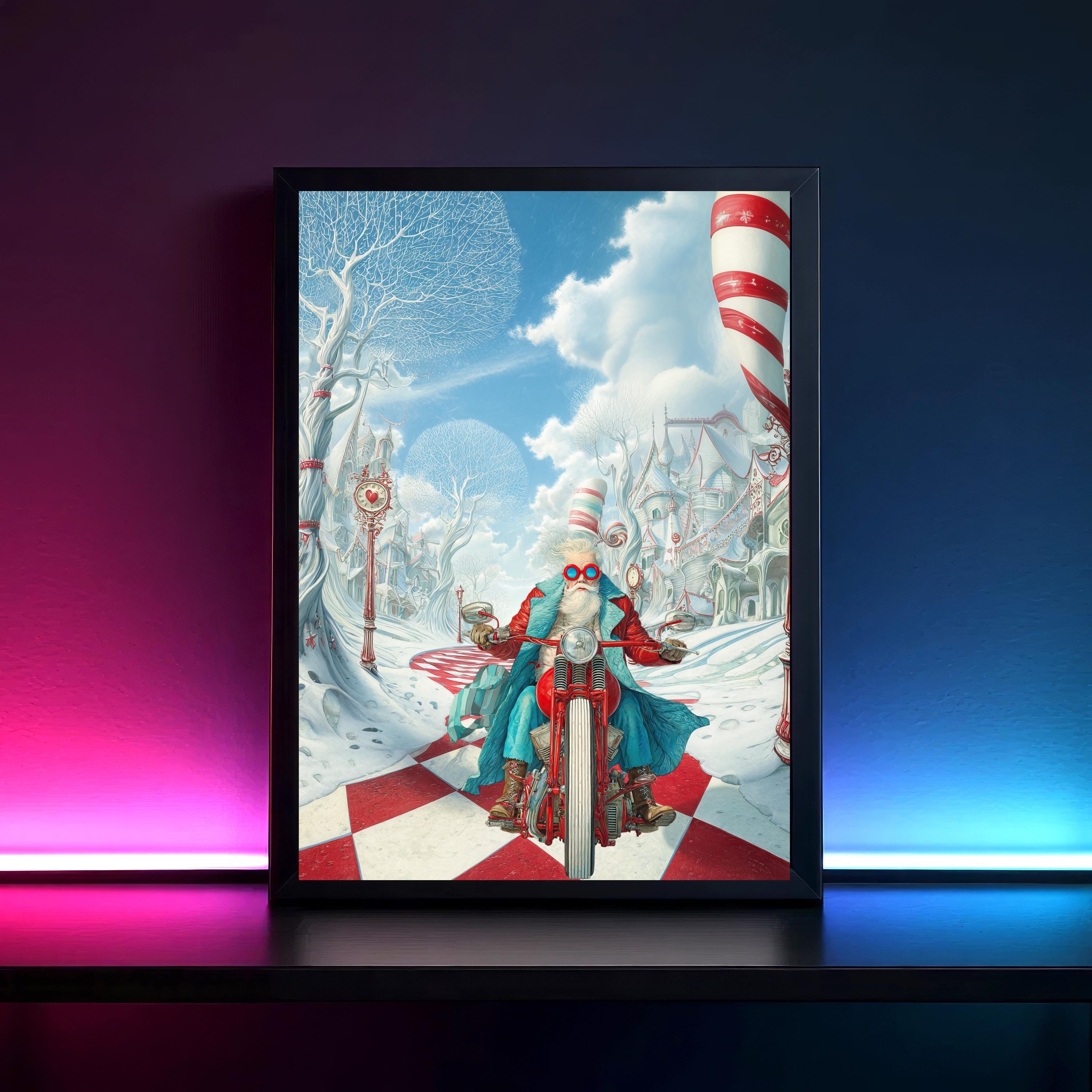 Quirky Biker Santa Claus Poster, Color Poster, Wall Art, Art Print, Wall Poster