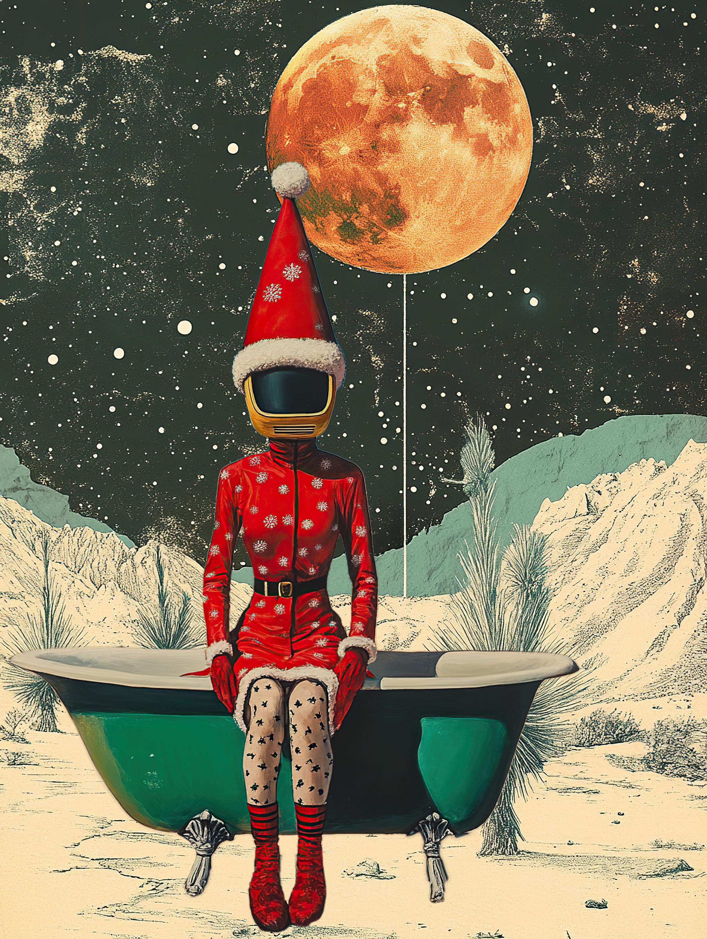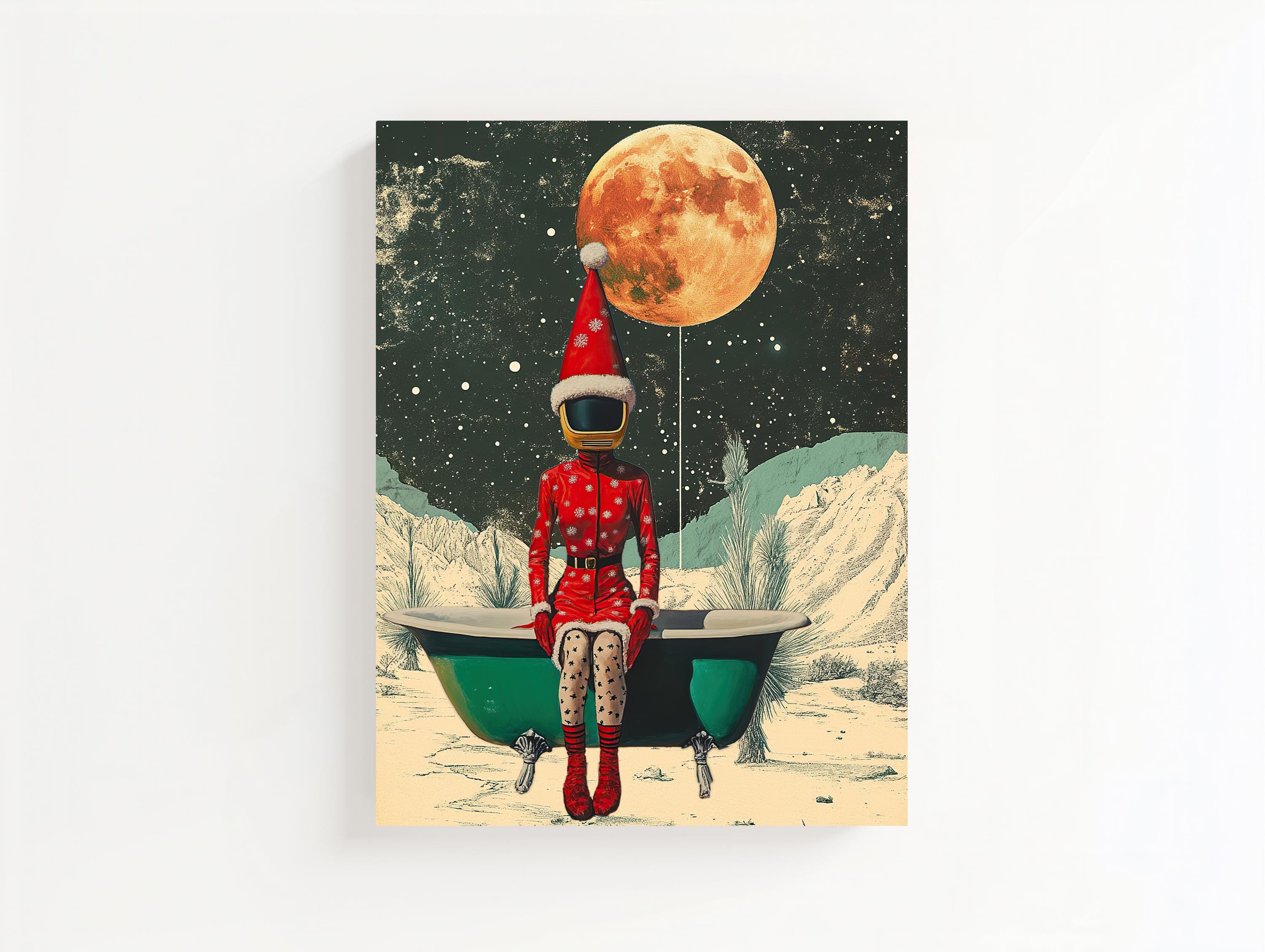 Surreal Christmas Desert Poster, Woman on the Moon, Color Poster, Wall Art, Art Print, Wall Poster