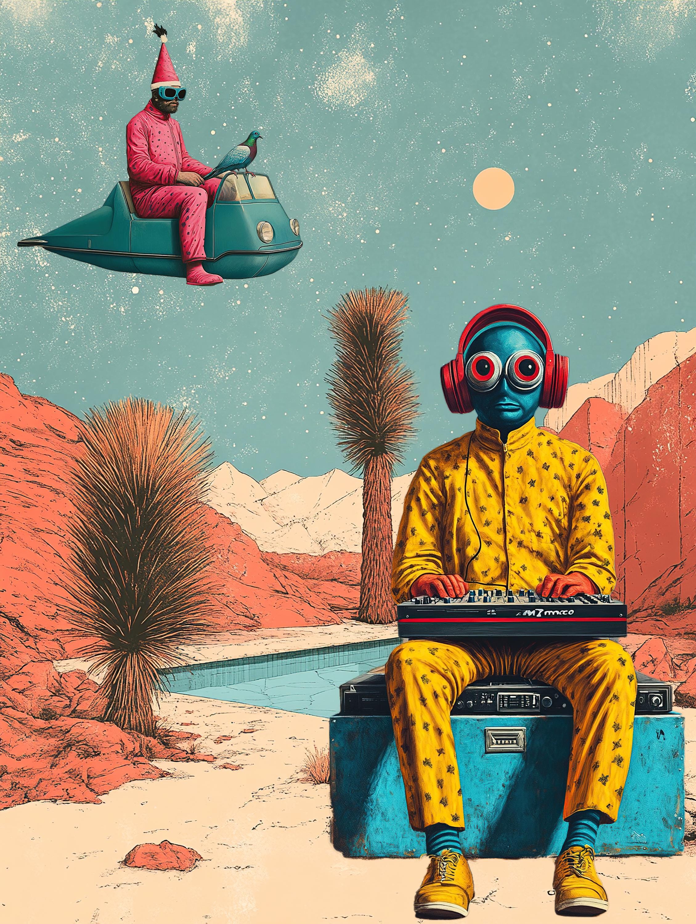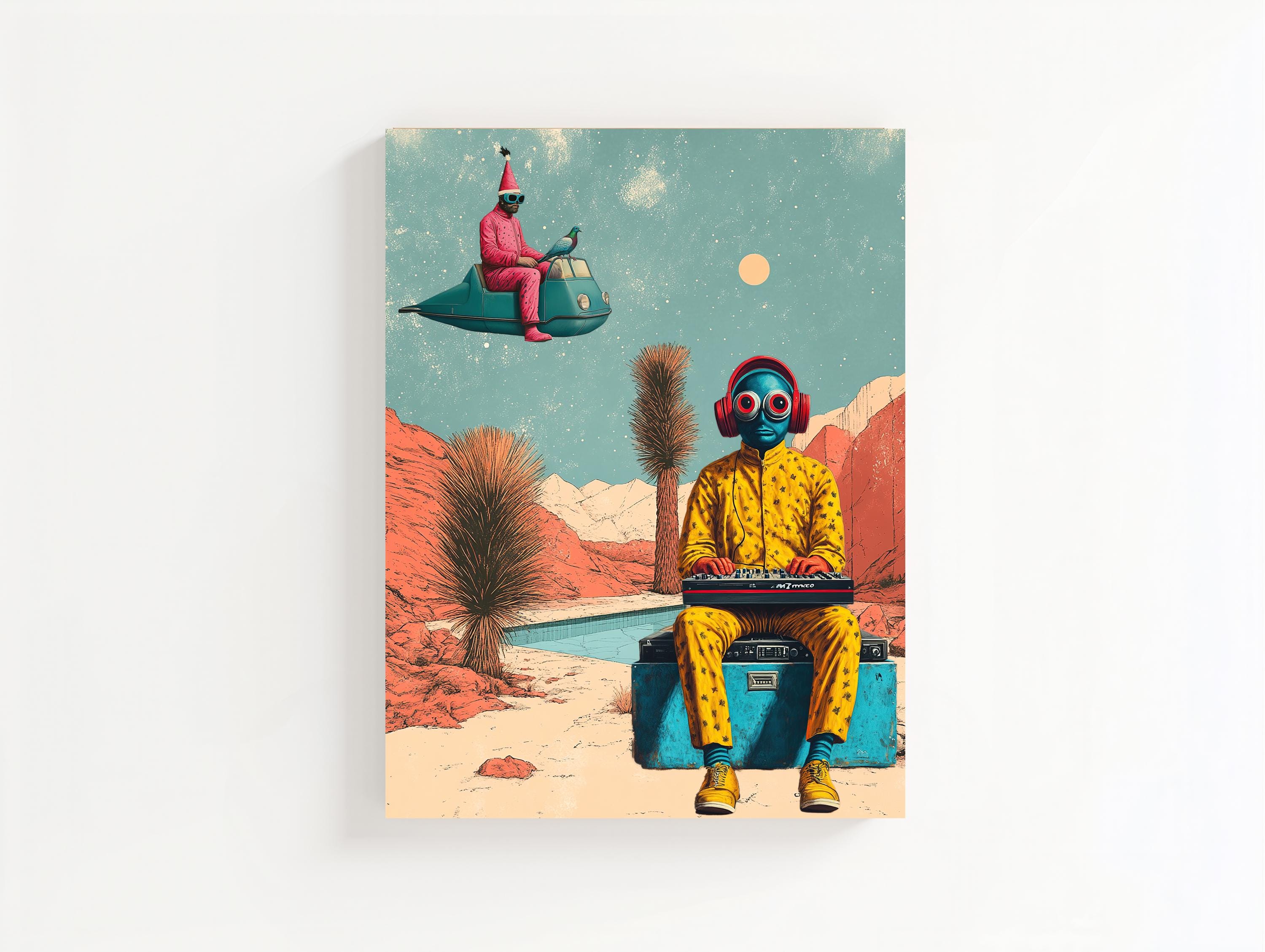 Surreal Christmas Desert Poster, Man on the Moon, Color Poster, Wall Art, Art Print, Wall Poster