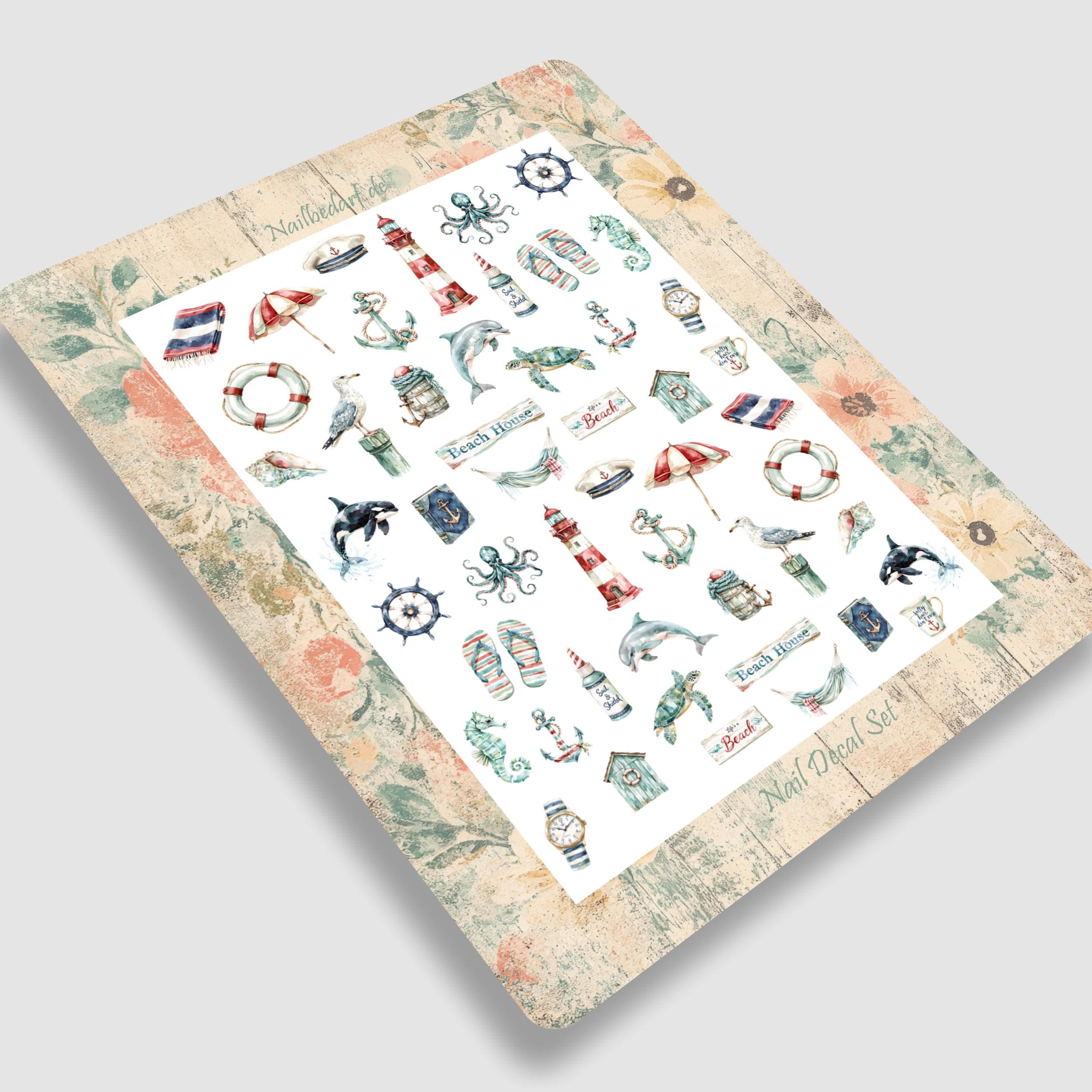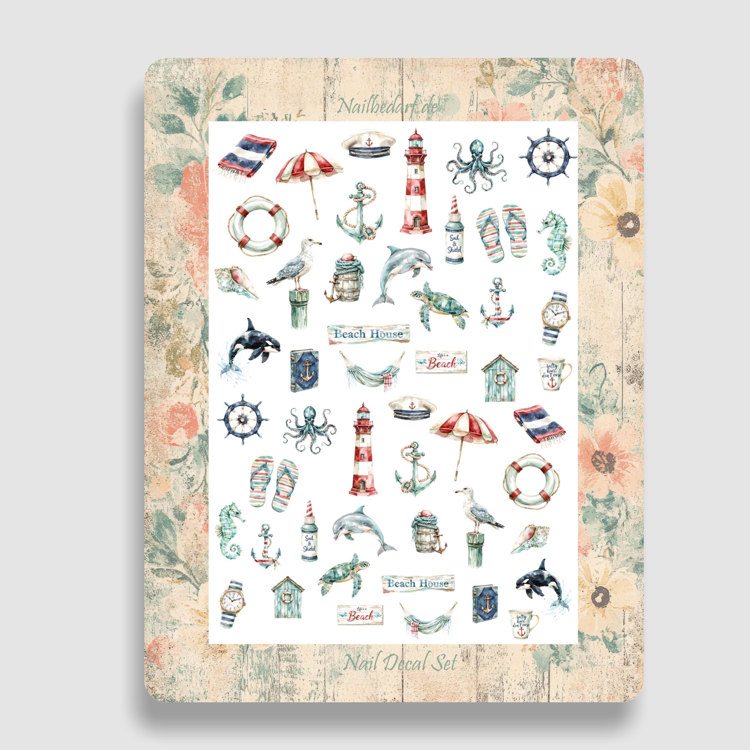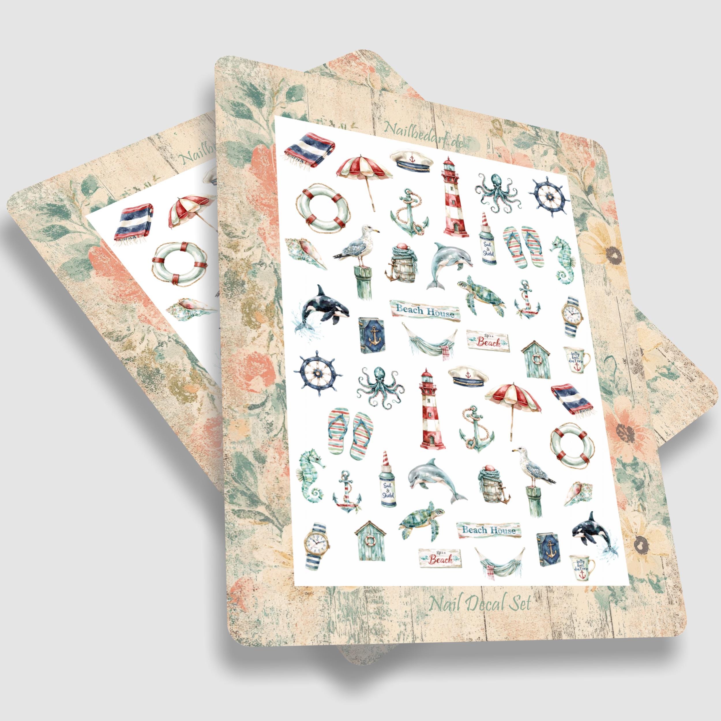 Summer Waterslide Nail Stickers - Summer Vacation, Sea Creatures, Delicious Fruits and Cocktails, Beach Vacation