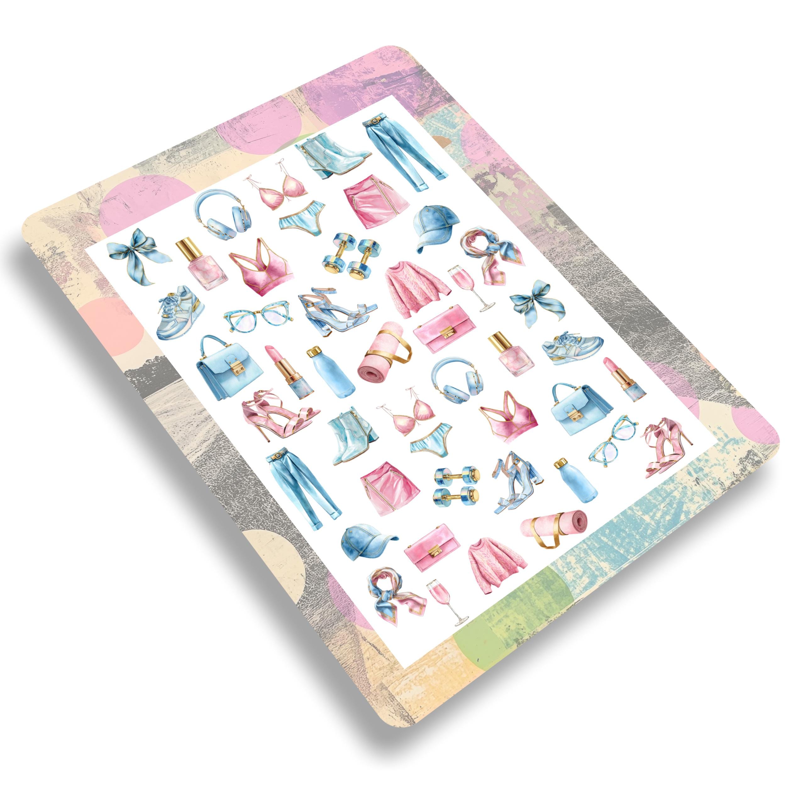 Pink Blue Lifestyle - Waterslide Nail Stickers - Pastel, Fashion, Beauty, Fitness