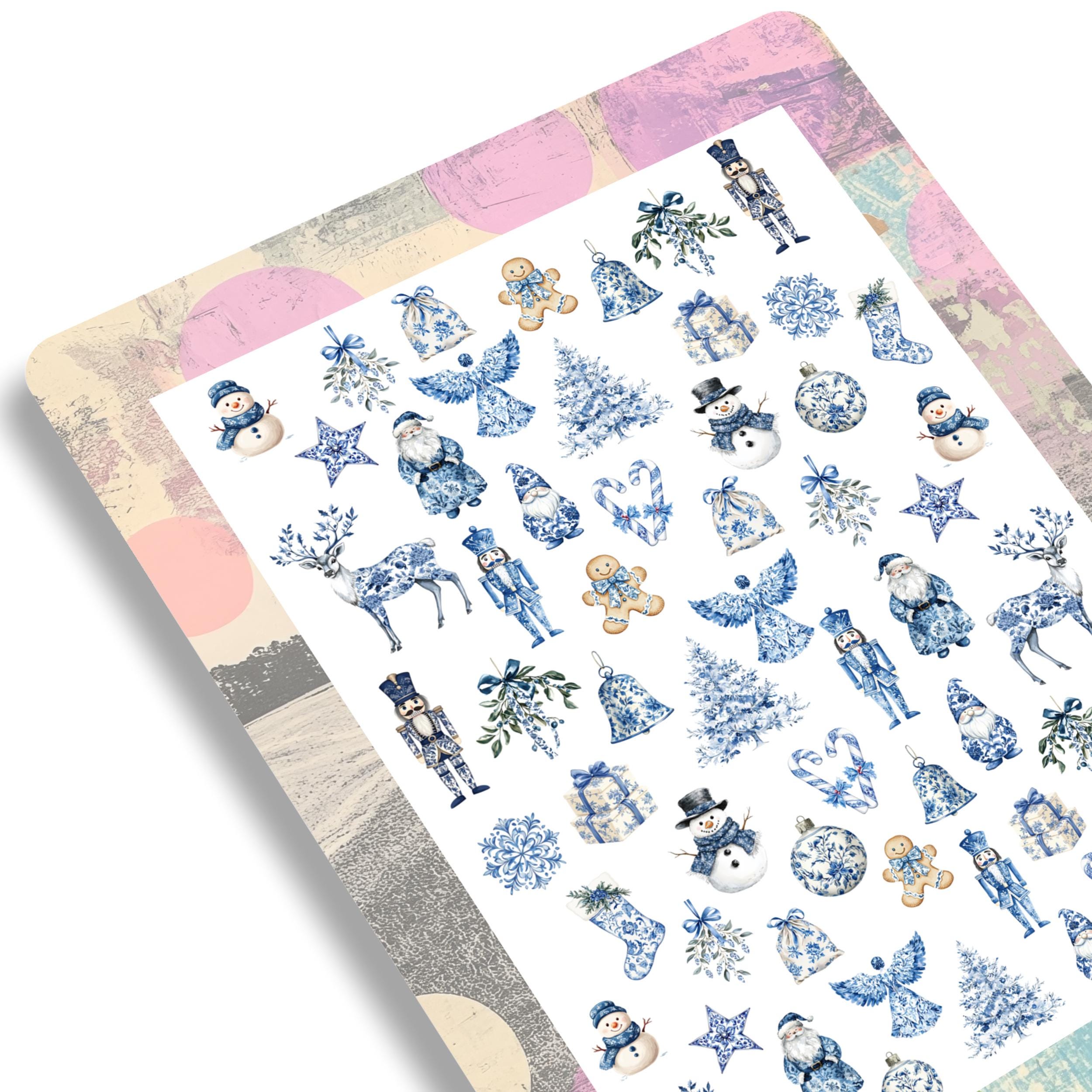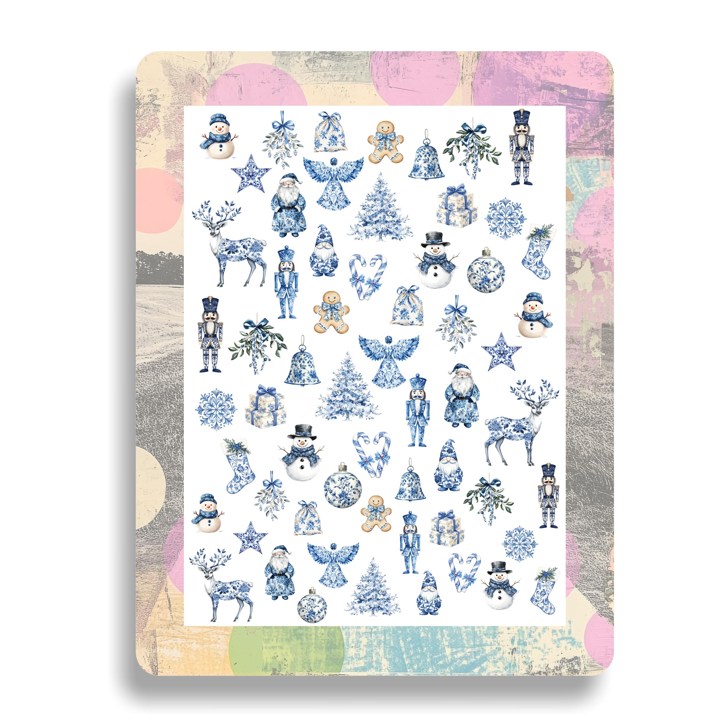 Blue Christmas Chinoiserie Nail Stickers - Waterslide Nail Decals, Nutcracker, Watercolor Winter, Christmas Tree, Snowflake