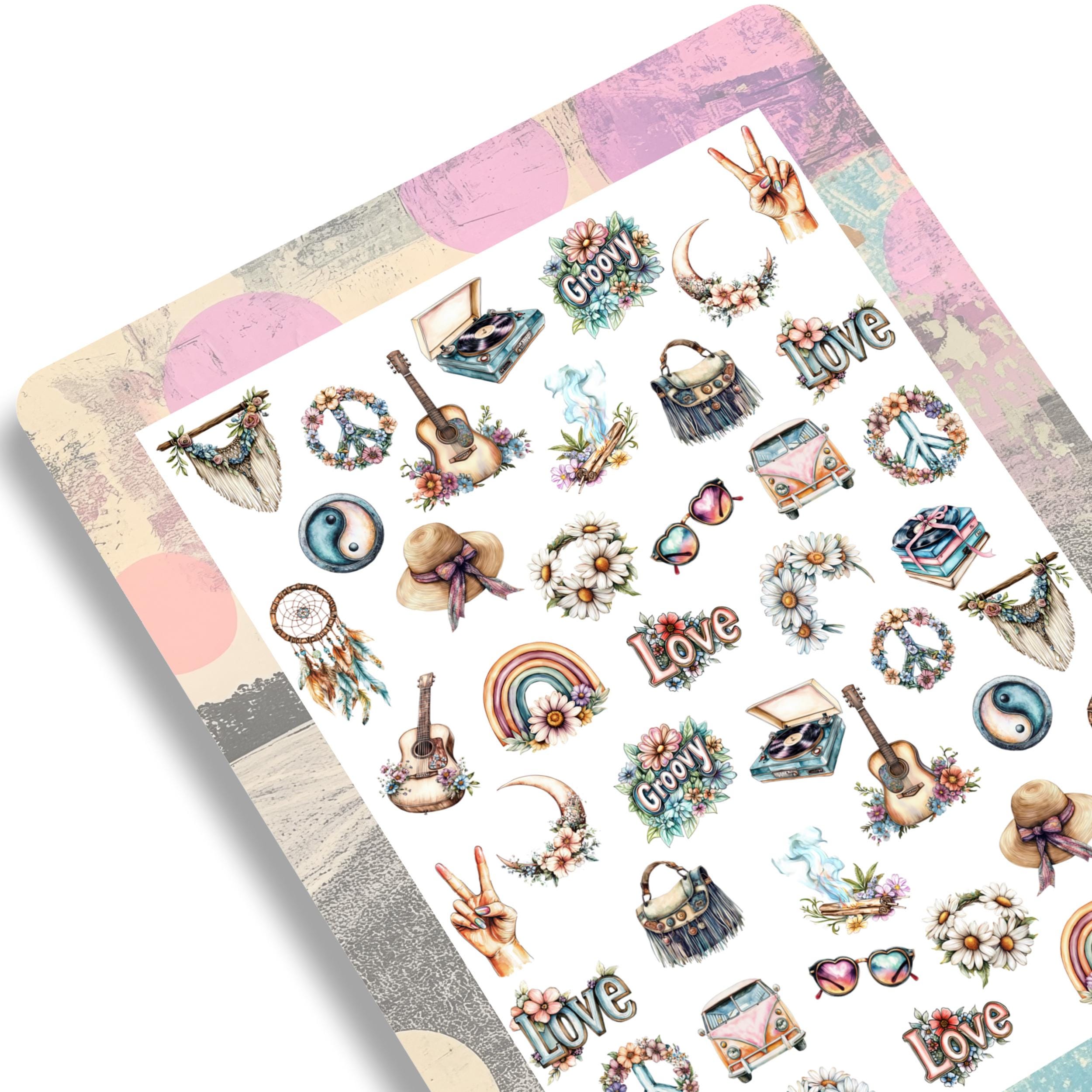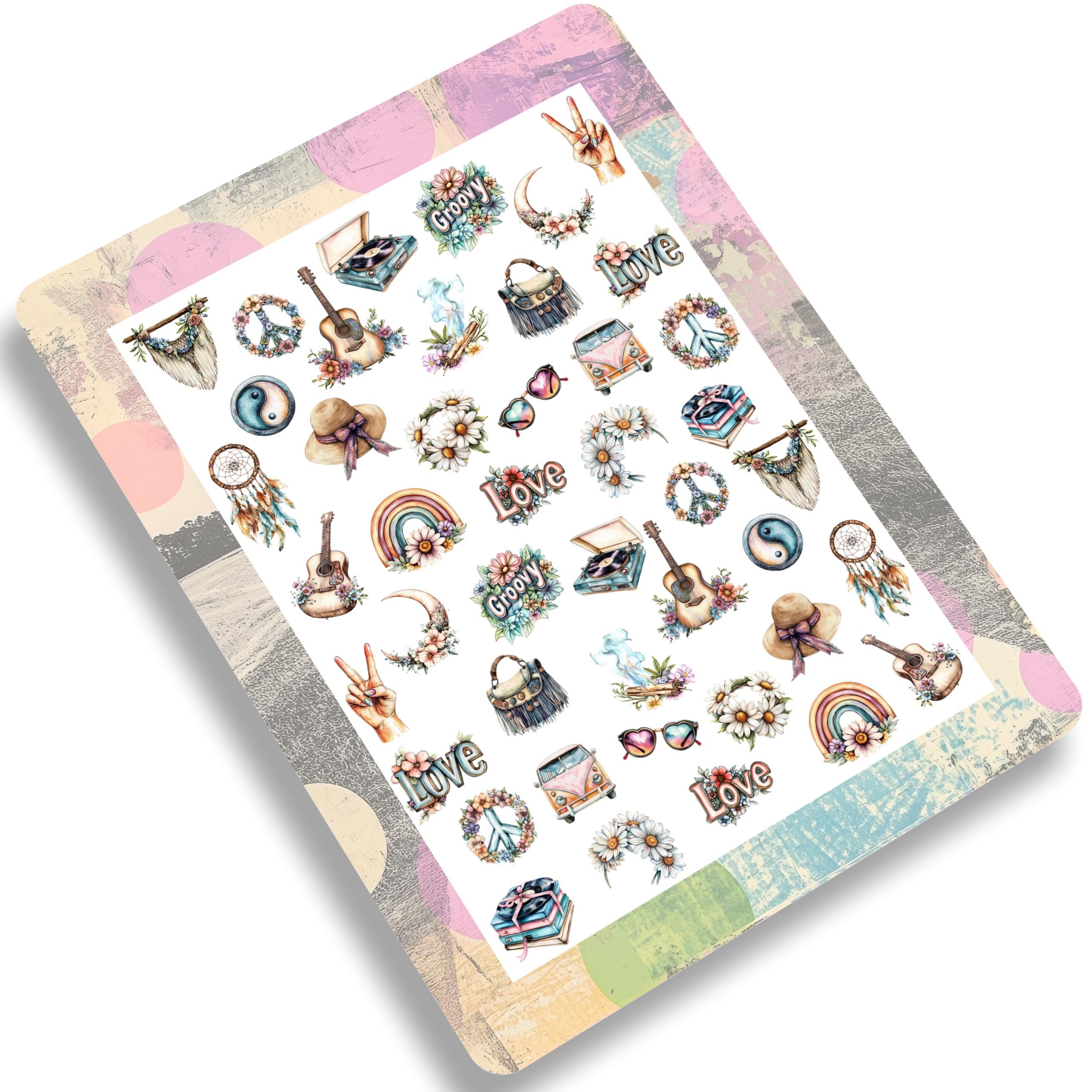 Flower Power Hippie Nail Stickers - Waterslide Nail Decals, Woodstock Festival, 70's Nostalgia Nail Art