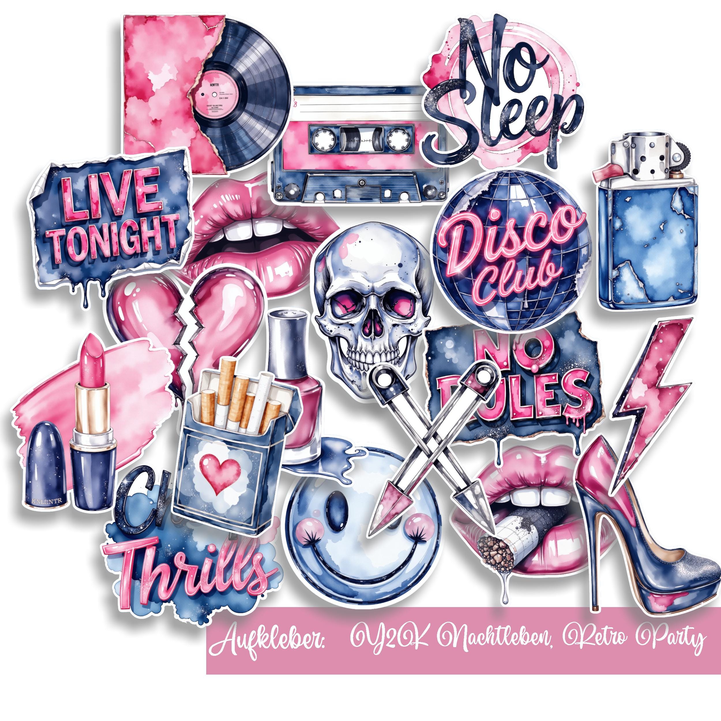 Y2K Party Stickers Retro Nightlife Club Culture in 3 Sizes