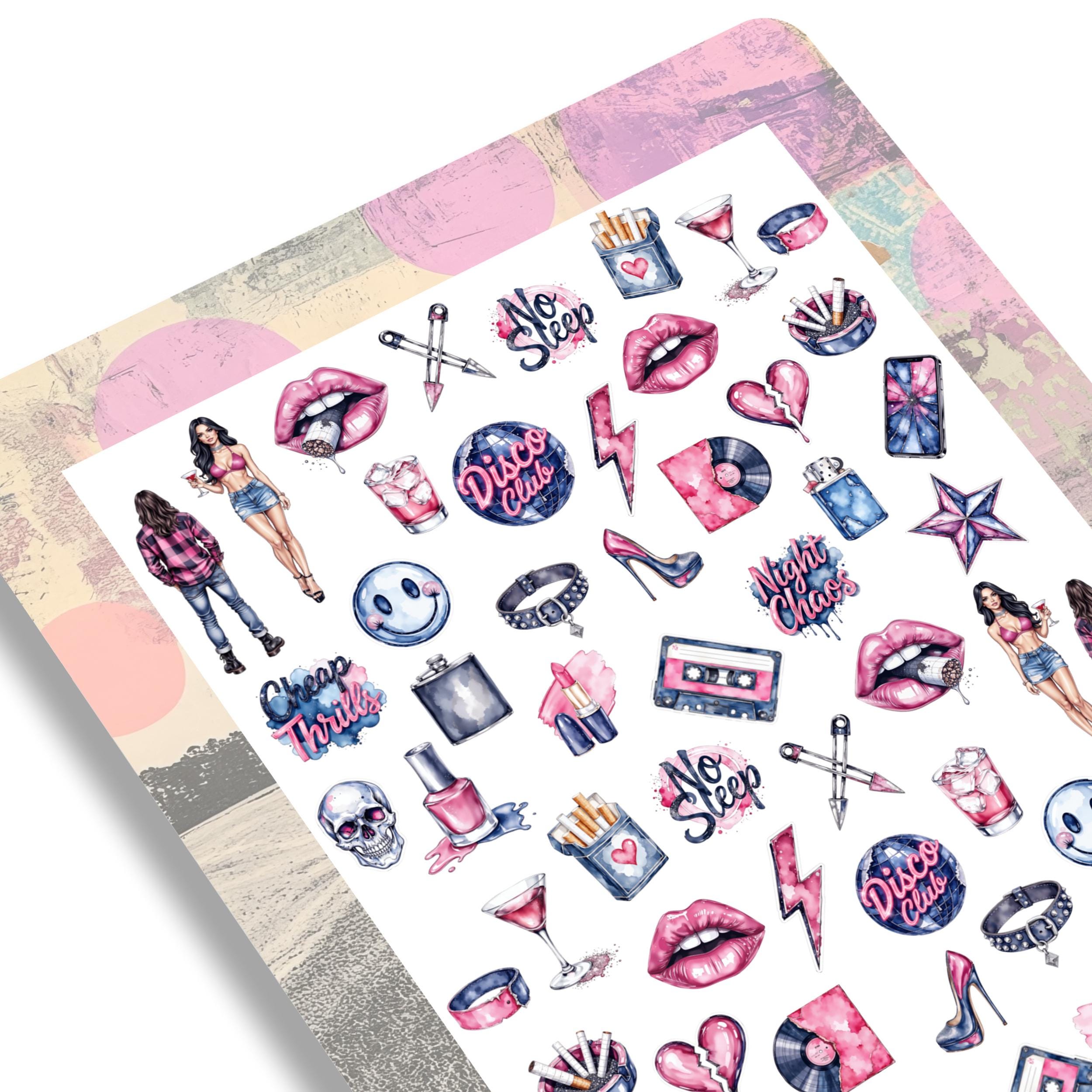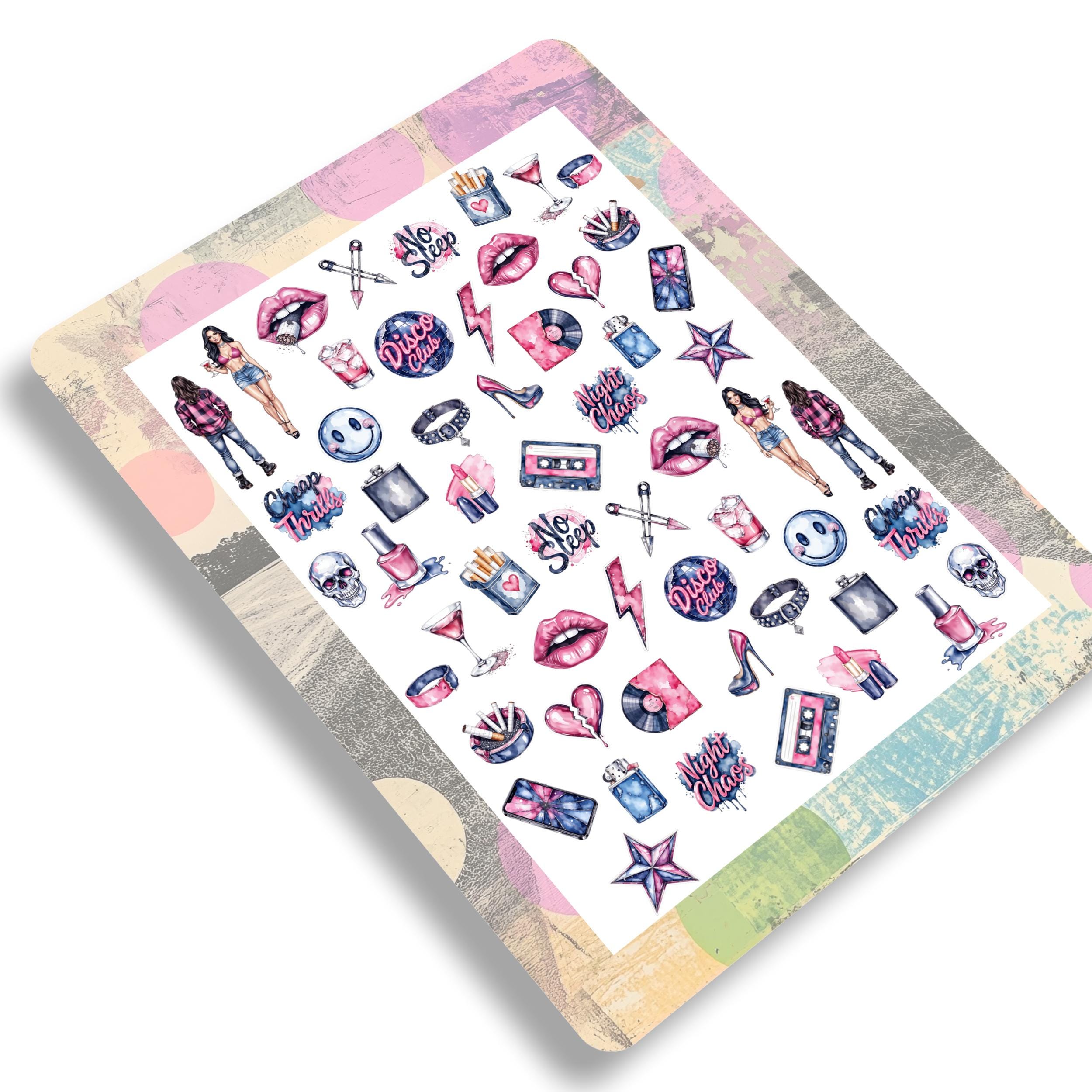 Indie Sleaze Revival Nail Stickers - Waterslide Nail Decals - Nail Art Revival Trend Grunge, Rock, Electro, Music and Fashion