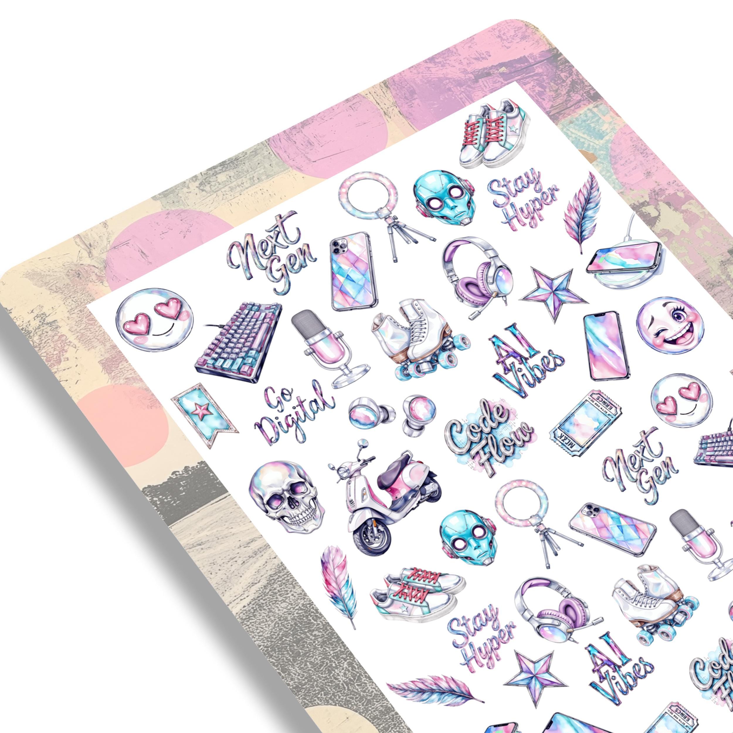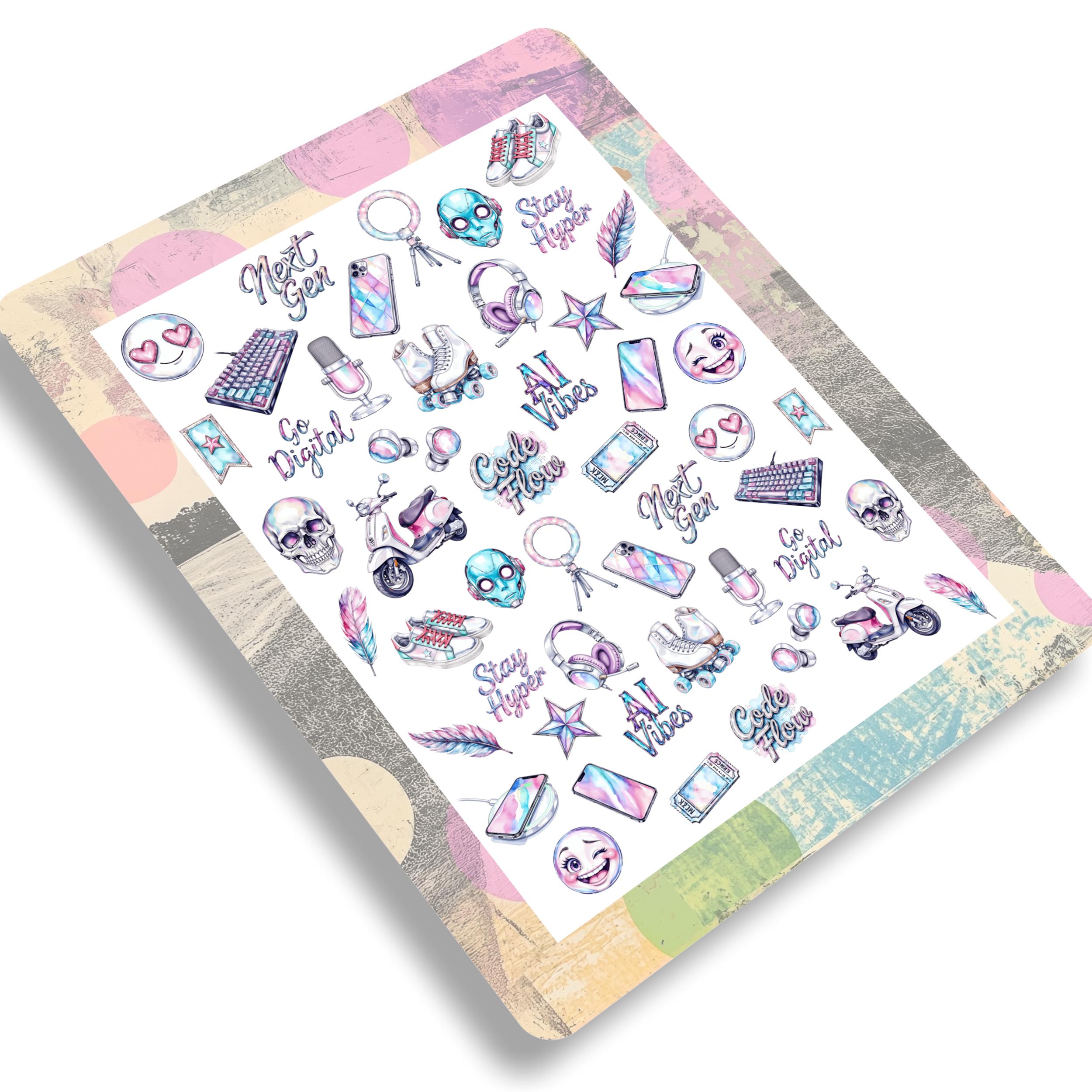 Gen Alpha nail stickers - waterslide nail decals - nail art futuristic, lifestyle, digital world, smartphones, tablets