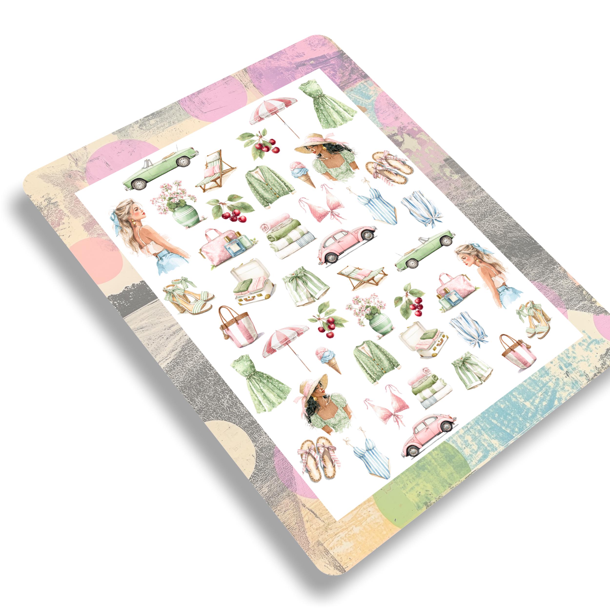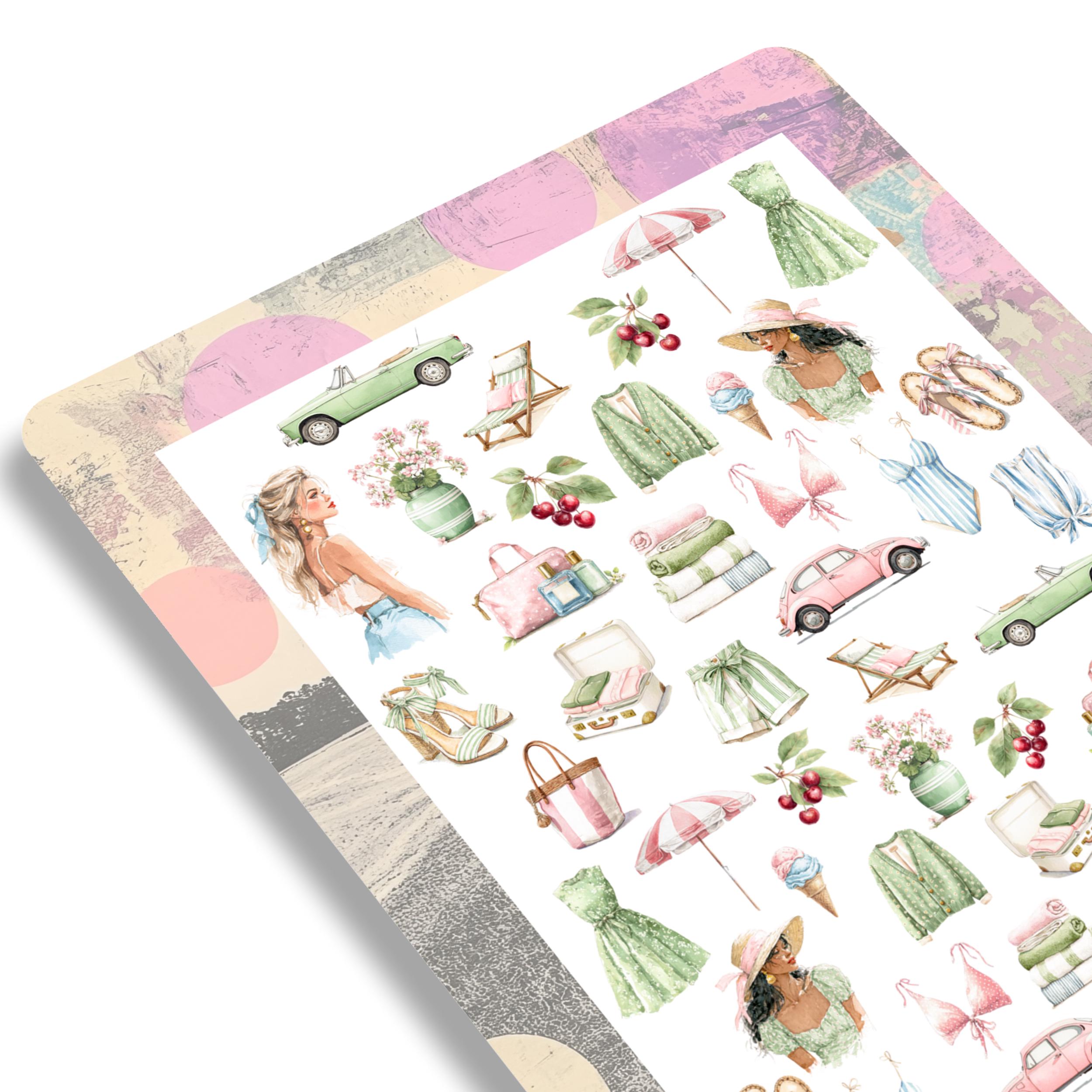 Summer vacation nail stickers - waterslide nail decals - nail art pastel fashion, beach vacation