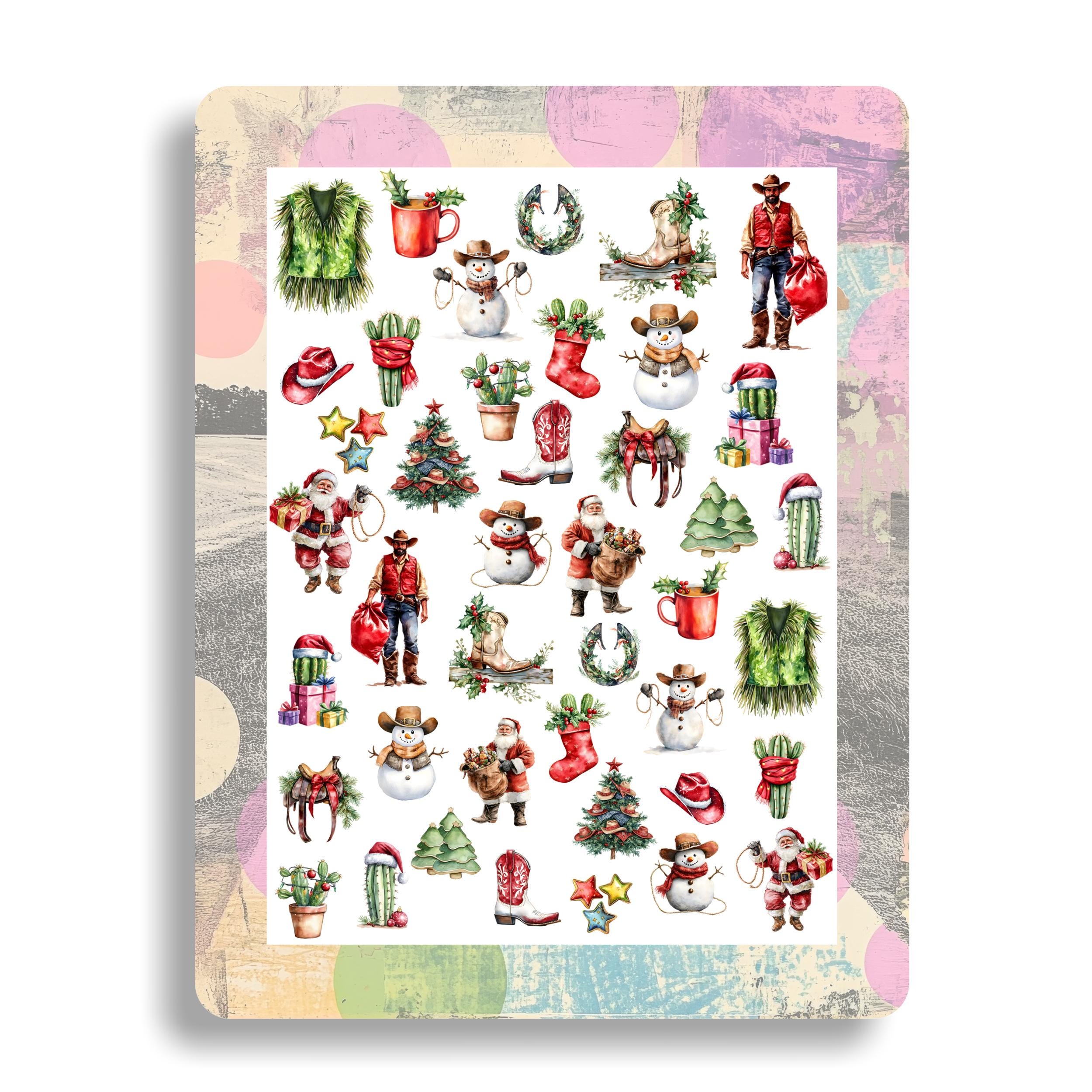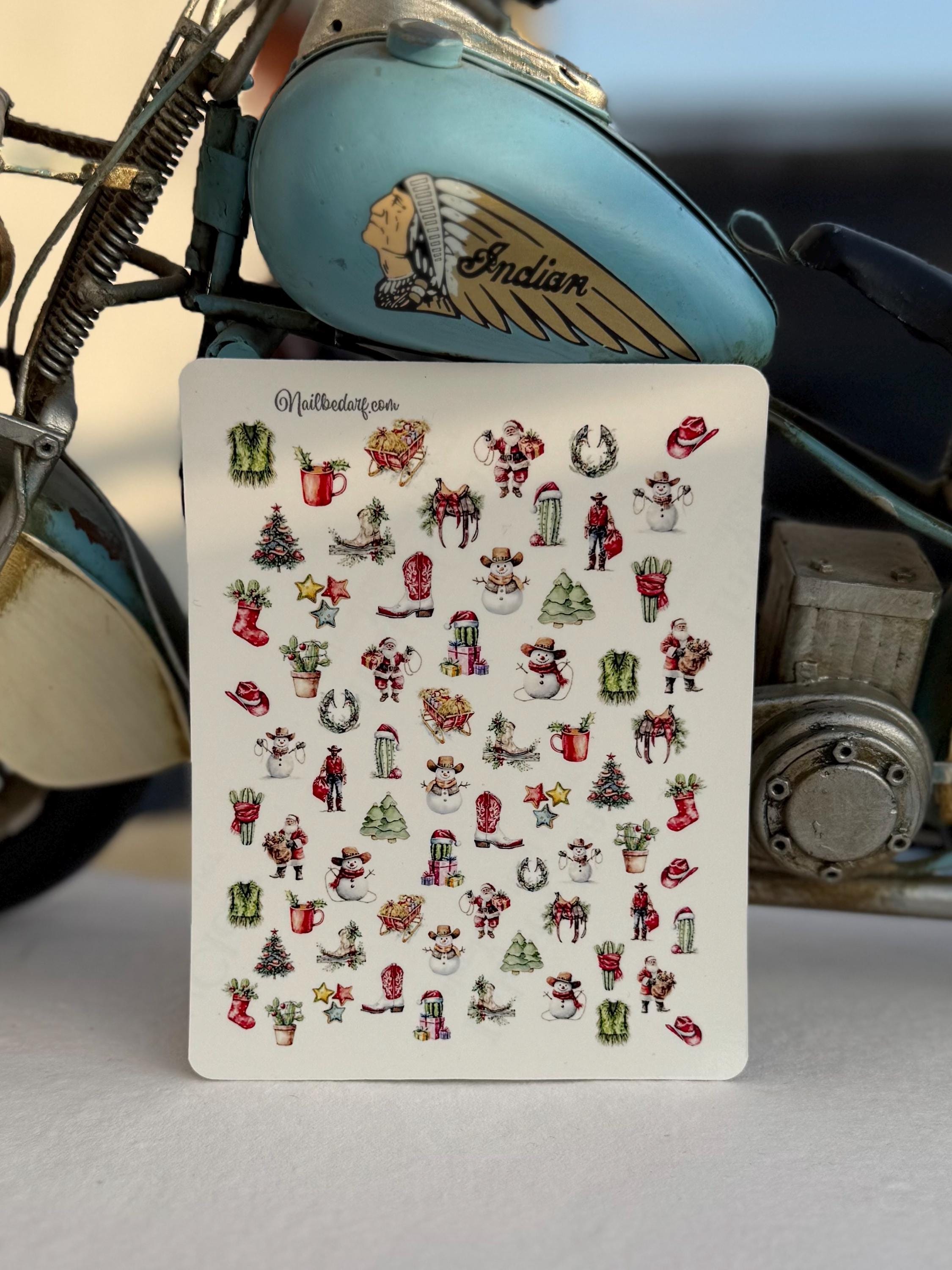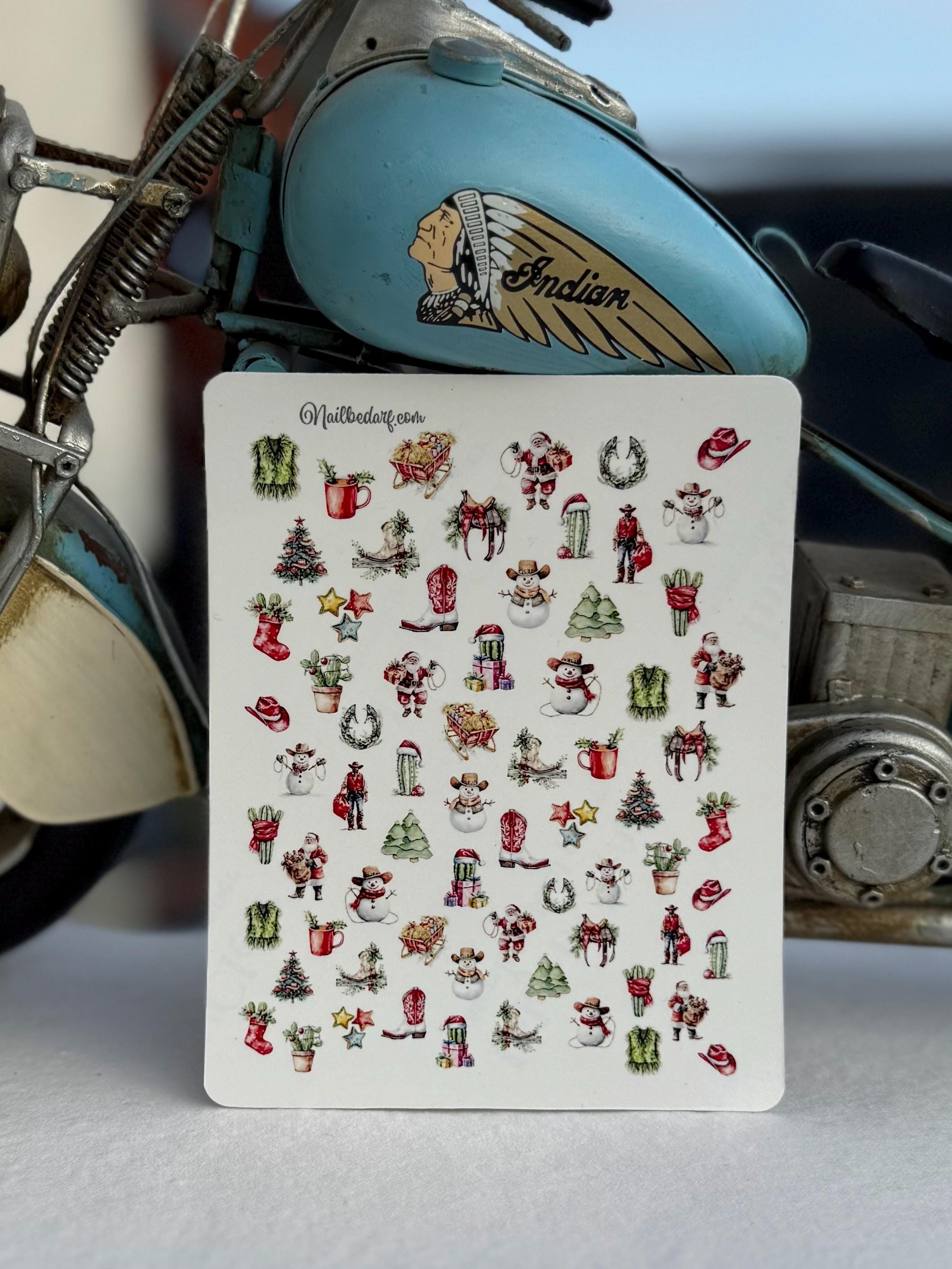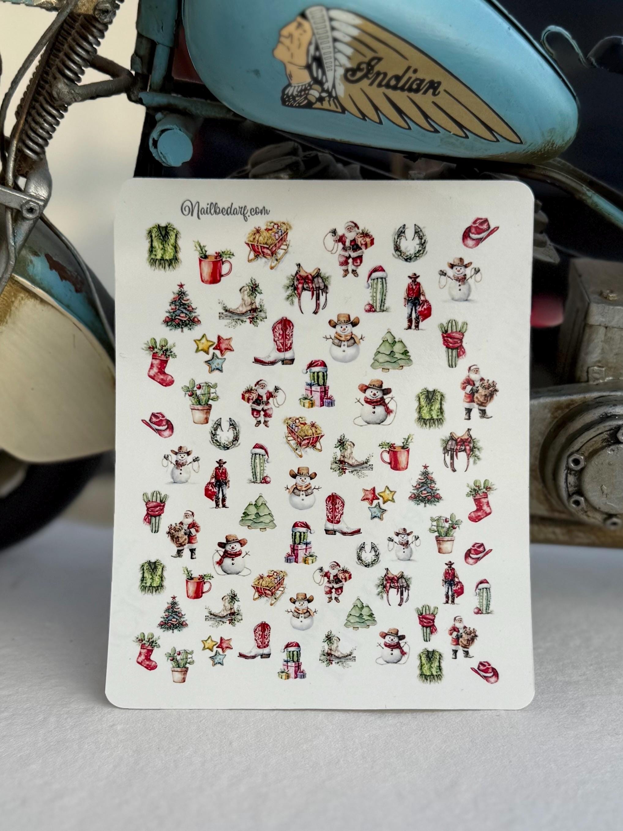 Christmas Country Nail Stickers - Waterslide Nail Decals - Nail Art Christmas Cowboy, Wild West