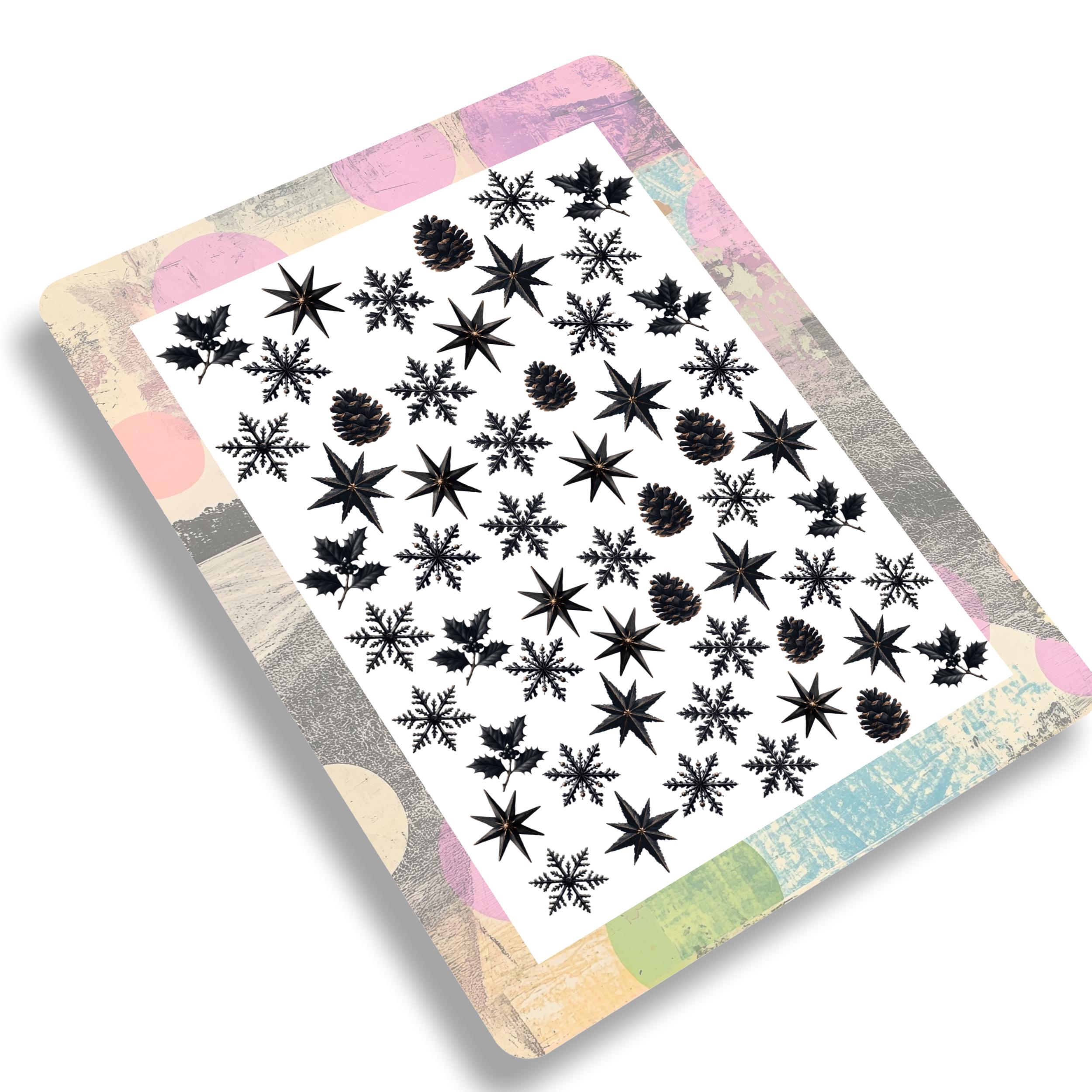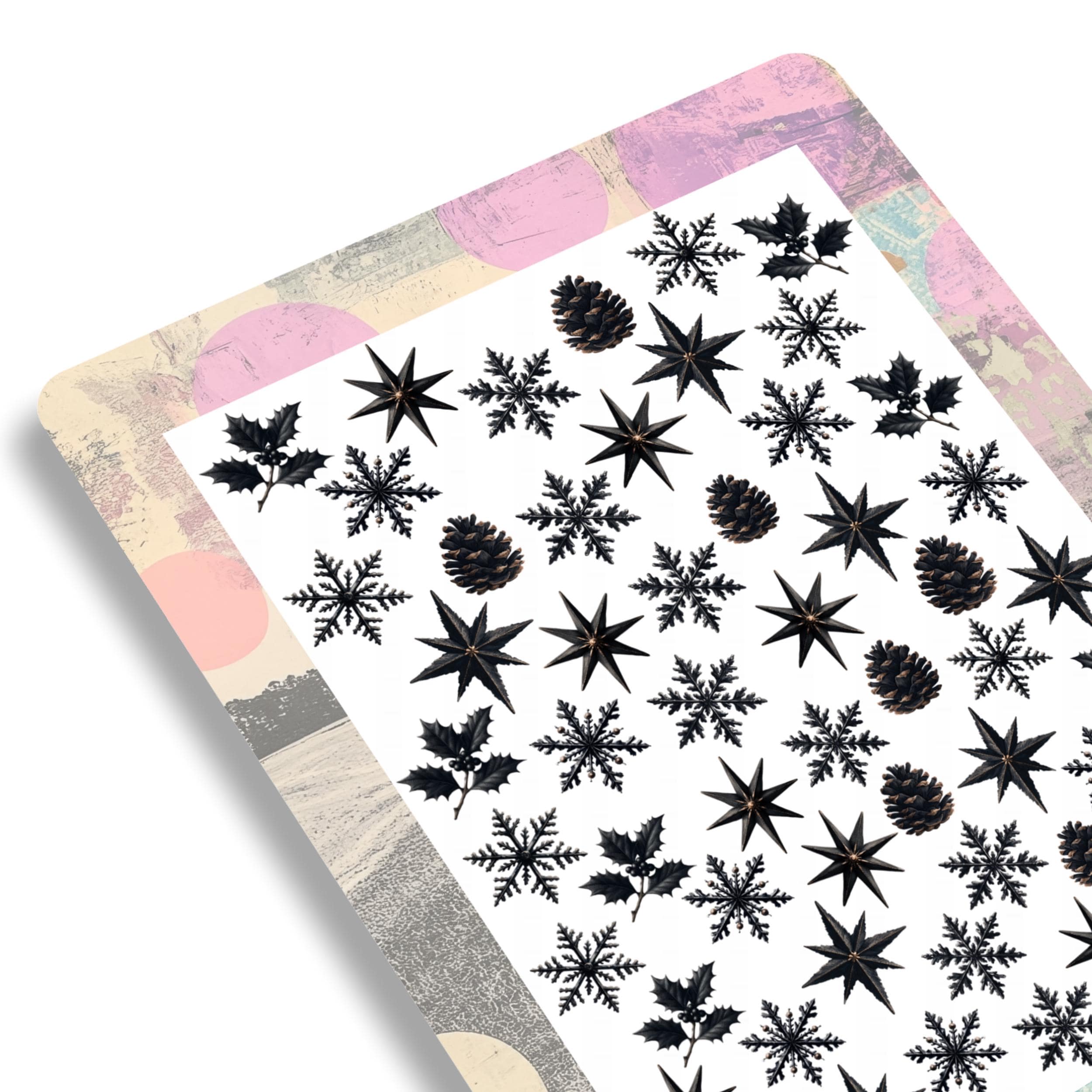Gothic Christmas nail stickers - waterslide nail decals - nail art pine cones, holly, snowflakes black