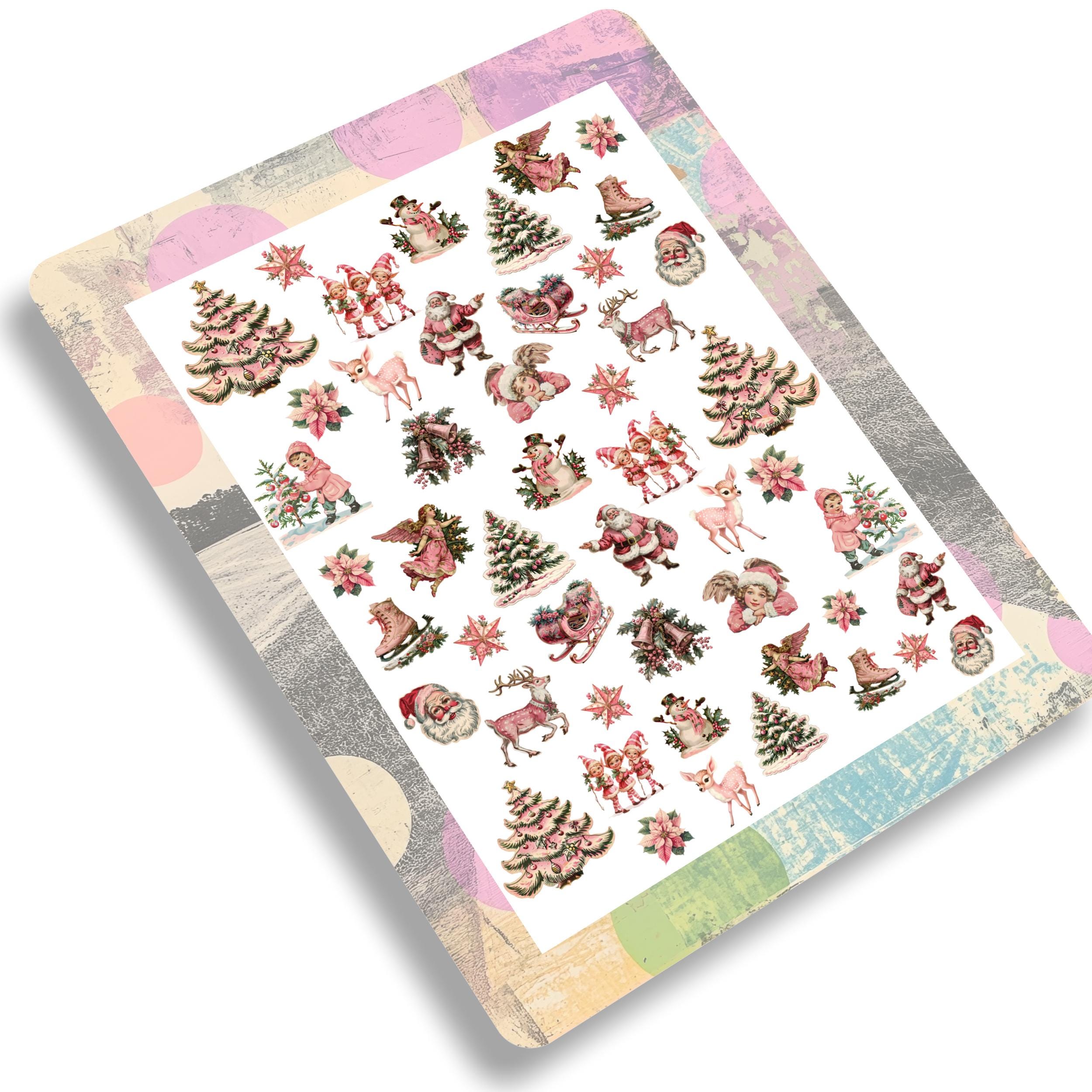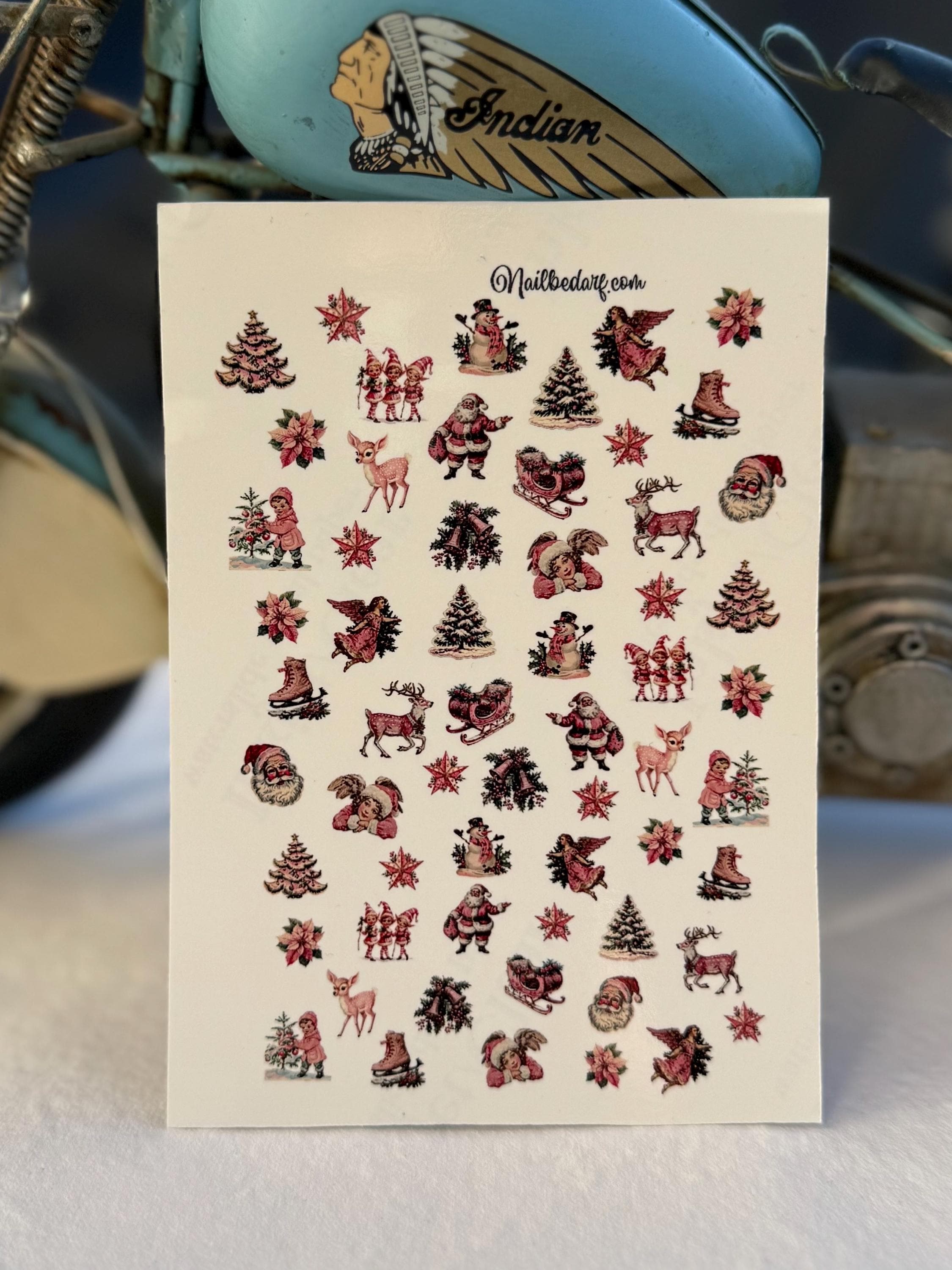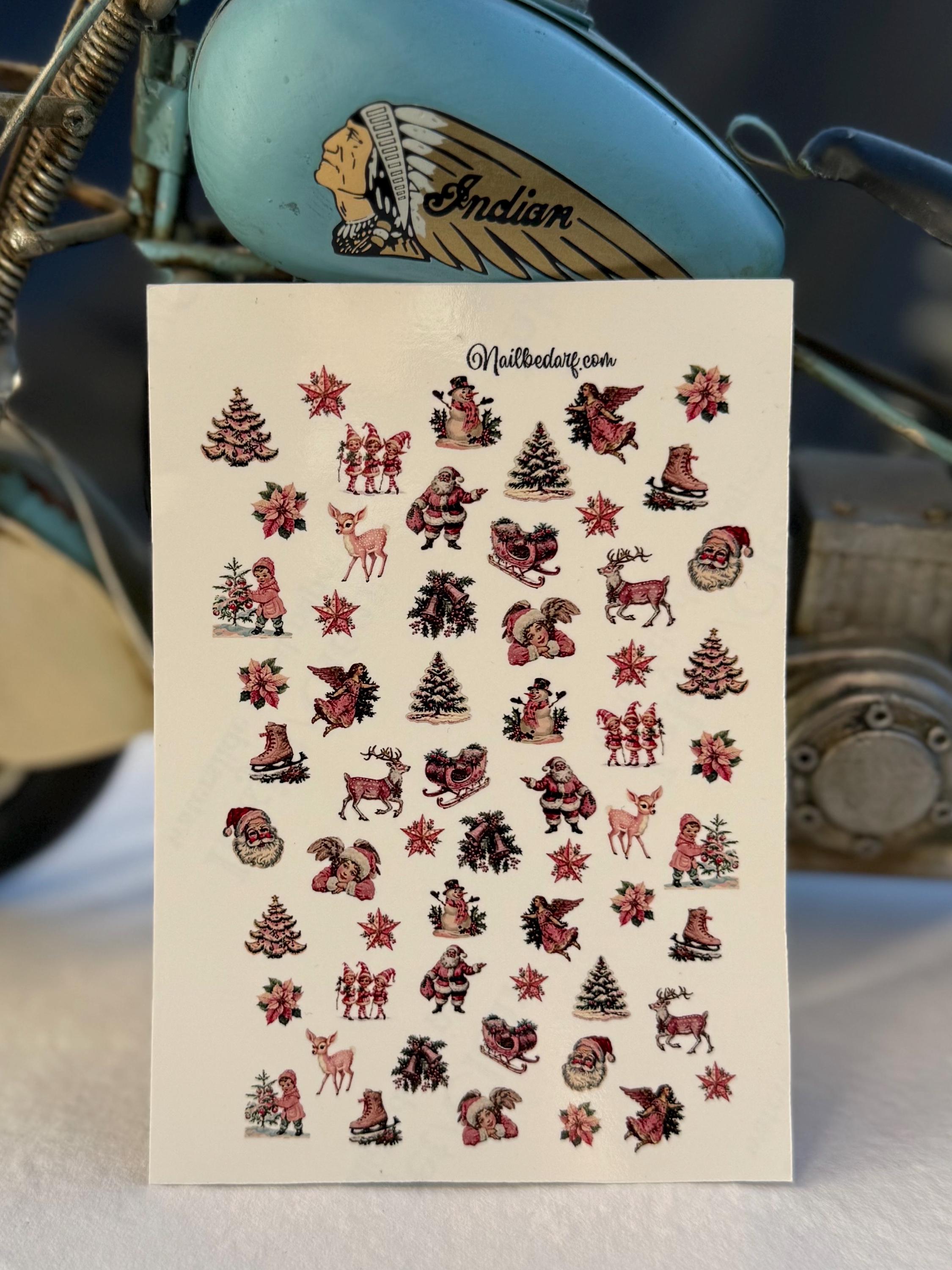 Nail stickers, nail tattoo nail art, retro pink Christmas, snowman nail art stickers winter snowflakes holidays