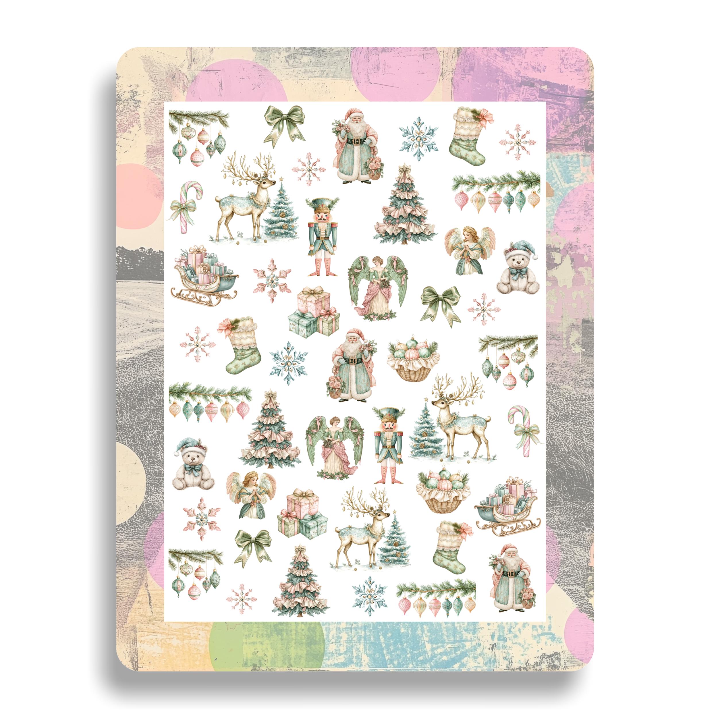 Christmas Nail Stickers / Water Nail Decals / Victorian Vintage Winter Christmas Watercolor