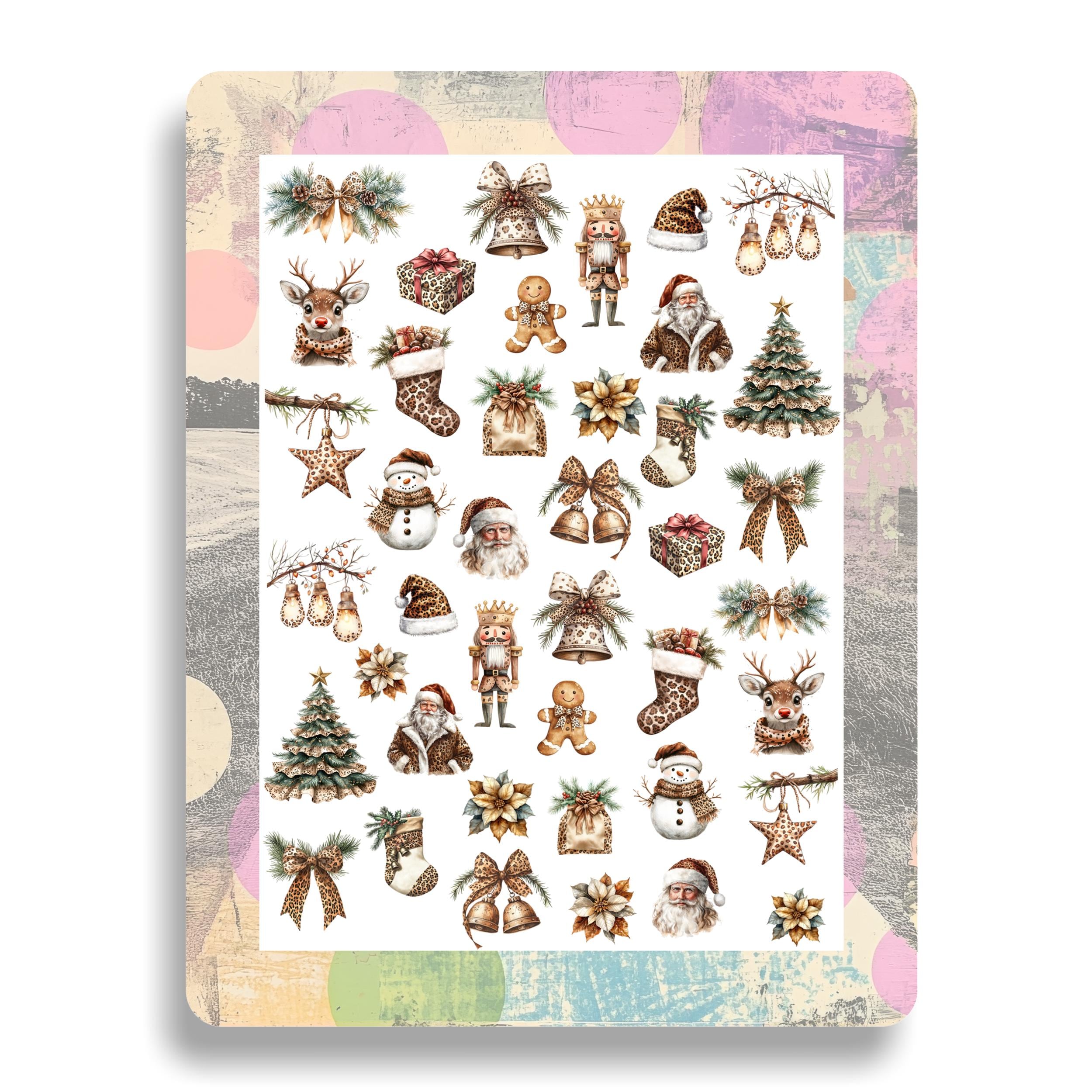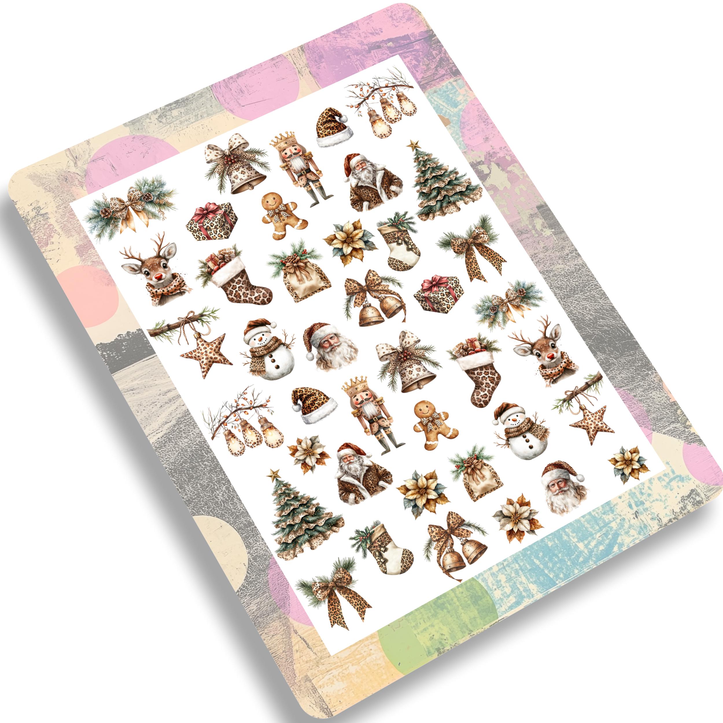 Christmas nail stickers / water nail decals / leopard vintage winter Christmas watercolor