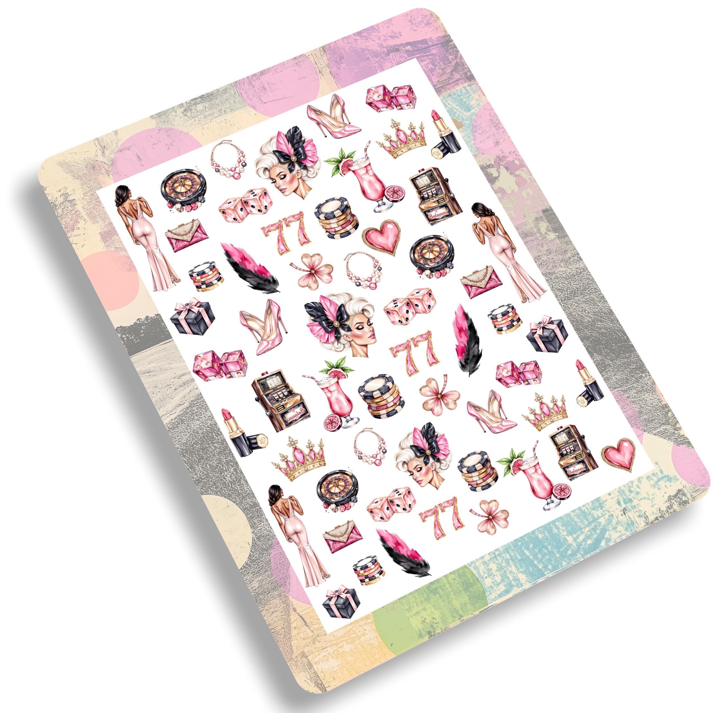 Las Vegas Nail Water Decals - Vibrant Nightlife - Casino - Waterslide Nail Art - Dice, Gaming Chips