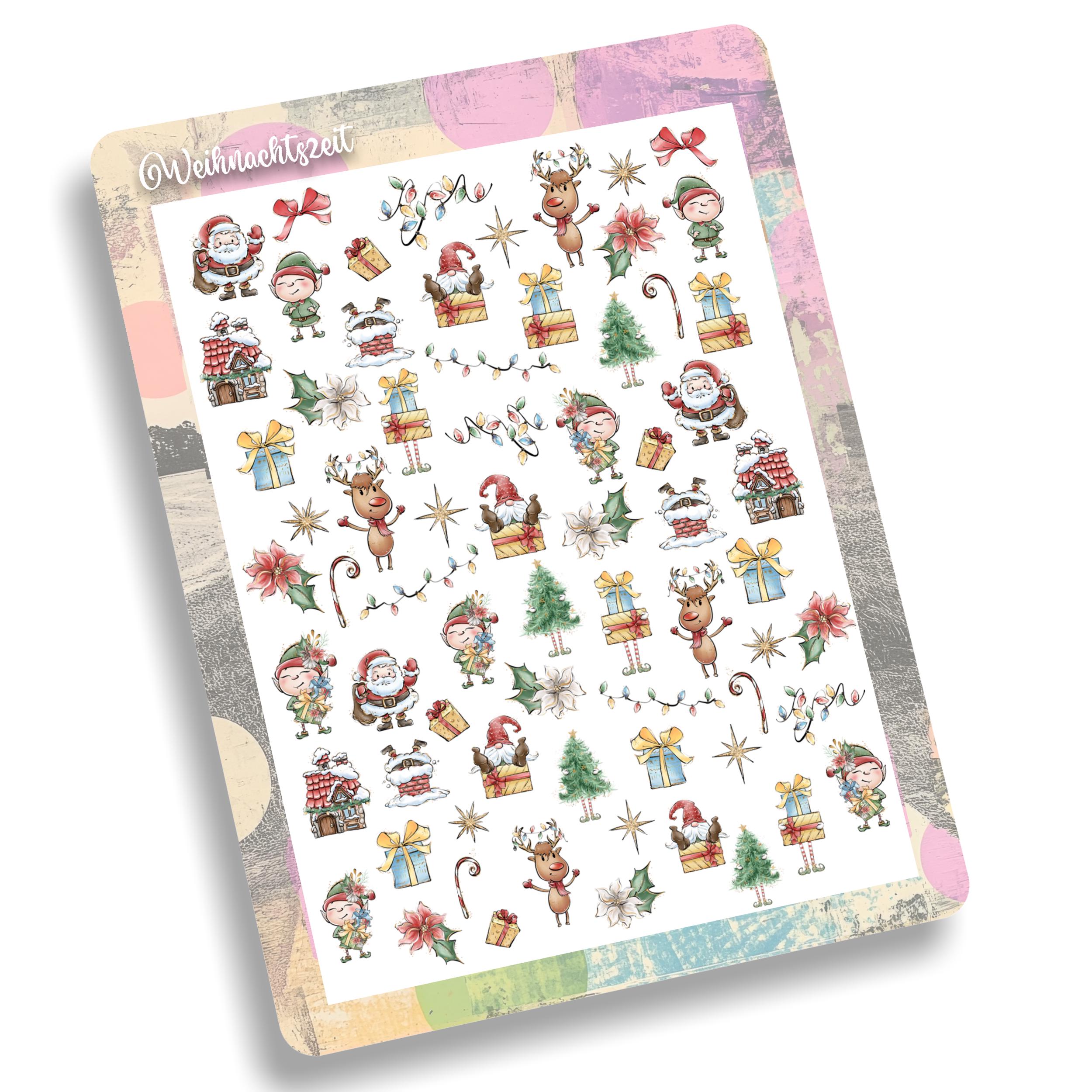 Christmas Nail Stickers | Water-Slide Tattoo Nails | Hand-Painted Nail Art Reindeer Chimney Santa Claus Winter House