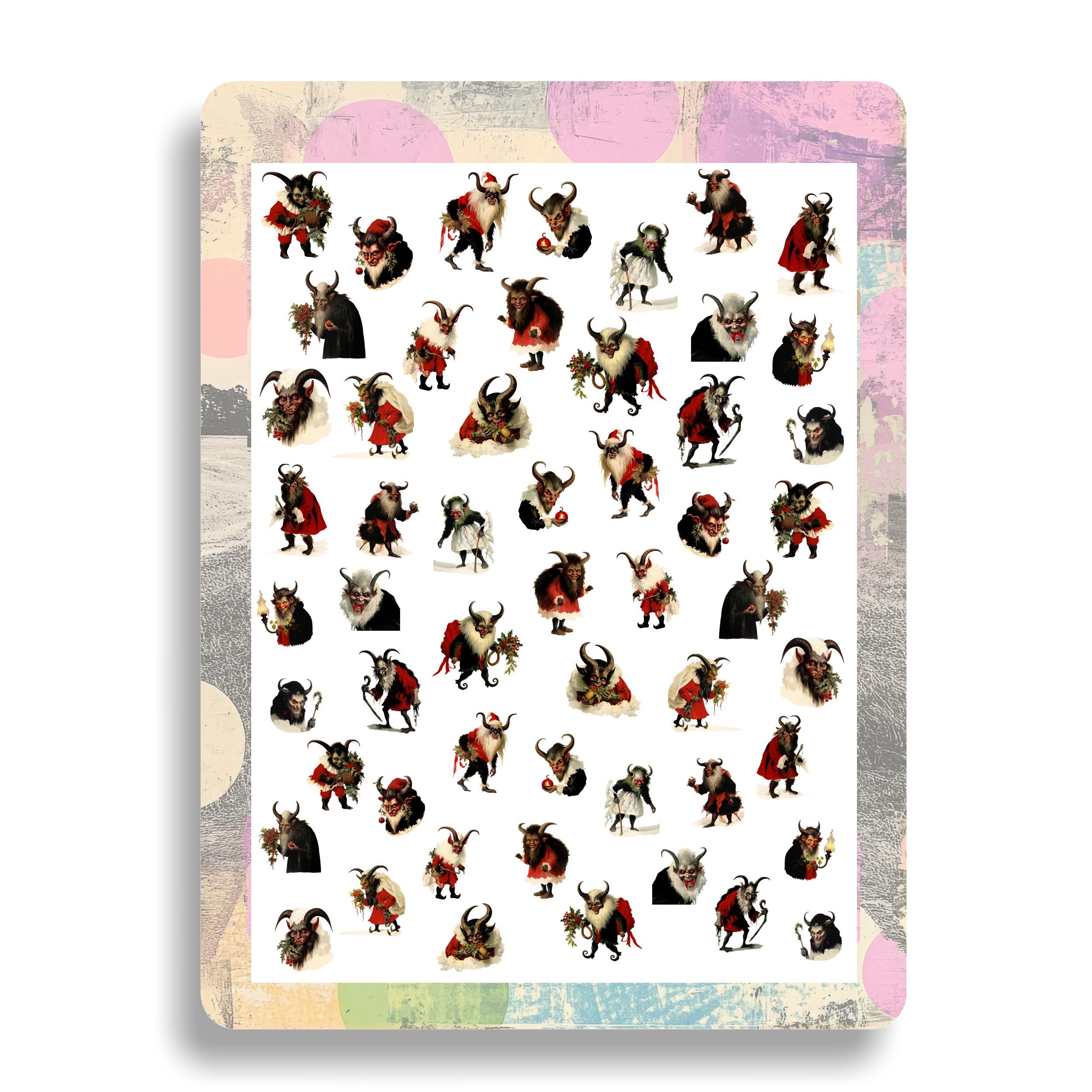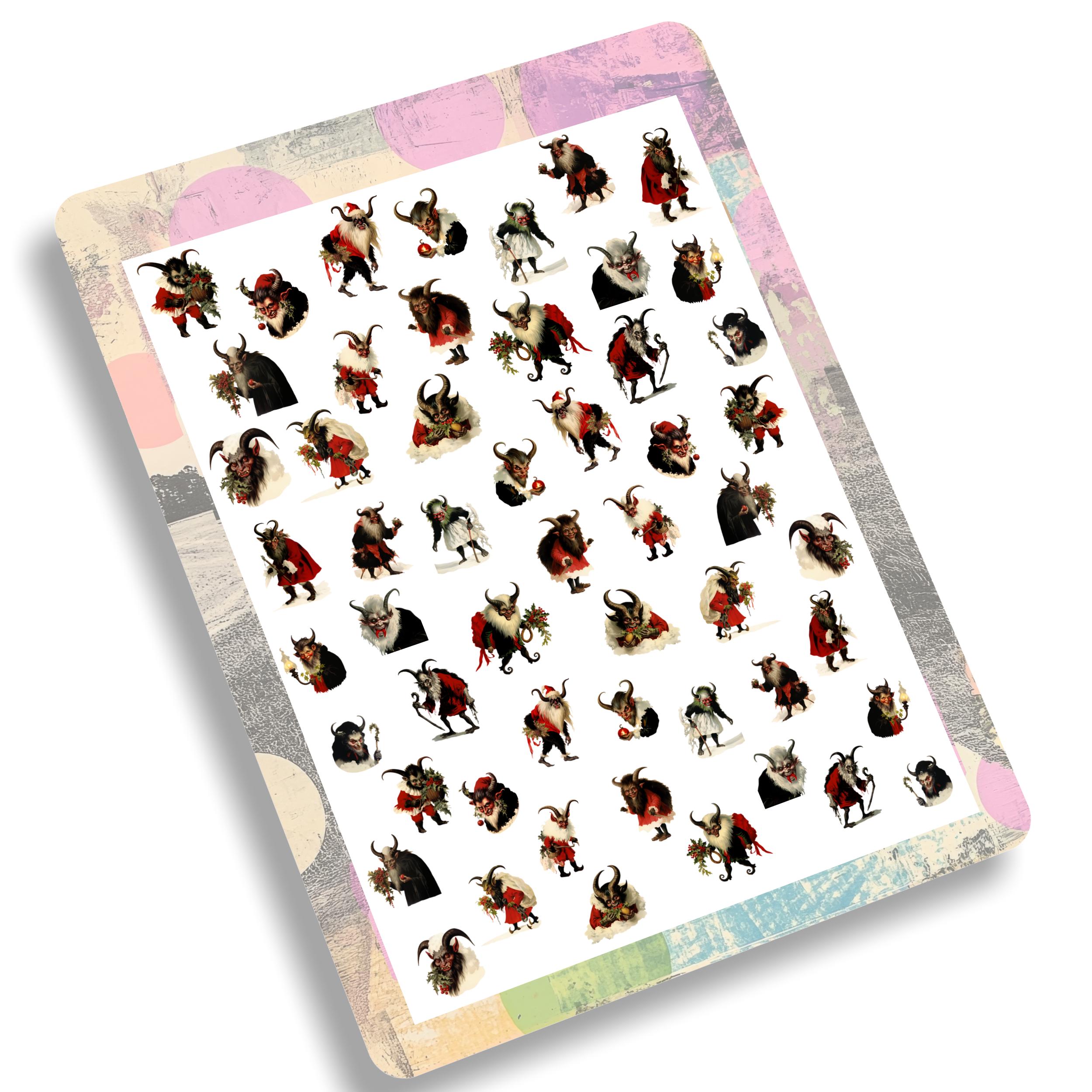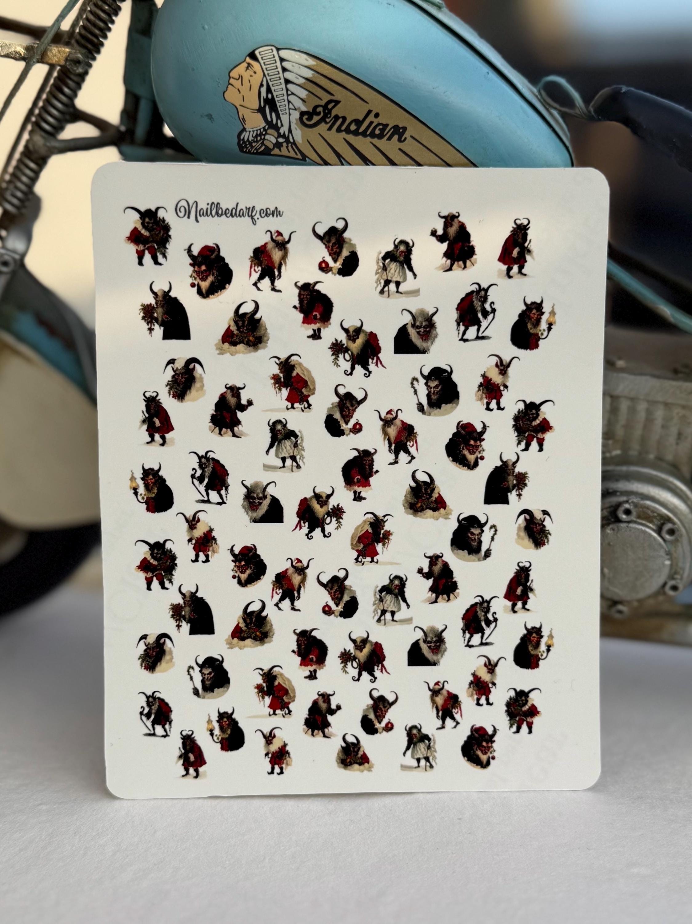 Krampus, Krampus nail stickers, Krampus nails, spooky nail art, waterslide decals, nail stickers, Christmas Krampus