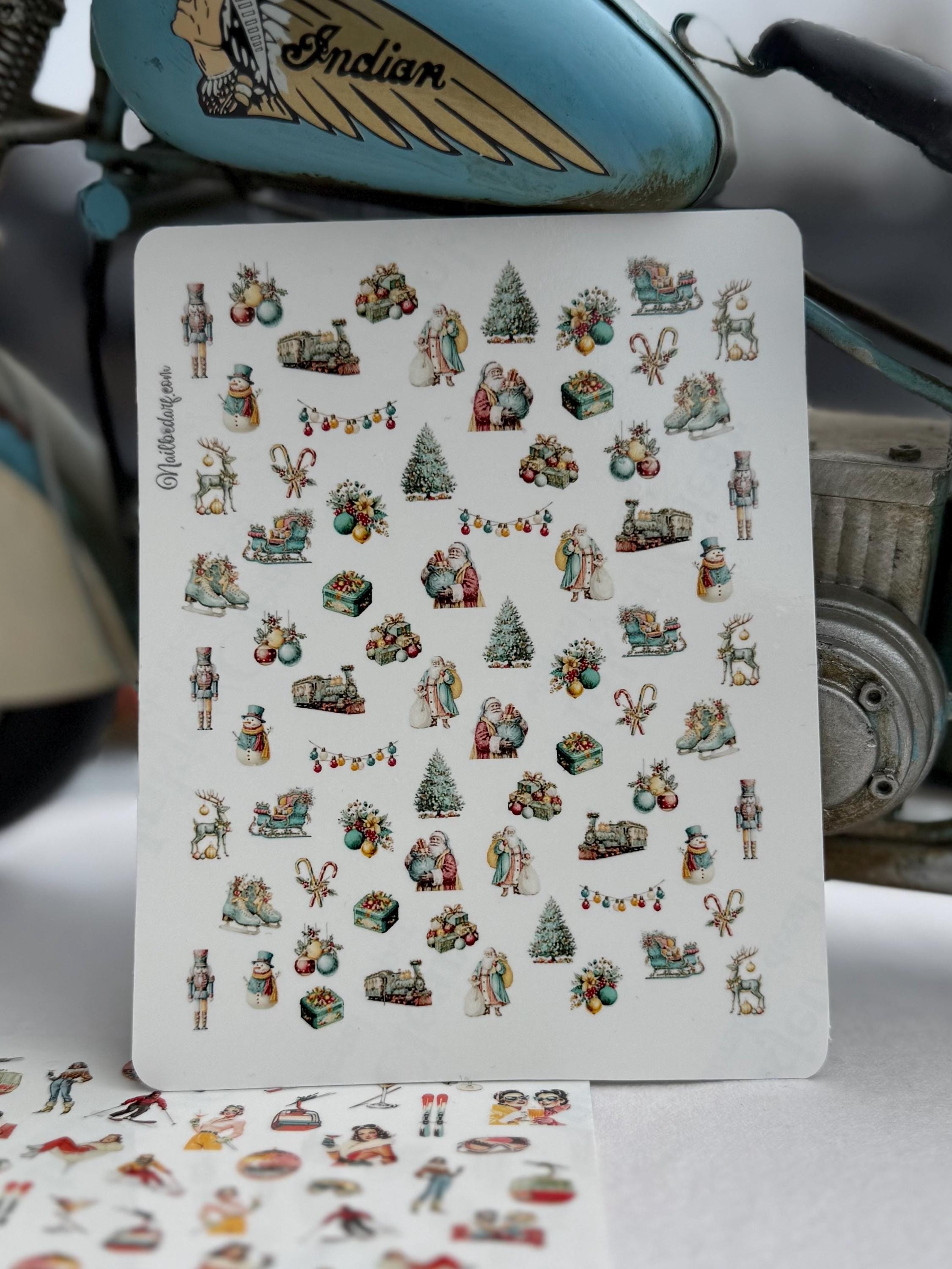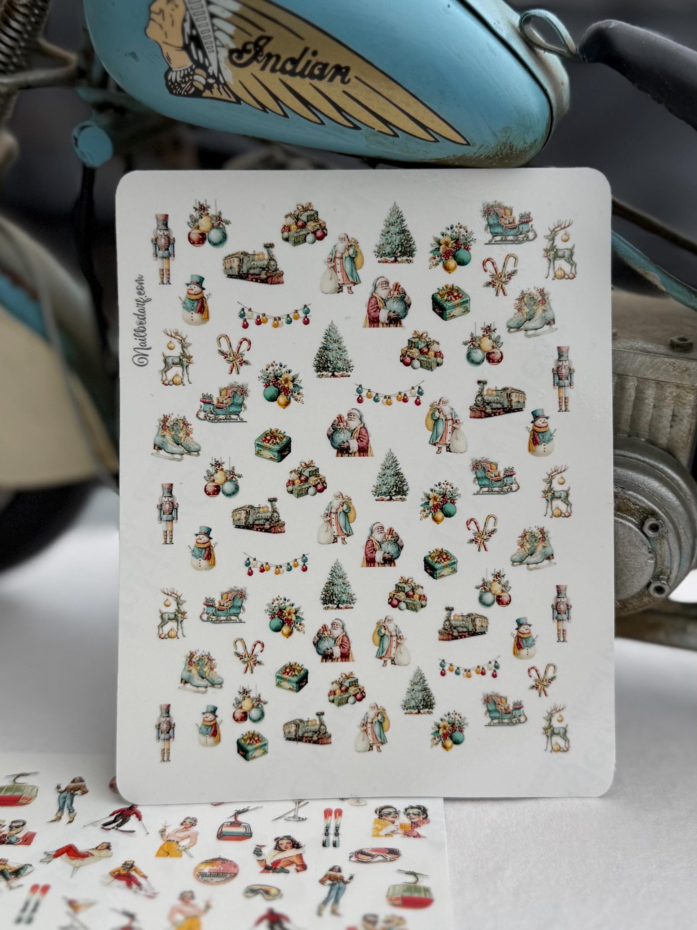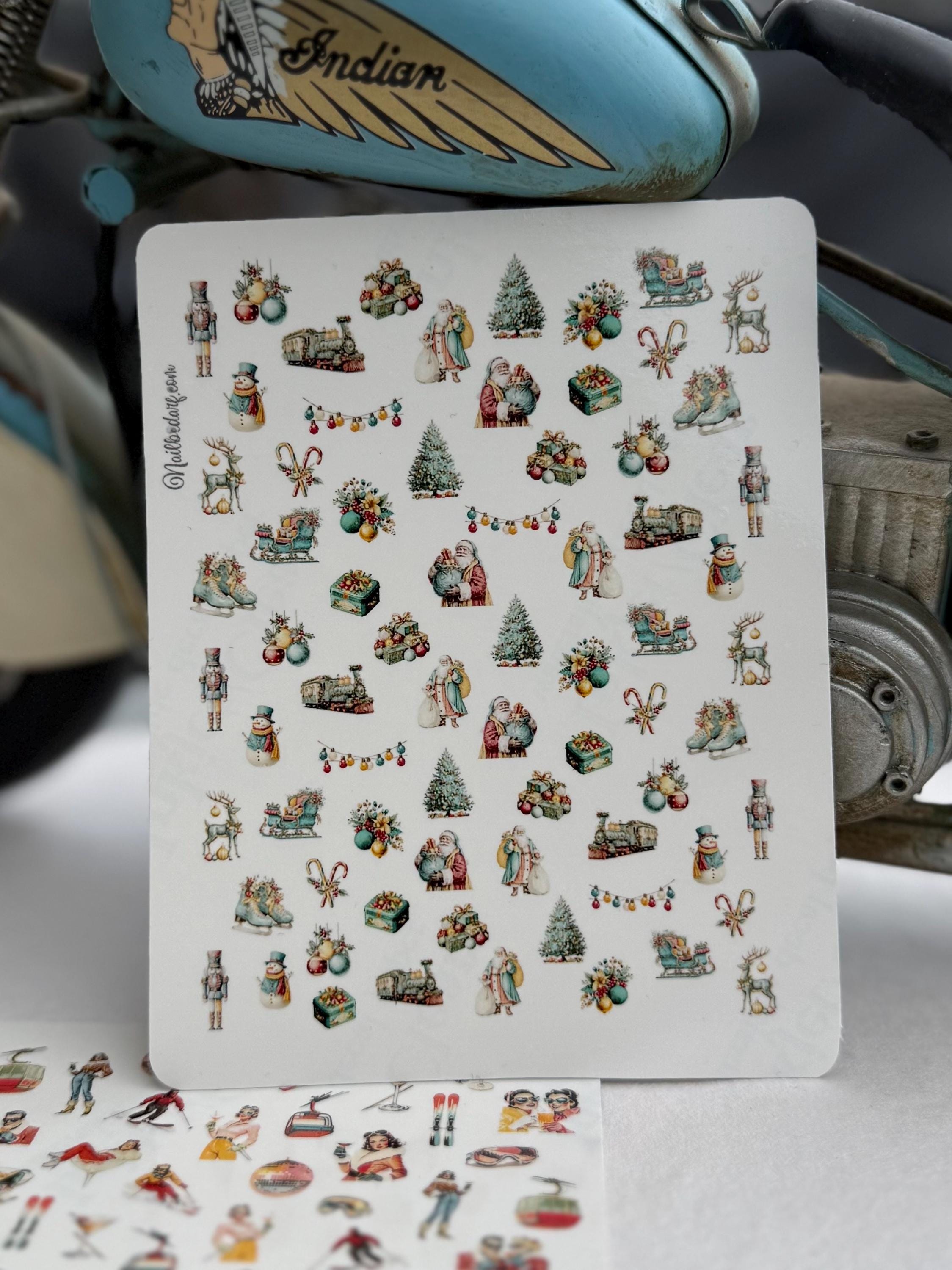 Retro Christmas Water Slide Nail Stickers, Decals for Nail Art, Winter Nail Design