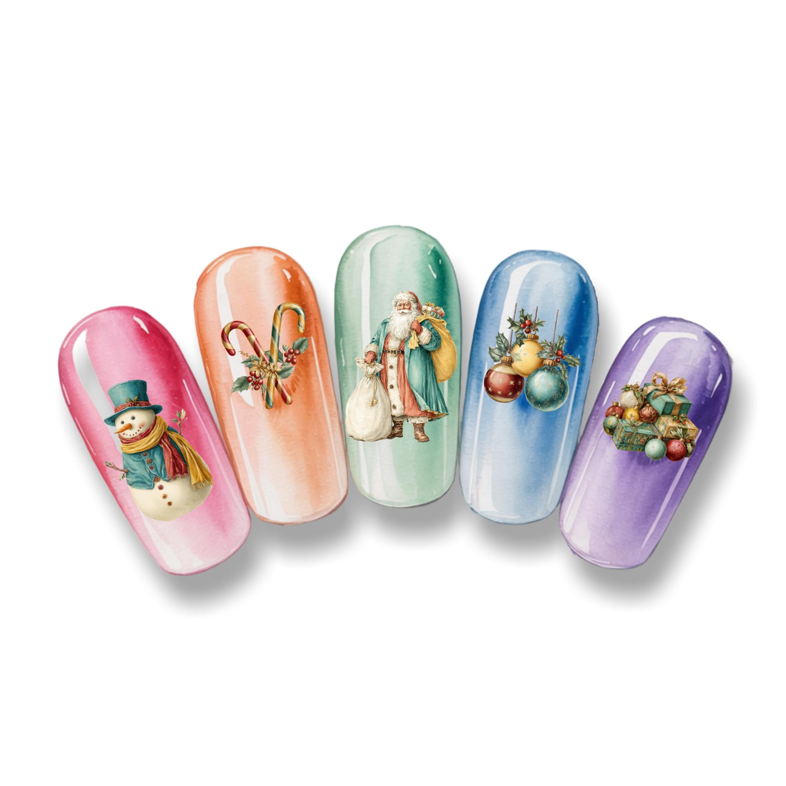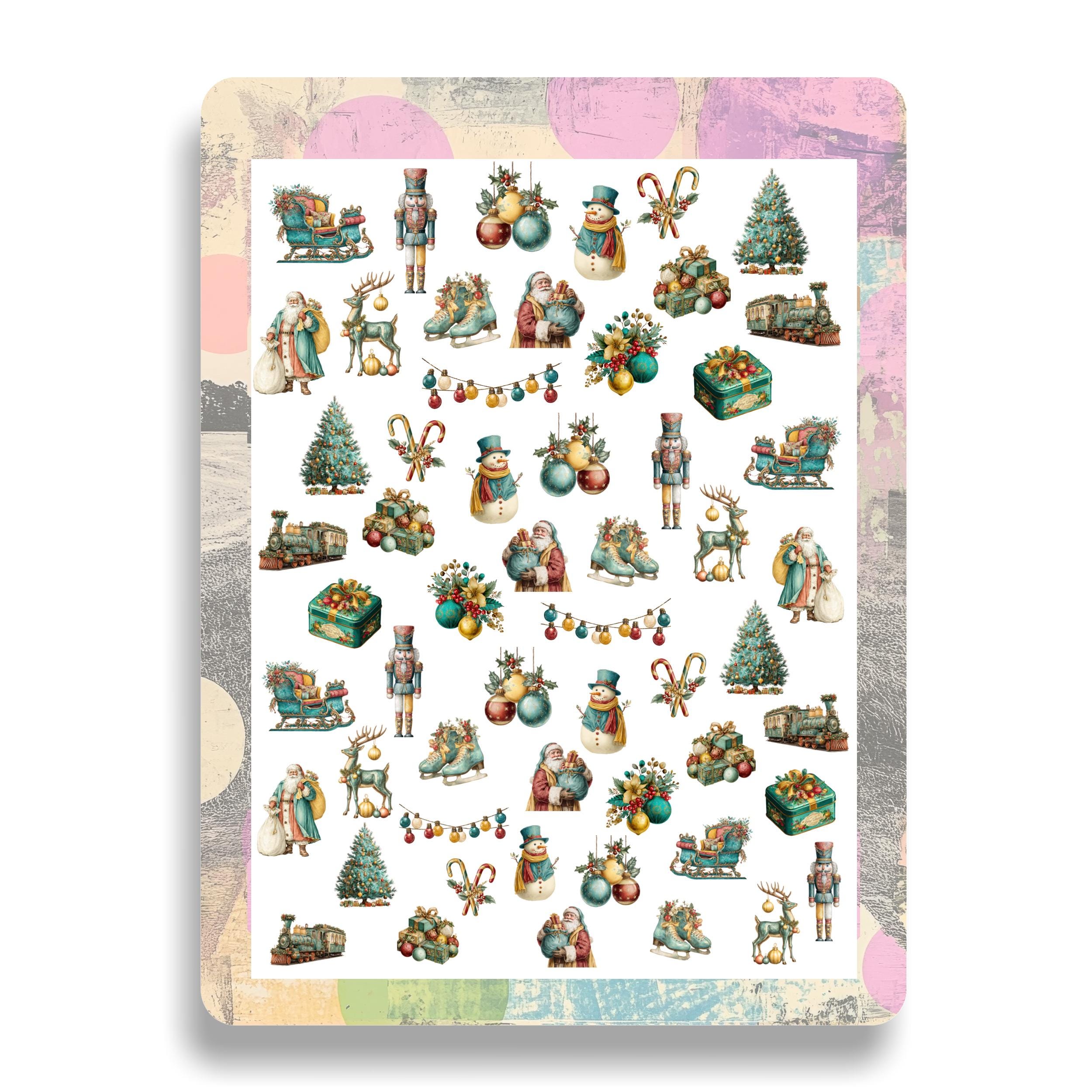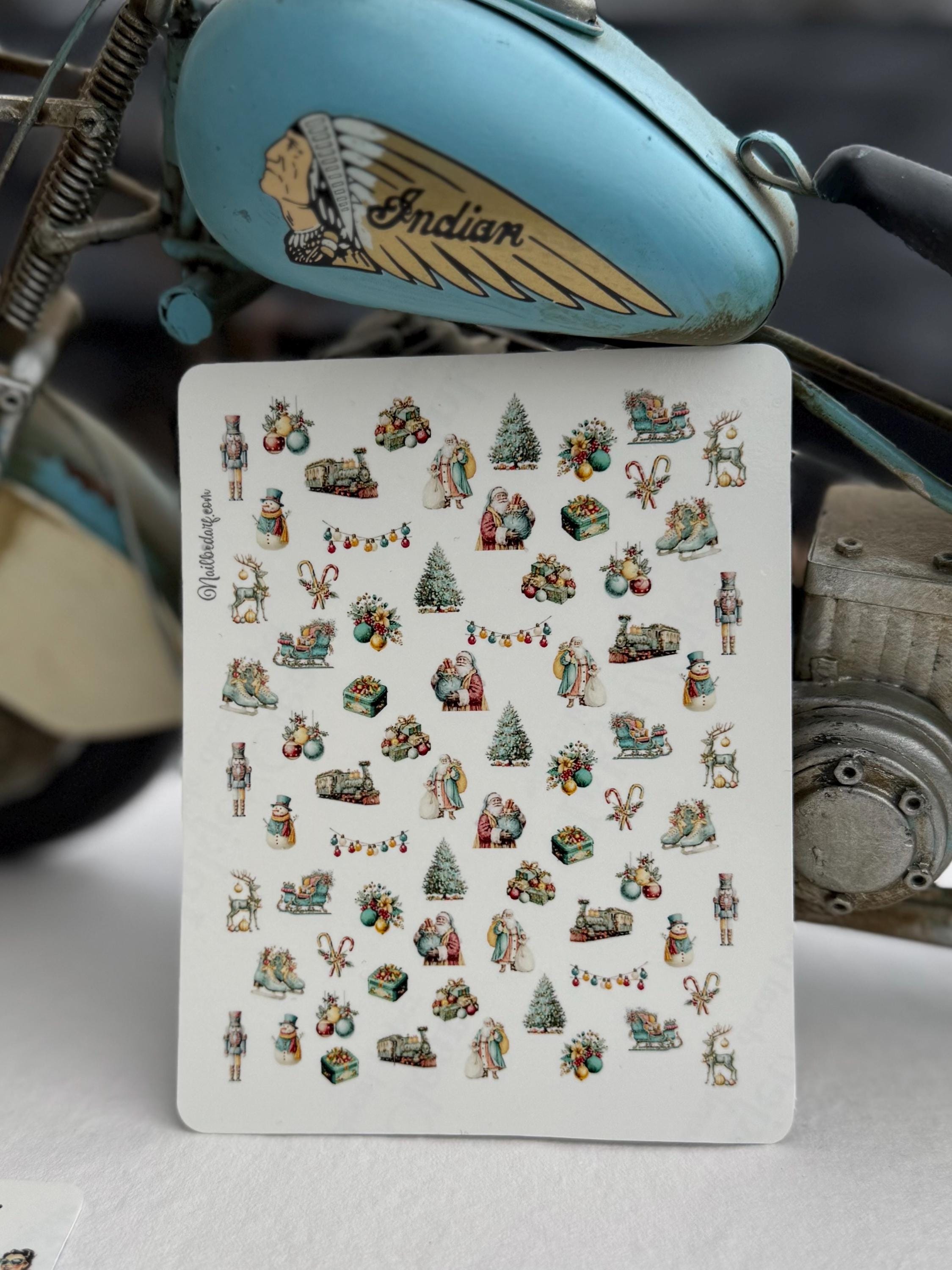 Retro Christmas Water Slide Nail Stickers, Decals for Nail Art, Winter Nail Design