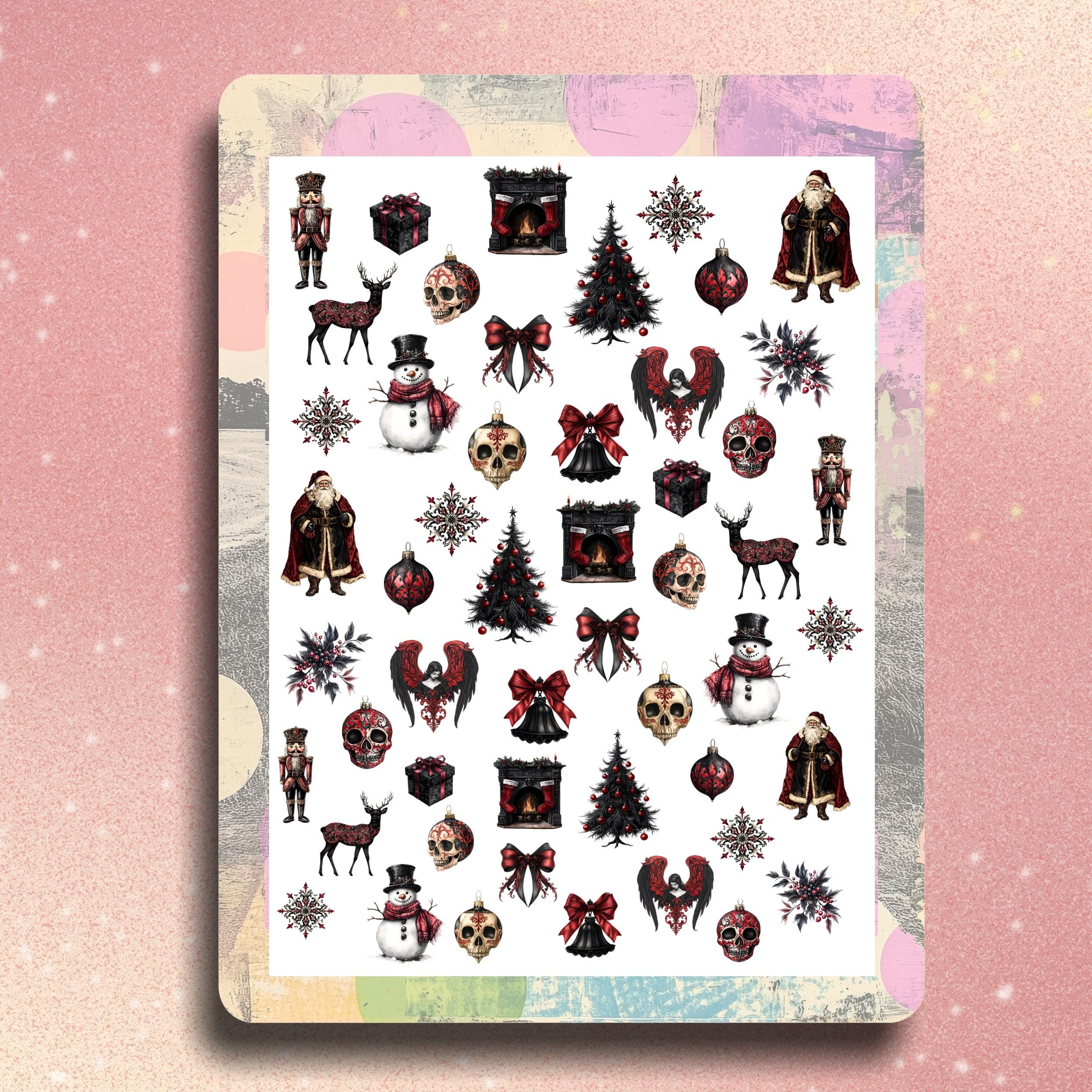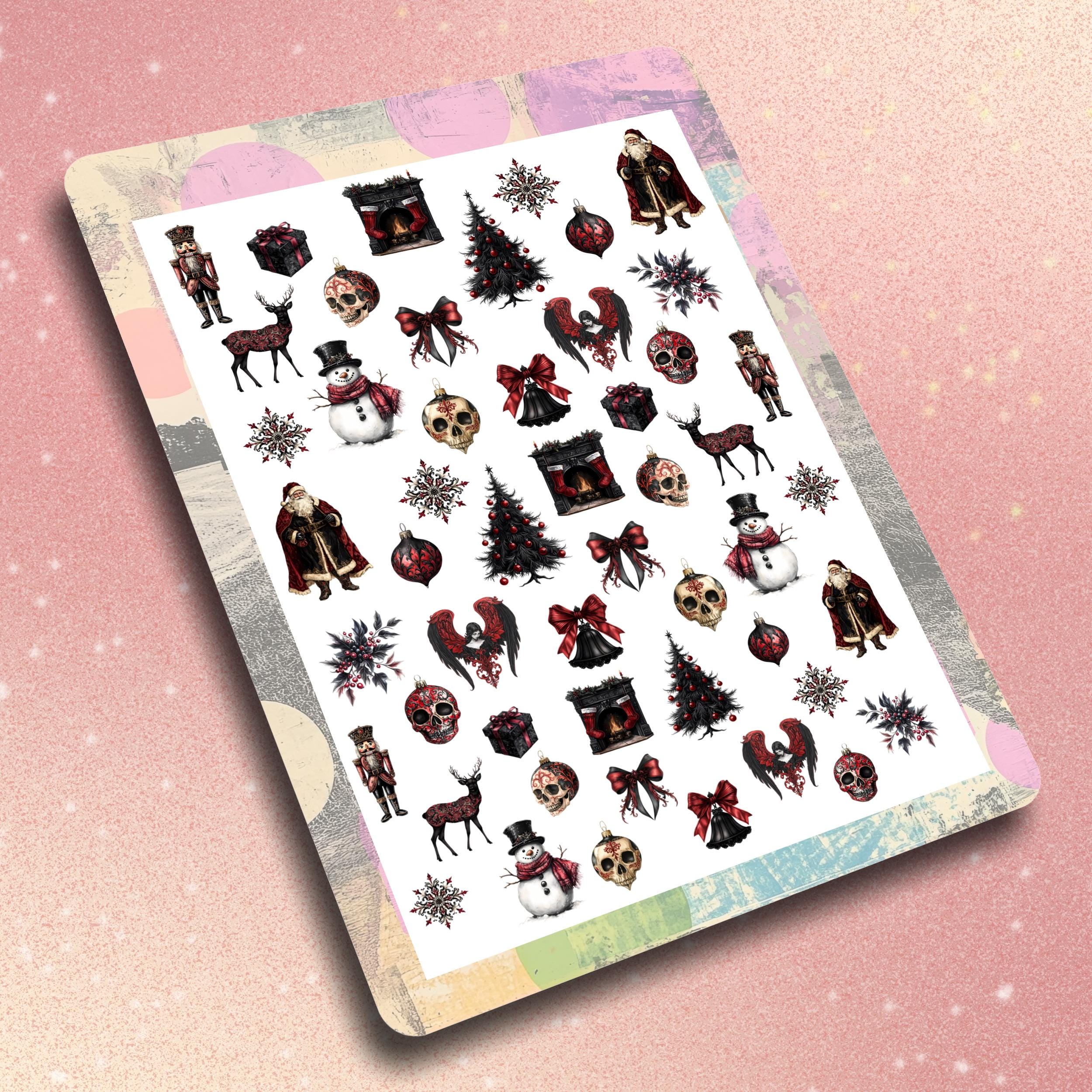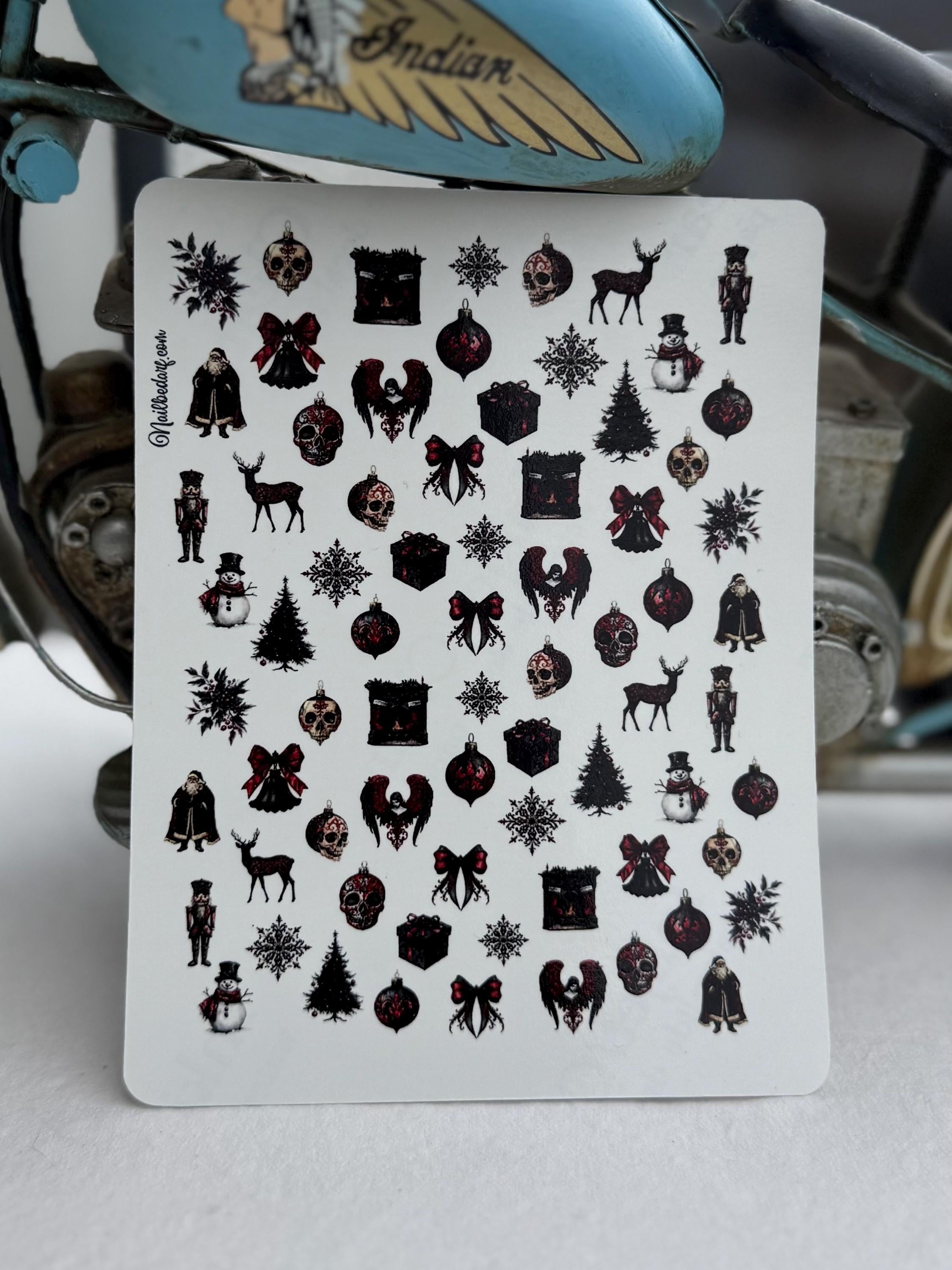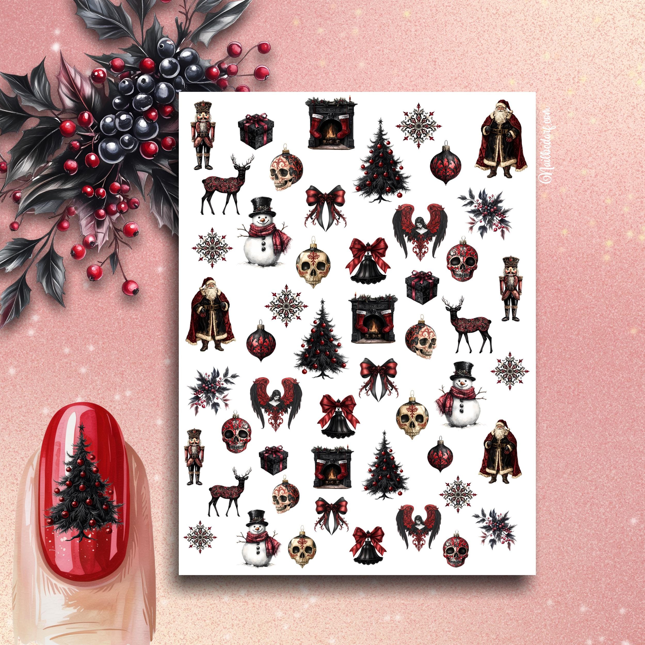 Gothic Christmas nail stickers, waterslide stickers, decals for nails, nail art, nutcracker, skull, fireplace