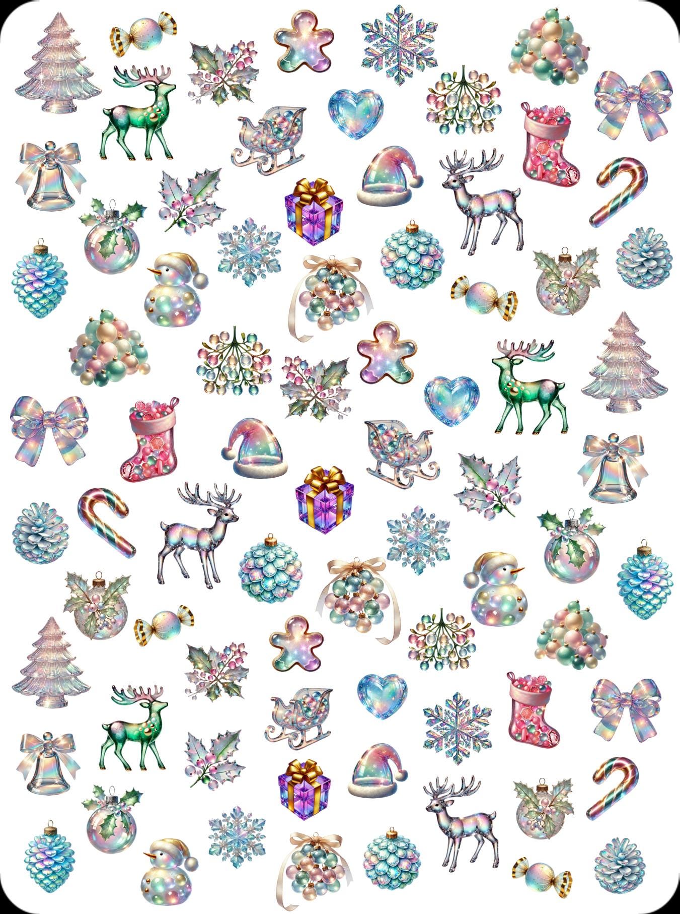 Nail water decal, Christmas holly, crystal Christmas, holidays, water nail decal, nail water slide decal