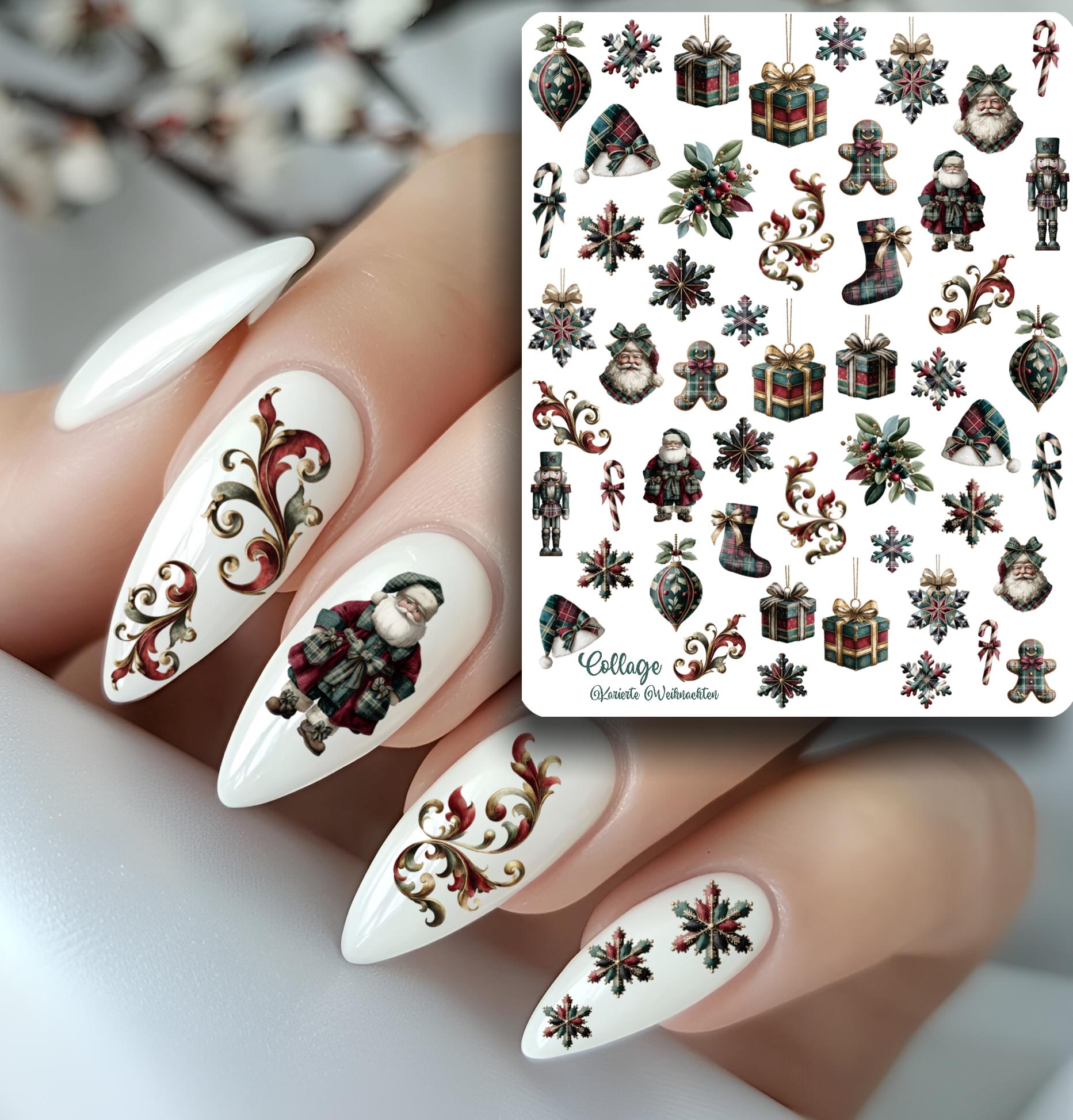 Christmas checkered nail art waterslide foil, Christmas nails, Merry Christmas, Christmas winter fingernails