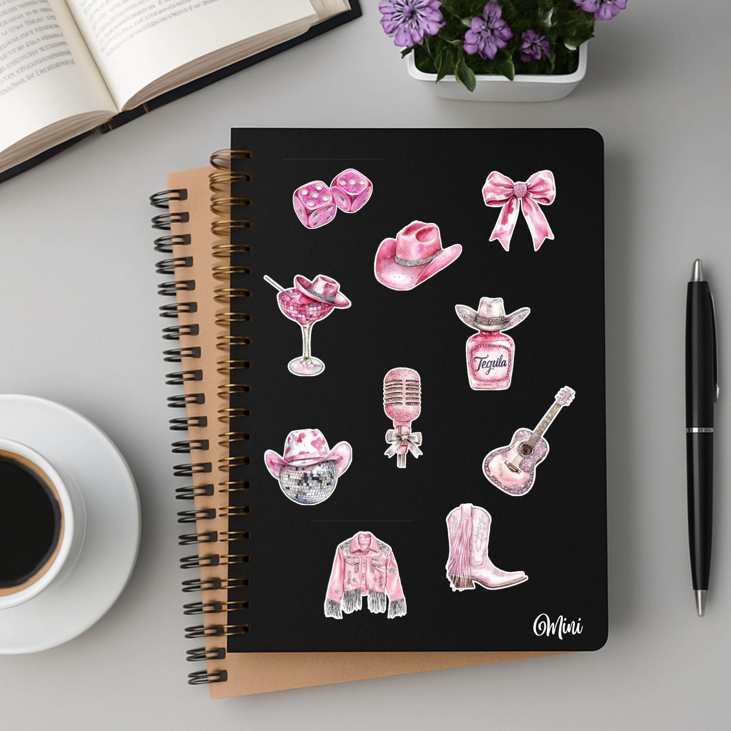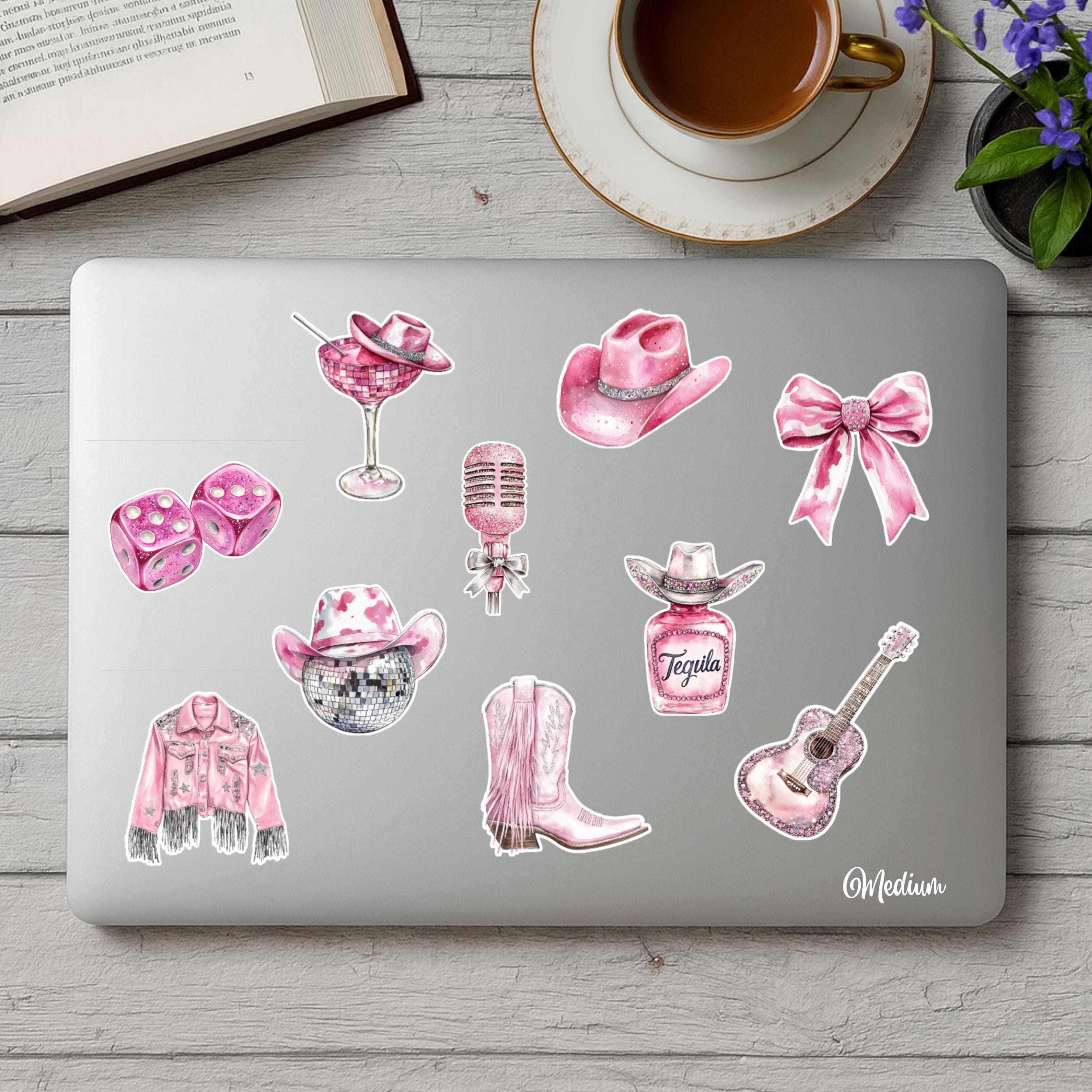 Mini/medium vinyl sticker set, waterproof self-adhesive stickers, country cowgirl western party