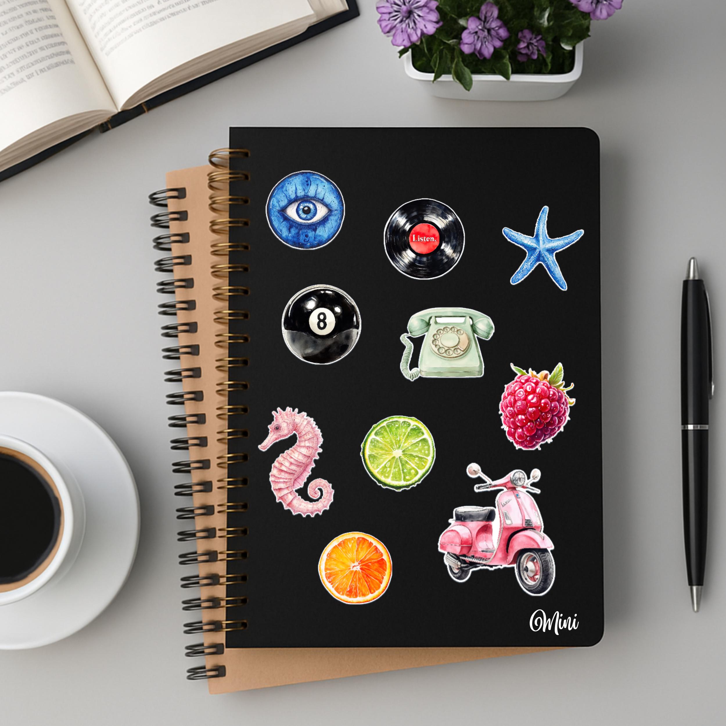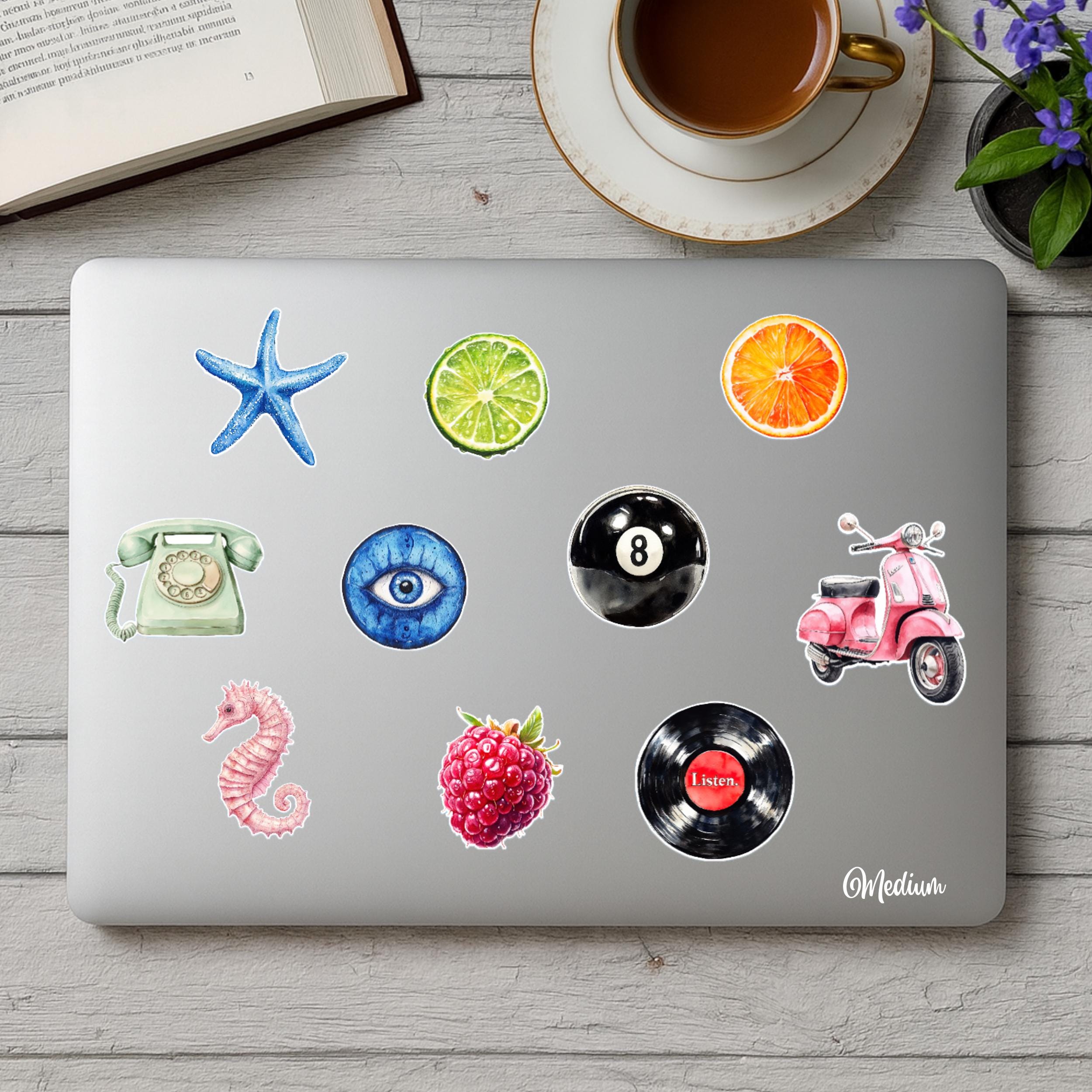 Mini/medium vinyl sticker set, waterproof self-adhesive stickers, aesthetic elements: seahorse, starfish, fruit