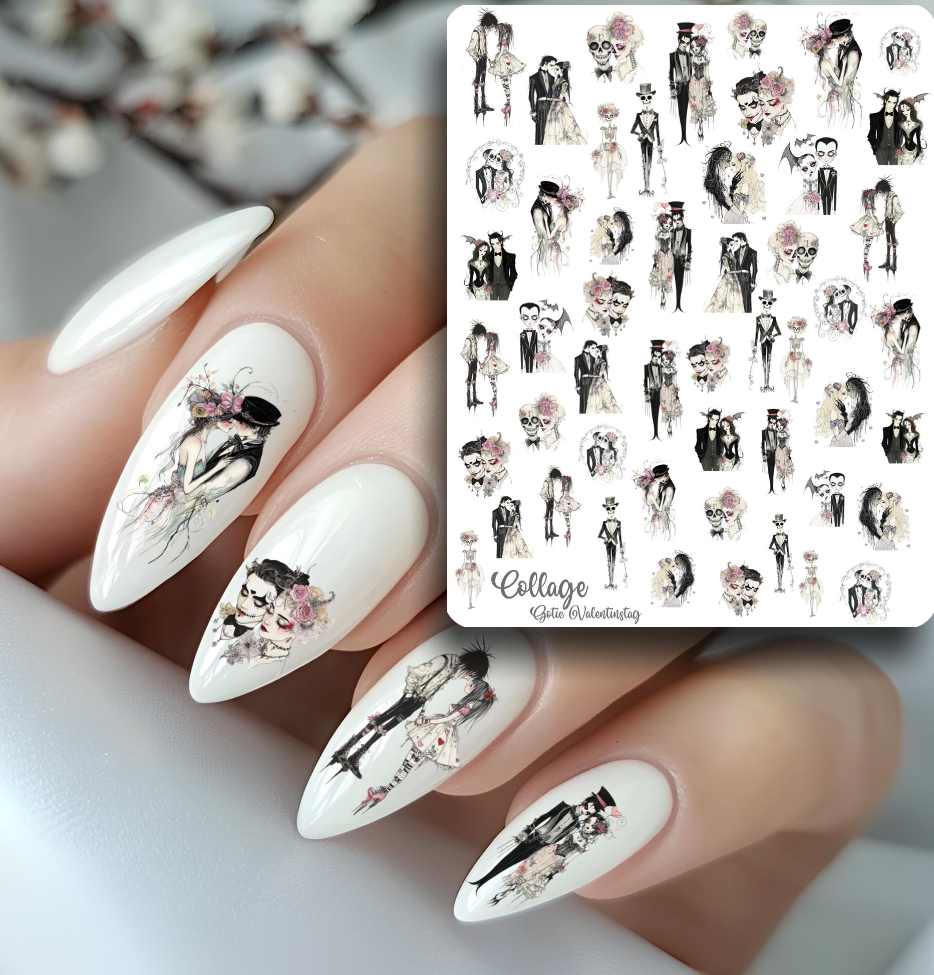 Valentine's Day Nail Art, Gothic Valentine's Day, Romantic Waterslide Nail Design