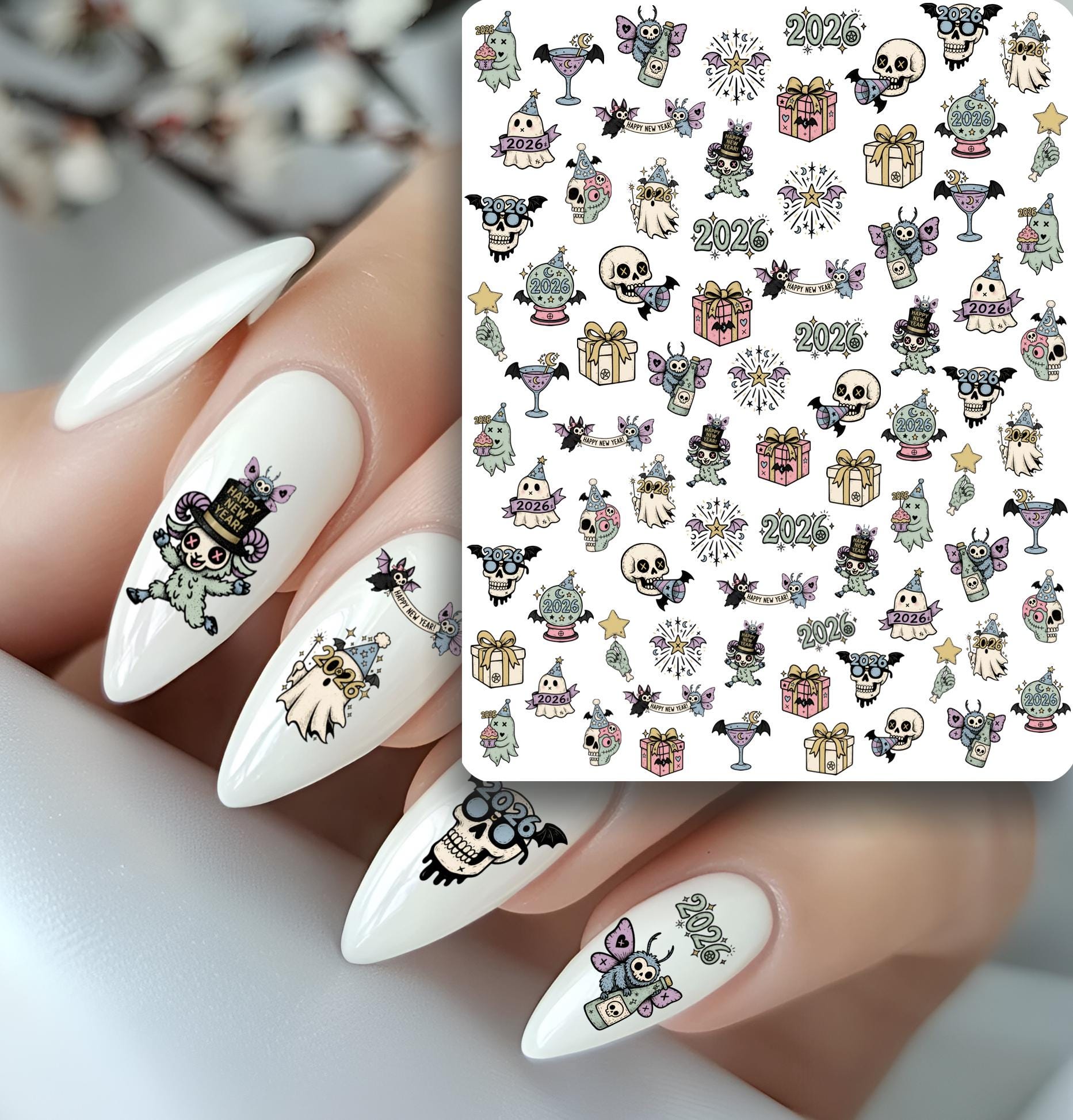New Year's Waterslide Nail Decals - Nail Art - Nail Design - New Year's Eve - Retro 2026