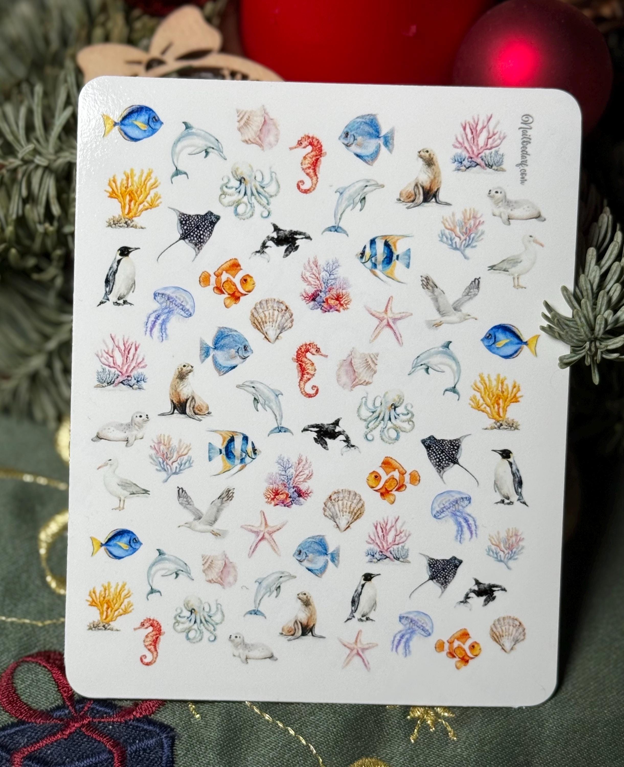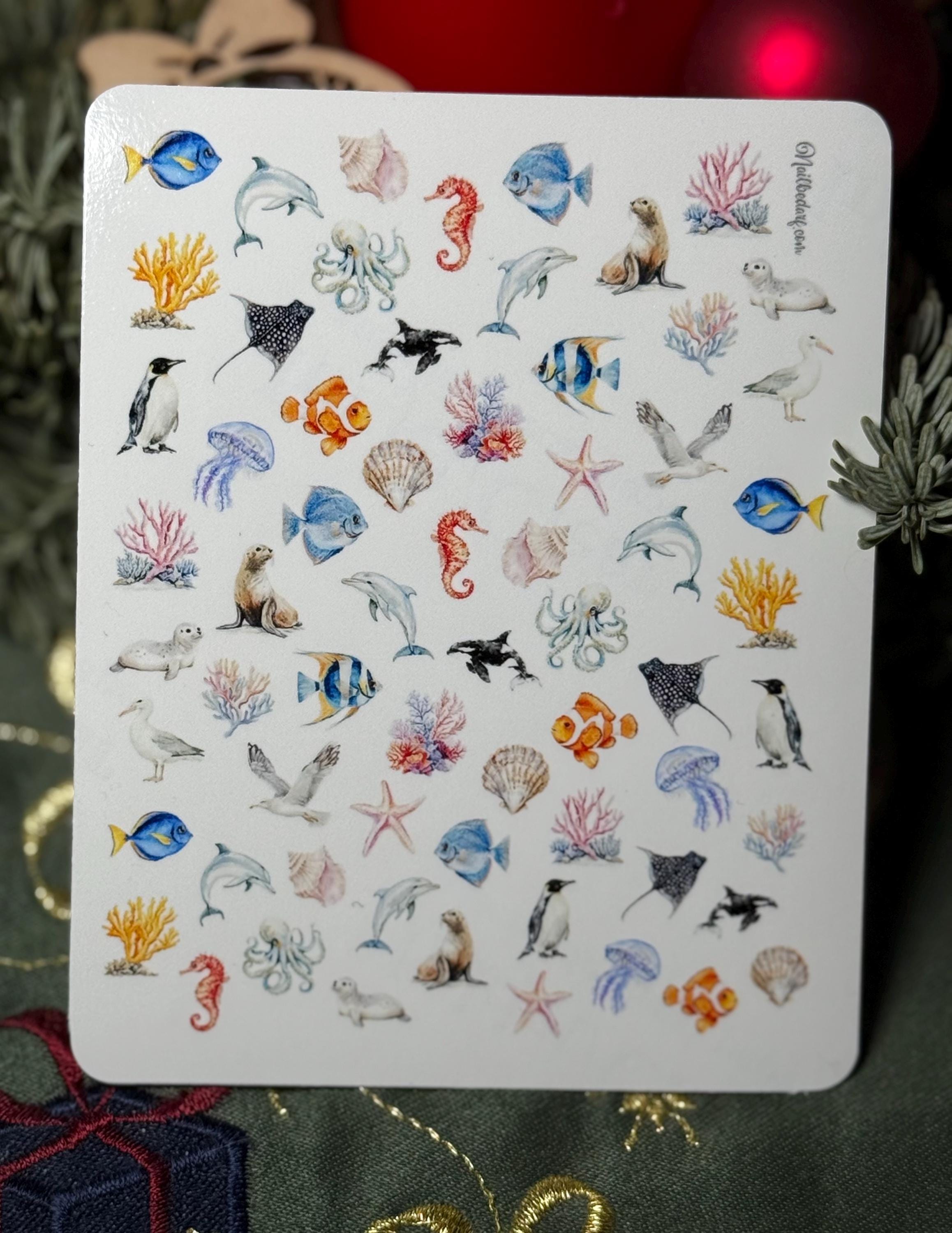 Sea creature nail stickers, waterslide decals for nails, ocean, sea, underwater, whale, dolphin