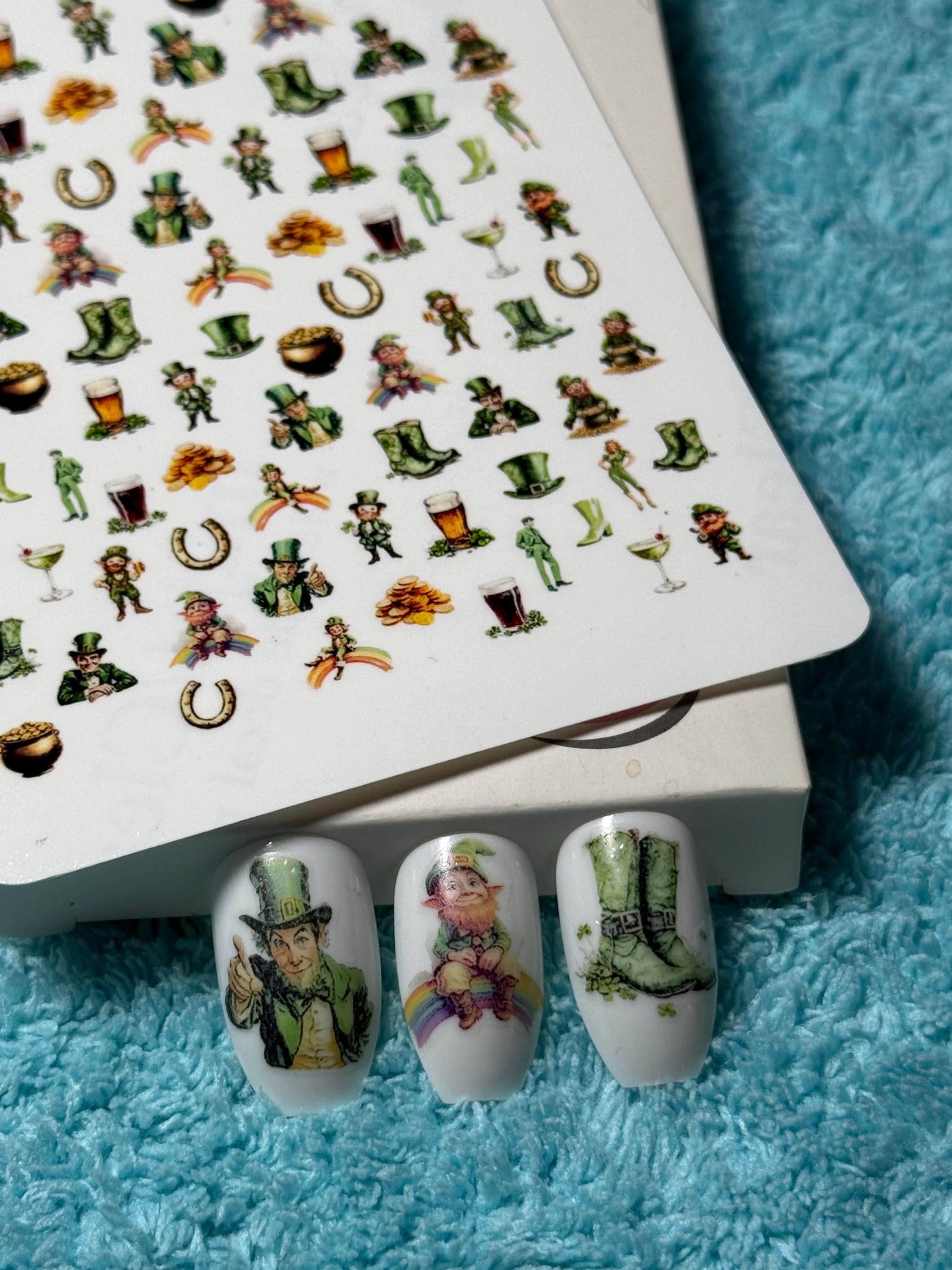 Saint Patrick waterslide nail stickers, 50s style nail art, Irish, March 17, shamrock