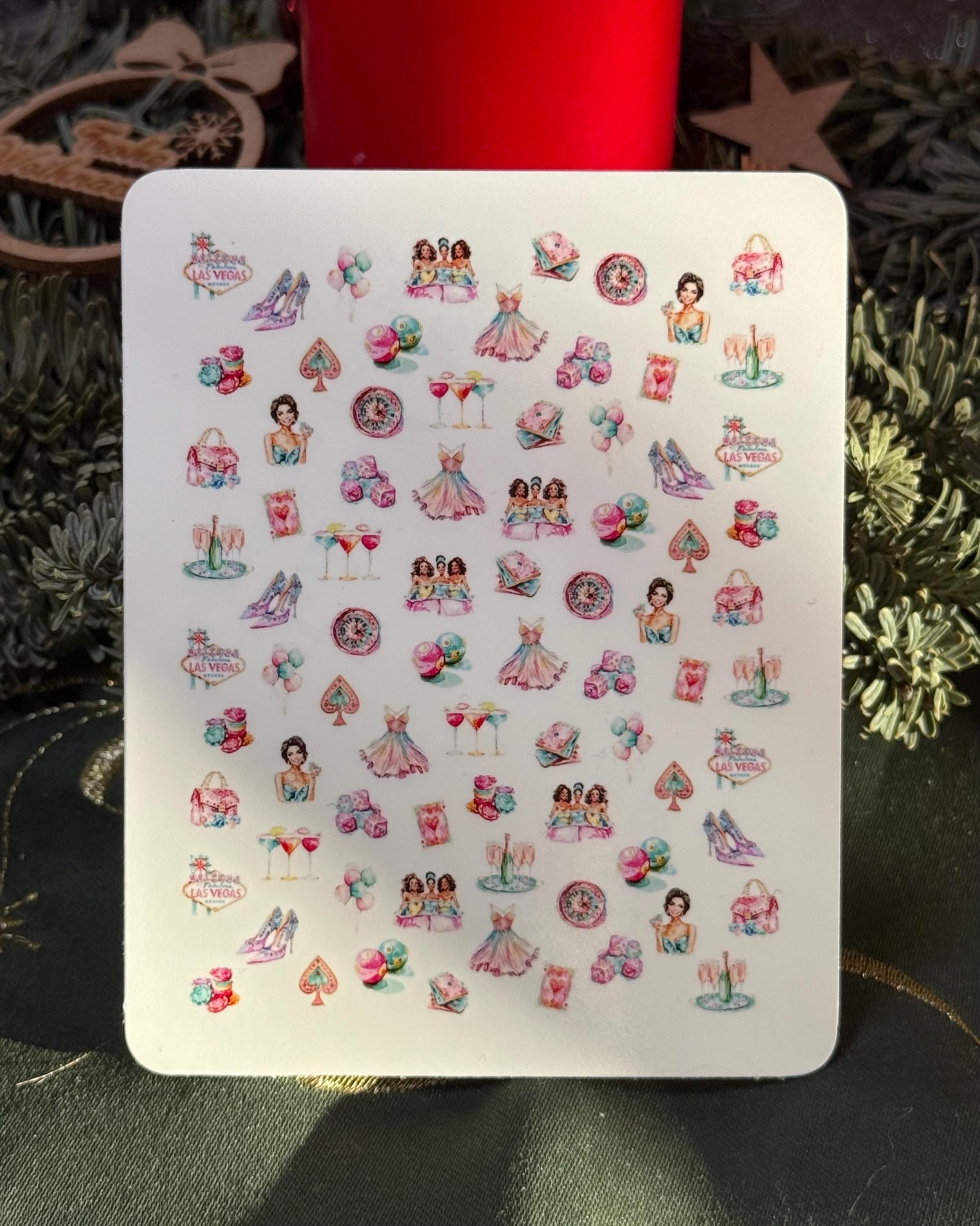 Waterslide nail stickers, nail art Las Vegas, bachelorette party, casino, celebration