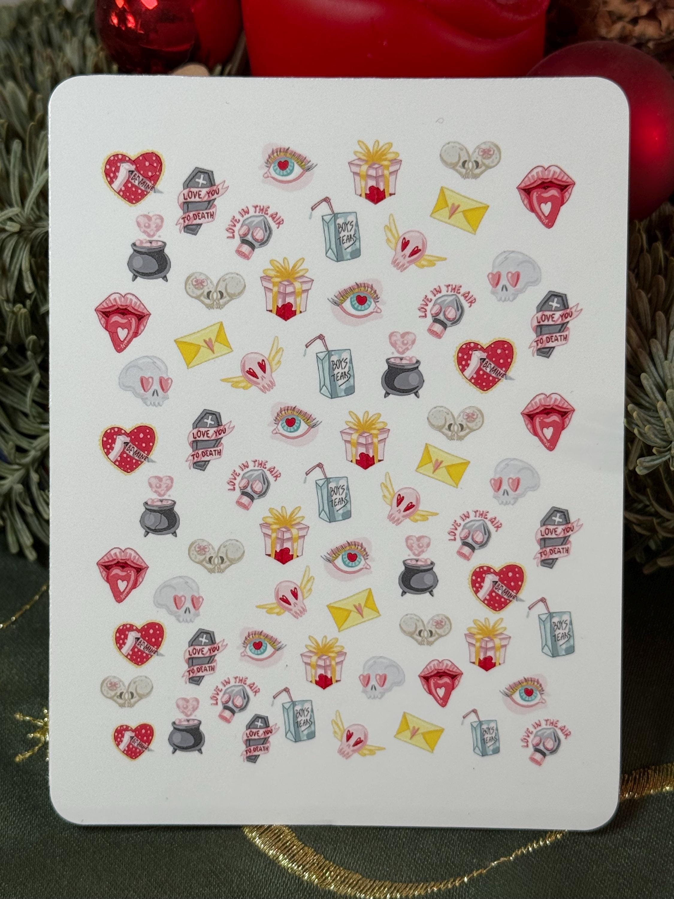 2D Water Nail Stickers, Spooky Valentine's Day, Nail Stickers, Horror Love Nail Art